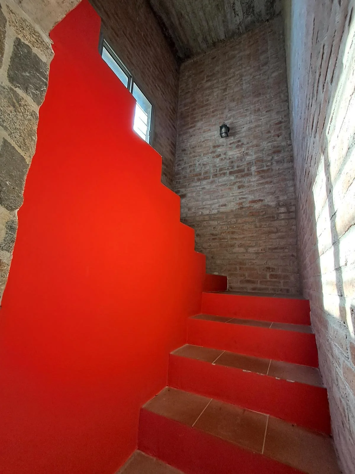 La casa cuenta con paredes de piedra, ladrillo visto y losa de hormigón en la planta baja y techo de chapa pre pintada gris y aislante térmico con cielo raso de madera en la Planta Alta.