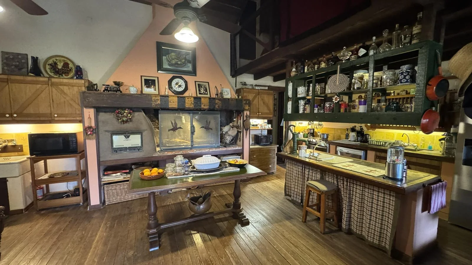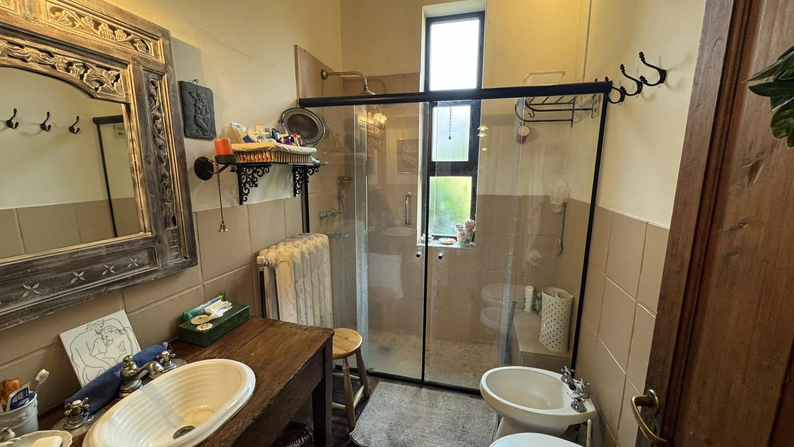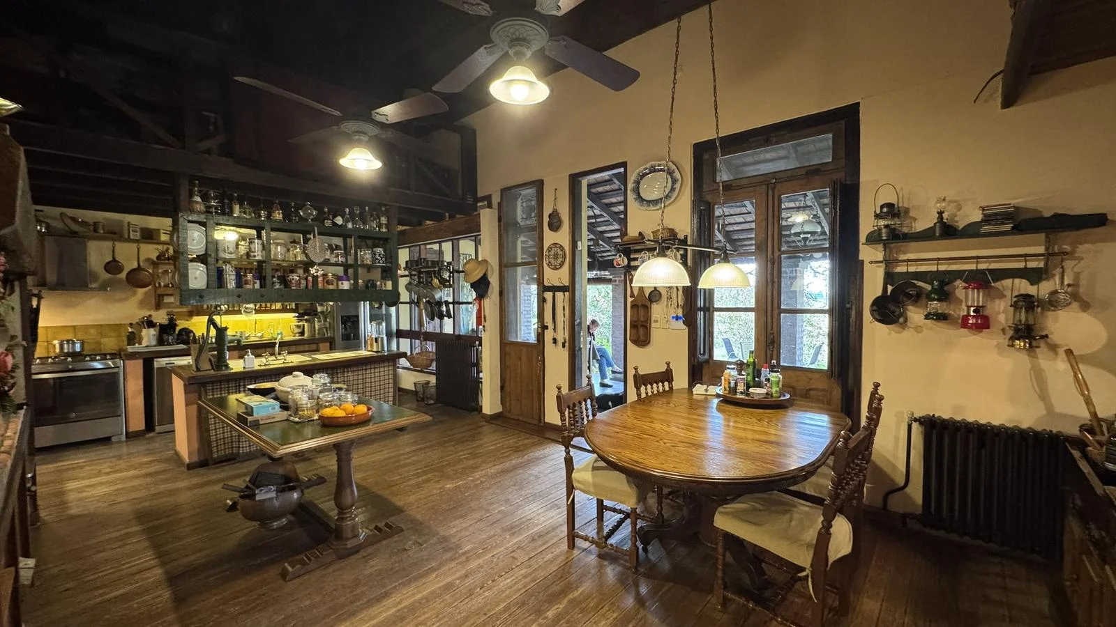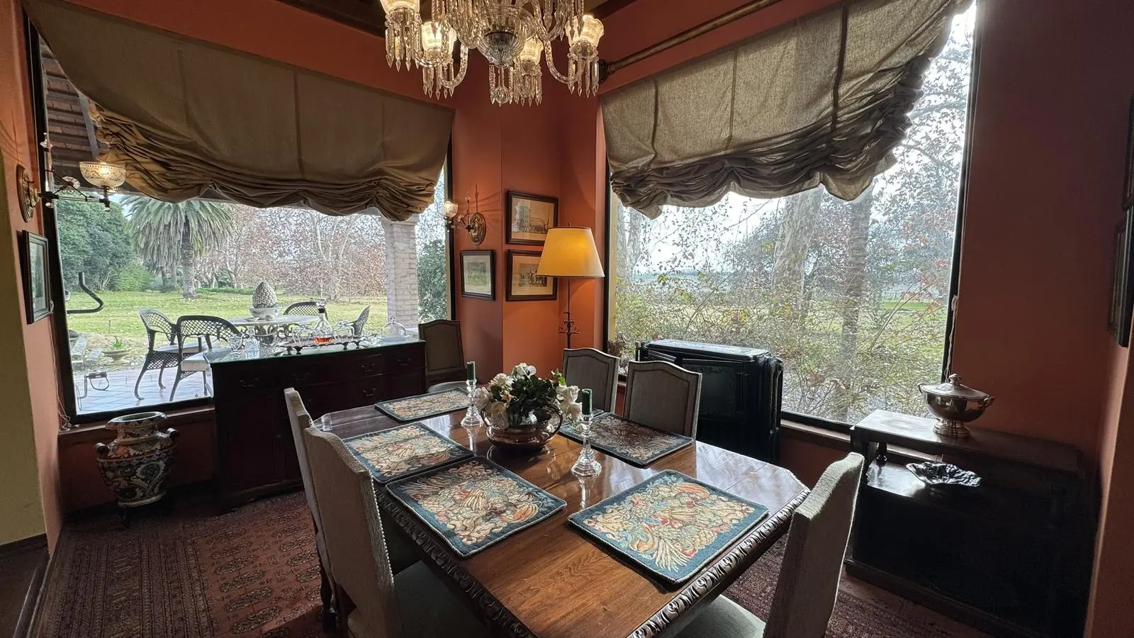 - Casa principal de 3 plantas con 4 dormitorios, 3 baños, living con hogar, comedor amplio, cocina con horno de barro, galería y mirador con vistas panorámicas.