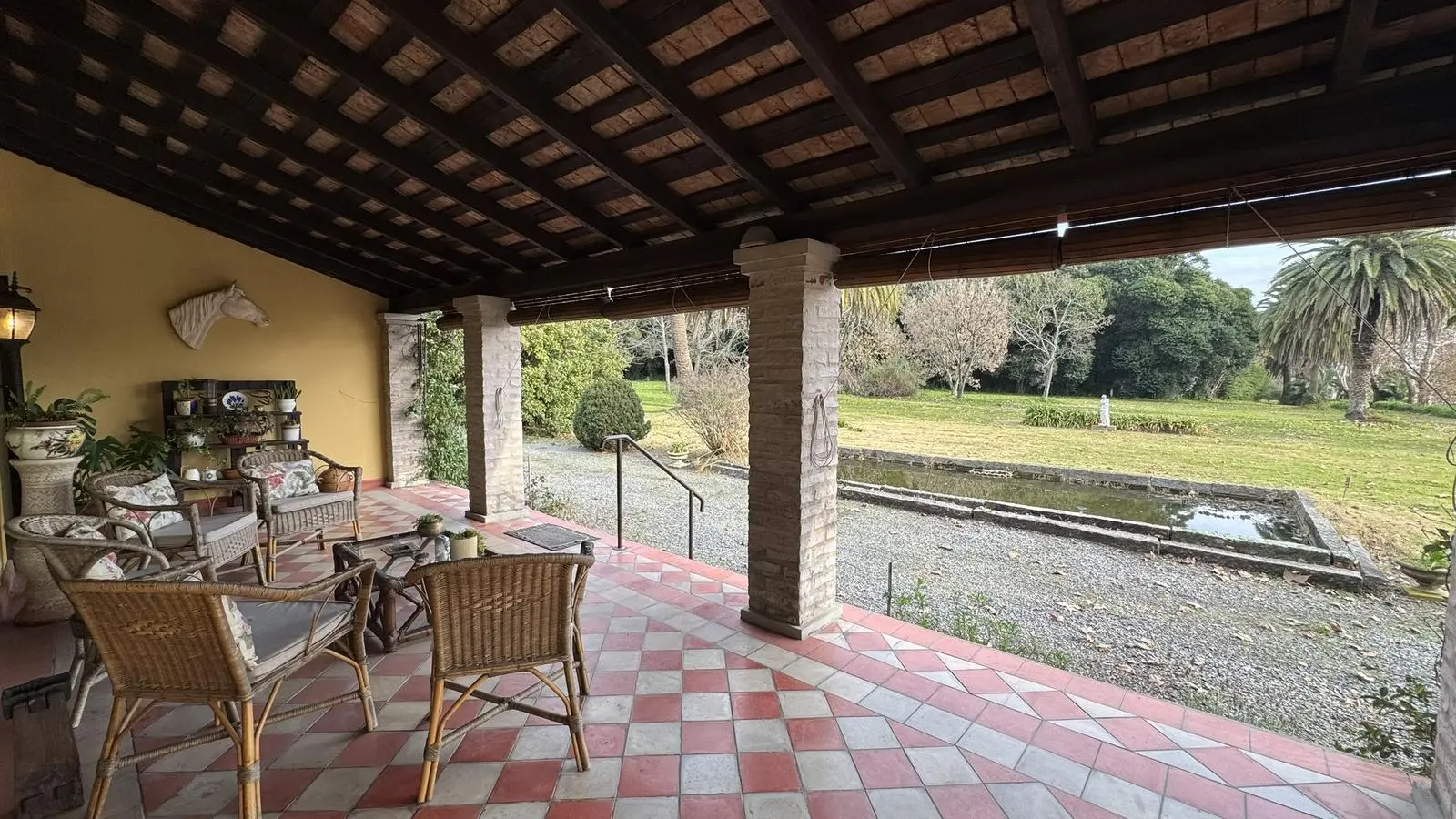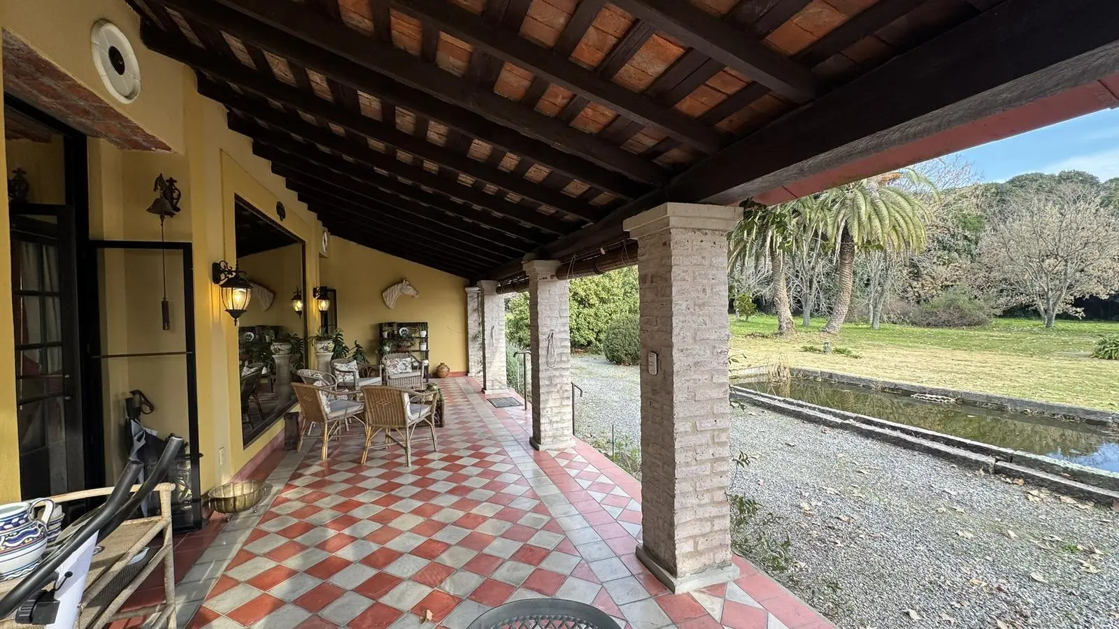 - Tinglado para vehículos, taller con baño, anexo utilitario, estanque ornamental, casa de bombas y piscina de 14,8 x 6,8 m con glorieta y sistema de filtrado automatizado.
