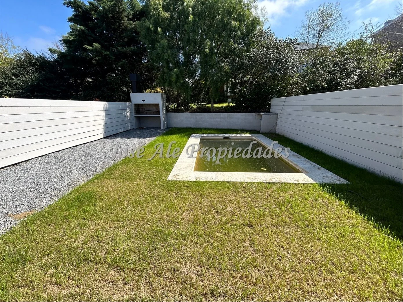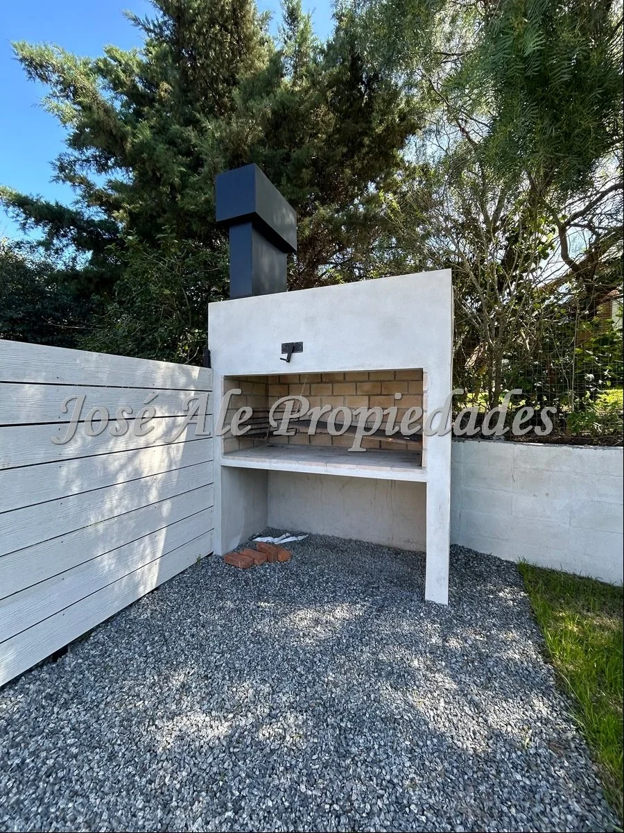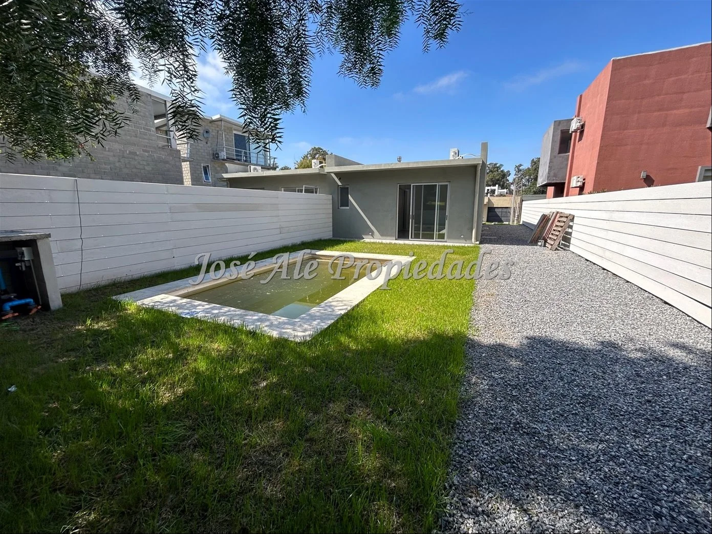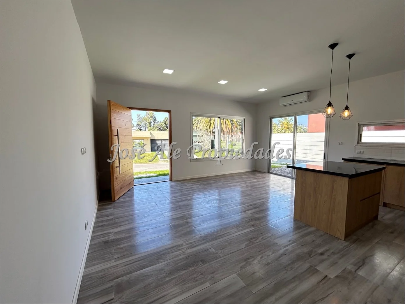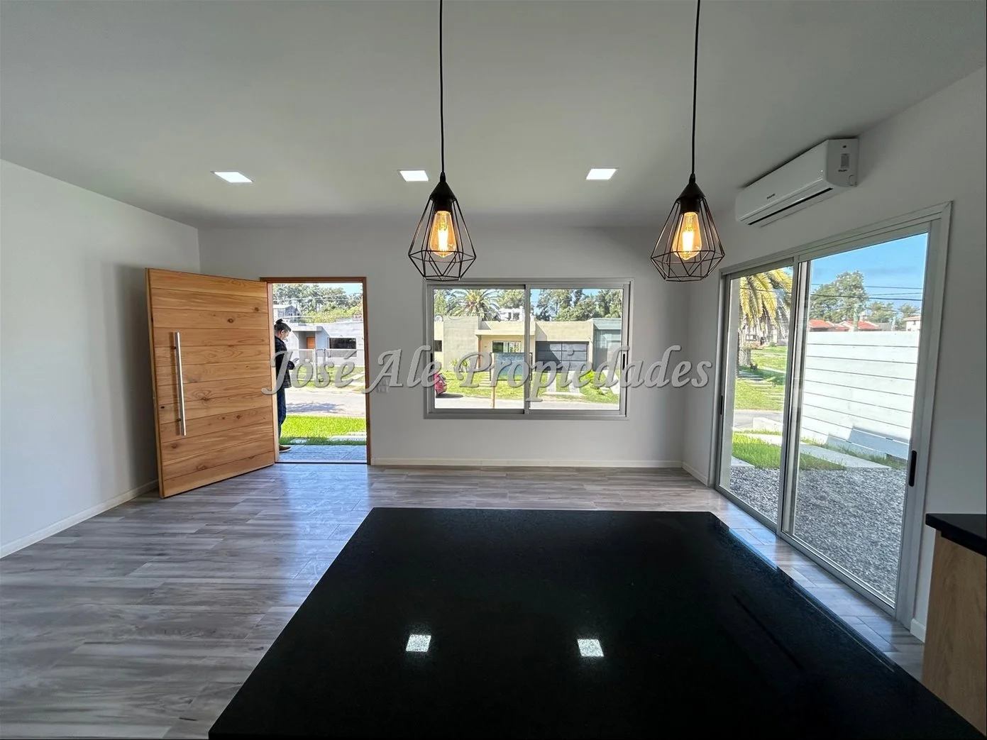 Comodidades: - Espacioso living comedor con pisos de porcelanato símil madera en tonos de grises. - Moderno calefactor a leña. - Aires Ac. - Cocina integrada con mesada de granito negro e isla desayunador, mobiliario a medida aéreo y bajo mesada, anafe y horno empotrados, campana extractora y moderno revestimiento. - 2 Cómodos dormitorios, uno de ellos en suite con vestidor y el otro cuenta con amplio armario empotrado piso-techo. - 2 Baños amplios y modernos. - Amplio patio completamente amurado. - Parrillero completo. - Hermosa piscina.