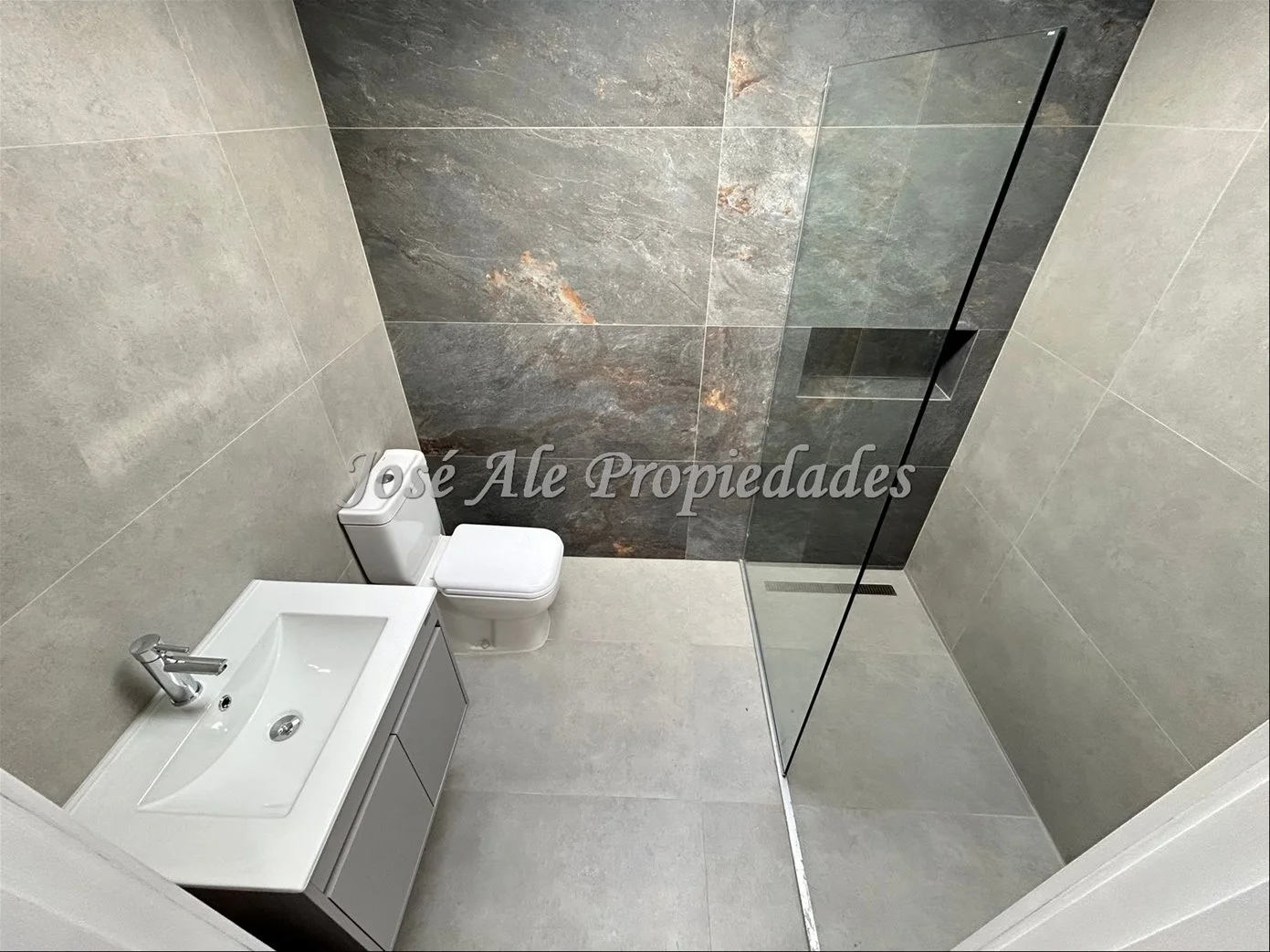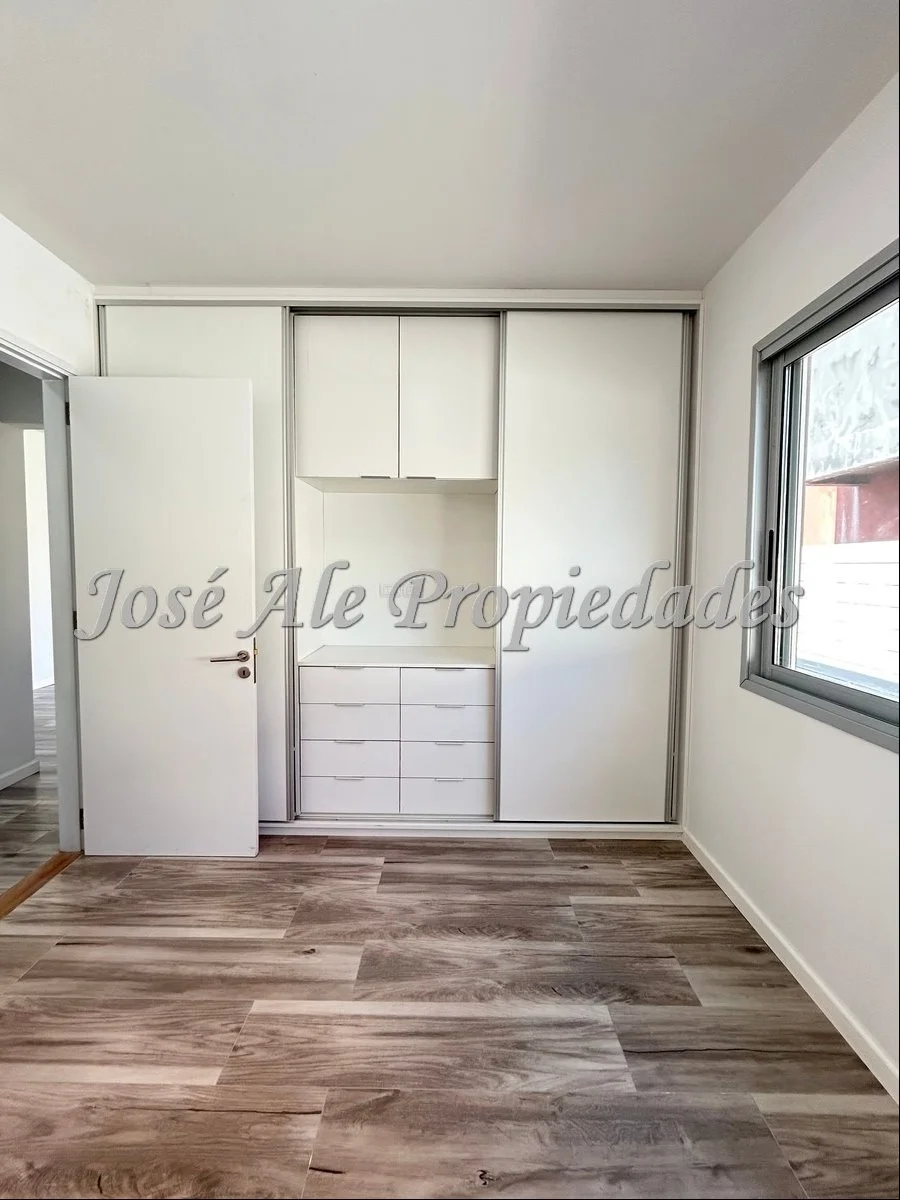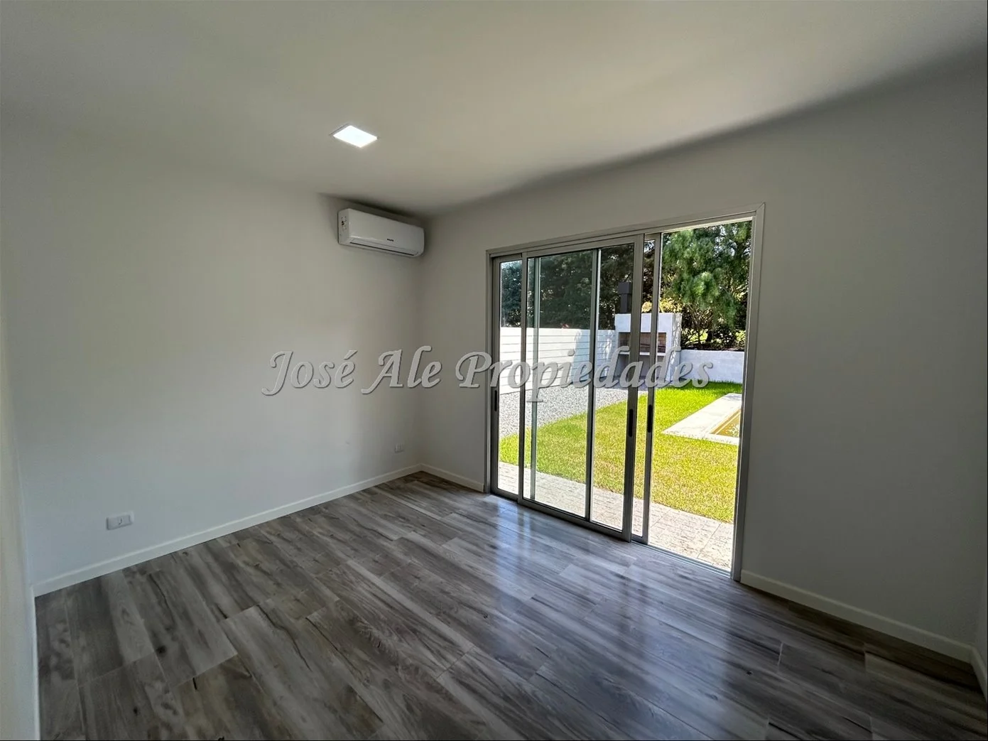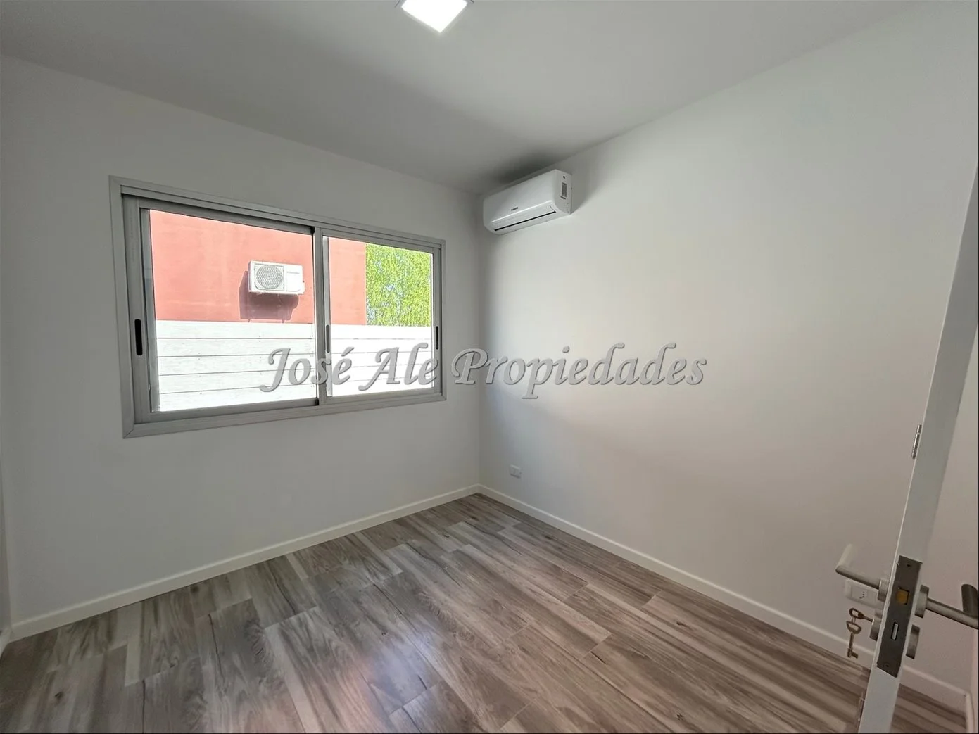 Comodidades: - Espacioso living comedor con pisos de porcelanato símil madera en tonos de grises. - Moderno calefactor a leña. - Aires Ac. - Cocina integrada con mesada de granito negro e isla desayunador, mobiliario a medida aéreo y bajo mesada, anafe y horno empotrados, campana extractora y moderno revestimiento. - 2 Cómodos dormitorios, uno de ellos en suite con vestidor y el otro cuenta con amplio armario empotrado piso-techo. - 2 Baños amplios y modernos. - Amplio patio completamente amurado. - Parrillero completo. - Hermosa piscina.