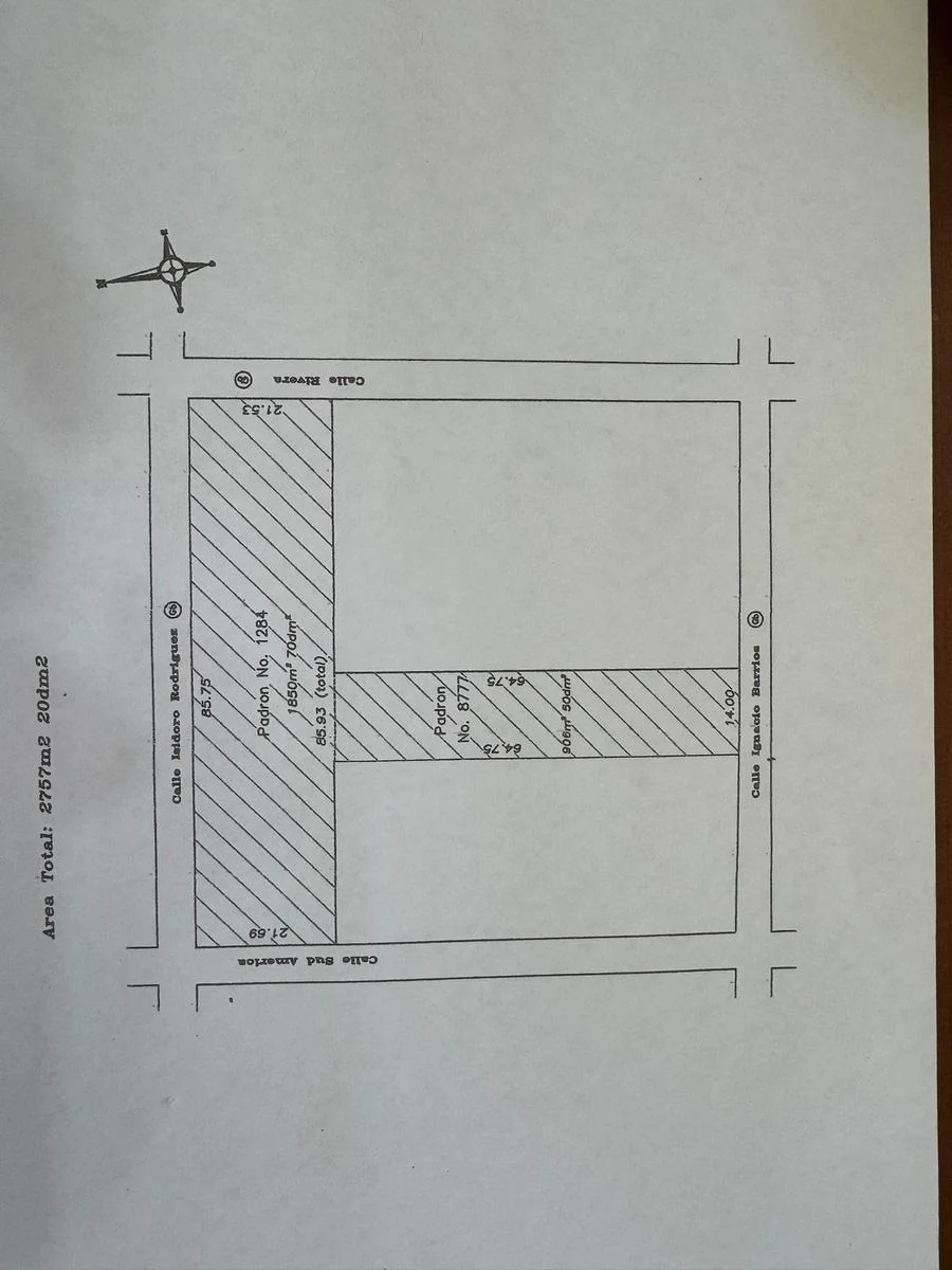 La propiedad está conformada por dos padrones (N.º 1284 y 8777), con una superficie total de 2.756 m², y una ubicación estratégica con frente y acceso por cuatro calles:
