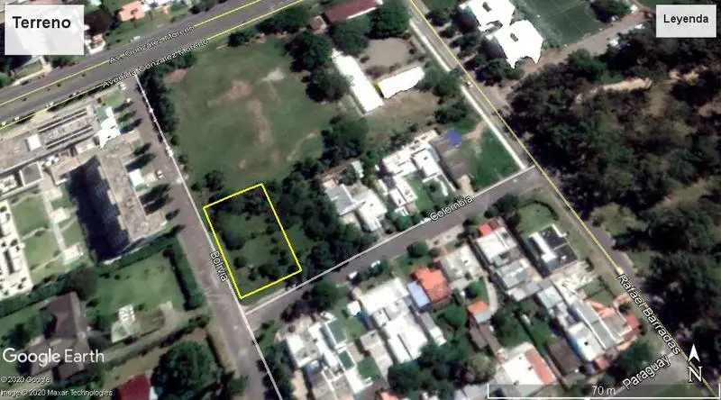 En venta muy lindo terreno en esquina a 100m de la Rambla de Colonia. Tiene 30 metros de frente por calle Bolivia y 23 metros por calle Colombia. Actualmente posee arboles frutales.