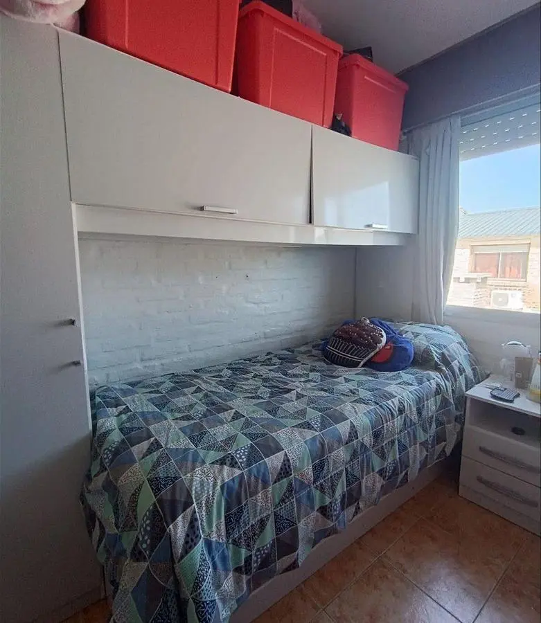 CASASWEB(241693) Casa en venta en complejo de viviendas en el barrio de el General departamento de Colonia, esta propiedad consta de 45 metros cuadrados edificados, esta desarrollada en dos plantas, super iluminada, en planta baja con cocina integrada con muebles aéreos y bajo mesada ideal para quienes disfrutan de espacios multifuncionales, living comedor con estufa a leña que crea un ambiente acogedor que calefacciona toda la propiedad y en planta alta se encuentran los dos dormitorios y el baño completo, además tiene lugar de guardado tipo altillo, el estado de la propiedad es excelente es una construcción con doble pared de ladrillo.Las comodidades de esta casa permiten que sea funcional, además de contar con un patio techado que le da privacidad y amplia la posibilidad de disfrutar del mismo, cerca de los centros de estudio y en un radio de 4 cuadras tiene todos los servicios supermercados, redes de cobranzas, panaderías, veterinaria, barracas y muchos más.Es un complejo totalmente cercado con portones automatizados y con gran espacios verdes de juego y estacionamiento, además tiene salón comunal totalmente equipado para eventos o reuniones.Tener tu casa propia nunca fue tan fácil, llama y coordina una visitaPrecio más saldo de cuotas accesibles en la ANV. Ver mas detalles en casasweb.com?241693