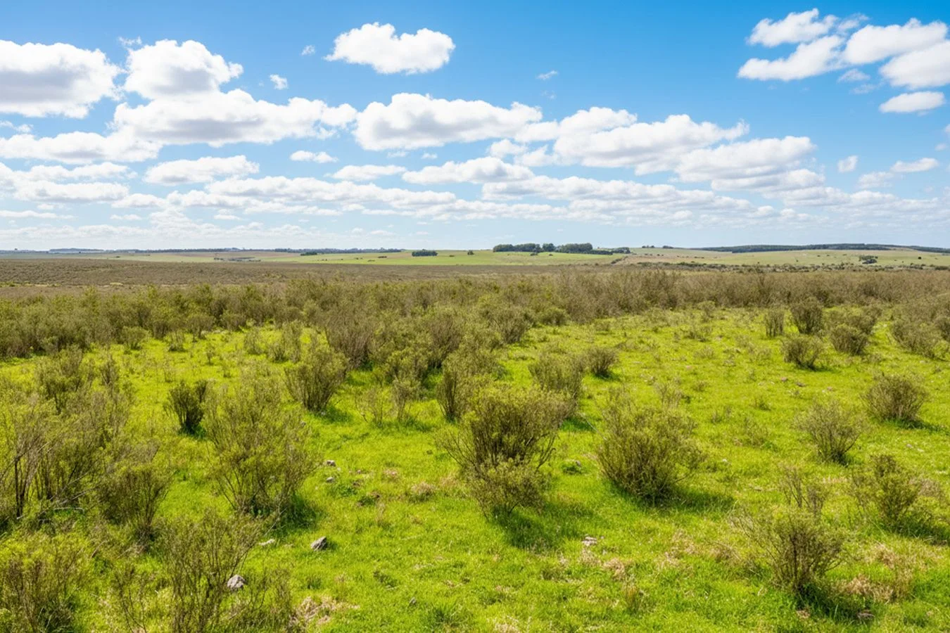 La vegetación del campo incluye áreas con chirca, lo que aporta sombra y abrigo natural para el ganado. Este tipo de cobertura, junto con la disponibilidad de agua y las dimensiones del predio, lo hacen especialmente apto para la producción ganadera extensiva.