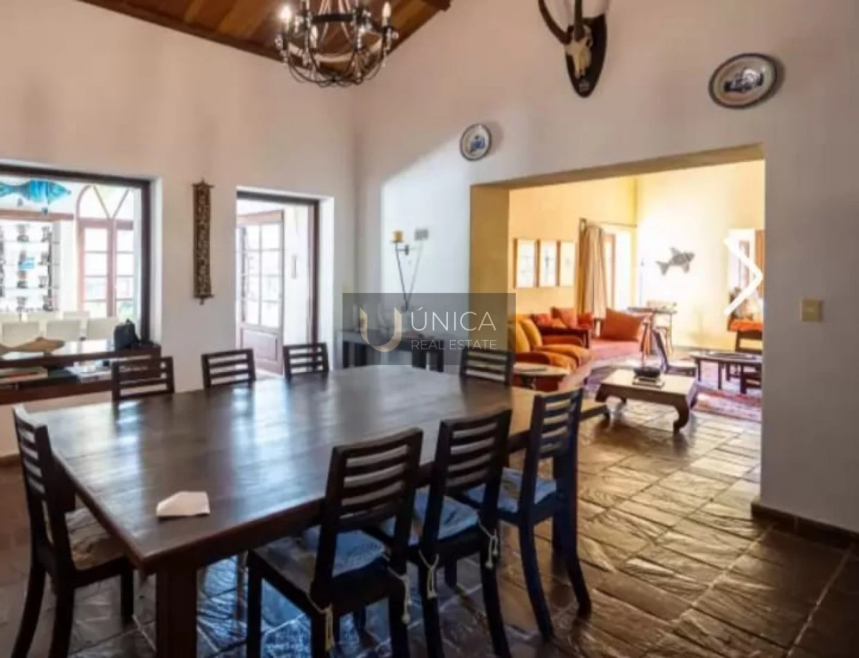 La casa principal cuenta con comedor, biblioteca, áreas sociales, lindísimas galerías y amplia zona de comedor exterior, 1 apartamento privado, 4 suites, habitaciones de servicio, oficina, y una completa y amplia cocina.