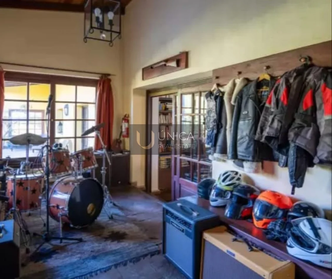 Se entrega con 14 caballos (10 domados). Monturas y arreos. 3 bicicletas de montaña, 4 canoas, remos y chalecos, 1 motor fuera de borda, 1 automóvil Ford T 1925 funcionando, una rural Subaru 4x4, motos todo terreno Yamaha 200 y Honda 600, Tractor Husqvarna corta pasto, desmalezadoras, máquina de cortar pasto manual, máquina de podar, vehículo todo terreno Kawasaki Mule 600, equipo de aspiración del fondo de la piscina fabricado bajo pedido, bomba de circulación de la piscina, sistema de presurización del agua hacia la casa duplicado en caso de falla, generador de electricidad de emergencia, todo el mobiliario (varios muebles traídos de Europa con más de 300 años de antiguedad), toda la ropa de cama y baño para todas las suites, toda la decoración de la casa, alfombras persas, cocina completamente equipada semi profesional, 3 heladeras con freezer, freezer vertical, freezer horizontal, máquina de lavar semi industrial, cuarto de planchado completo, termofones eléctricos y de gas.