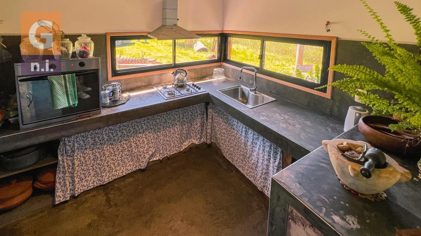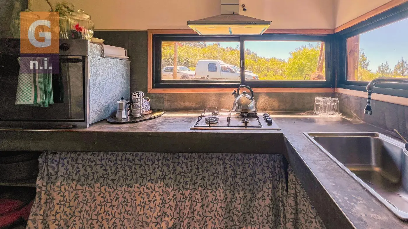 A través de un pintoresco sendero que desciende hacia la cañada, encontramos la segunda casa, edificada con sistema good framing. Esta cuenta con un living comedor con cocina integrada, un dormitorio matrimonial y baño social. Desde su terraza, se disfrutan vistas espectaculares a las sierras, perfectas para contemplar los atardeceres del lugar.
