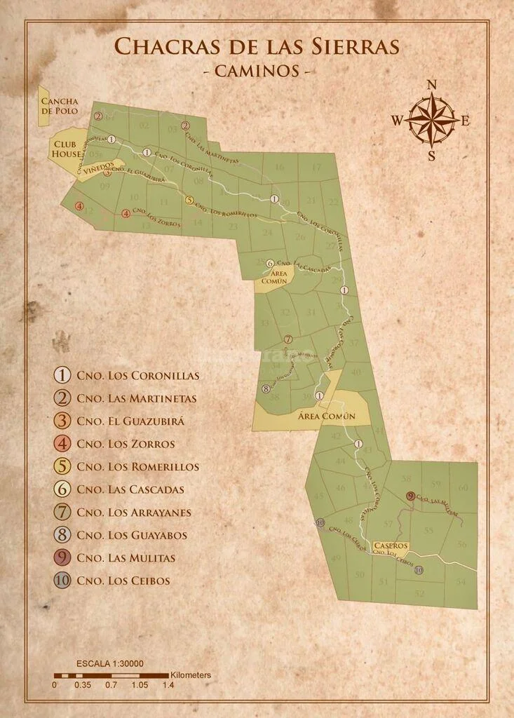 Acá es donde entra en juego el concepto que intentamos transmitir que es que: cada chacra de aprox. 16 hectáreas, solamente se puede cercar y construir dentro del 30% (5 hectáreas aprox) dejando el otro 70% para libre circulación.