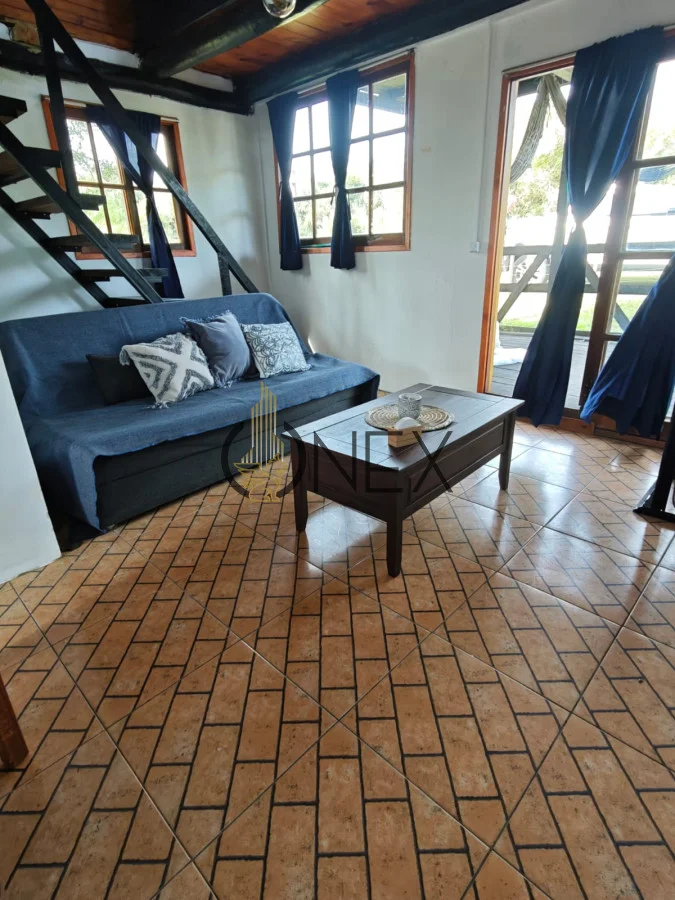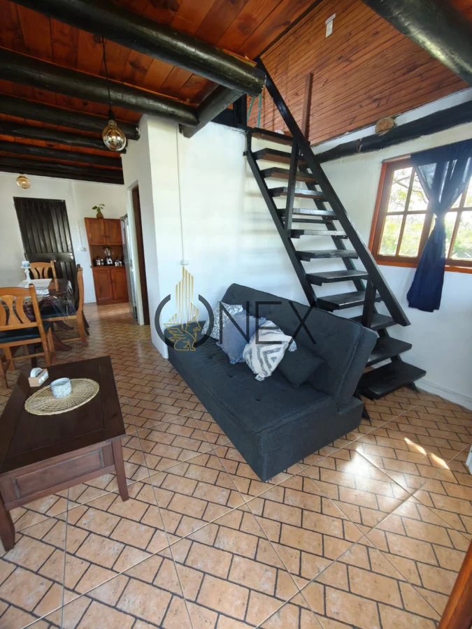 La propiedad cuenta con un luminoso living comedor con estufa a leña, ideal para crear momentos inolvidables en invierno. En planta alta, un dormitorio con cama matrimonial y un balcón con vistas espectaculares a las sierras, más dos camas de una plaza. En planta baja, un sofá cama adicional para recibir cómodamente a toda la familia o amigos.