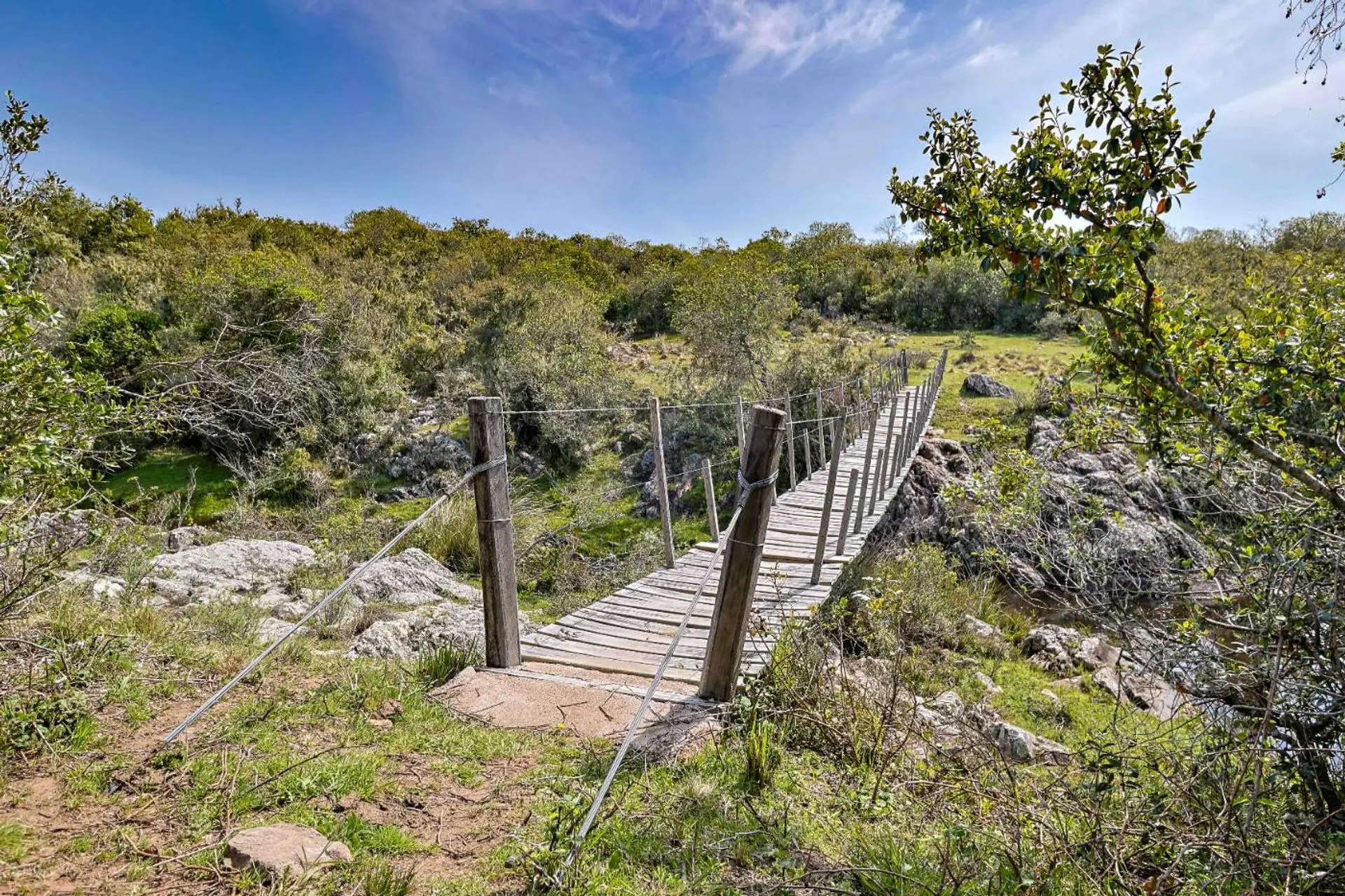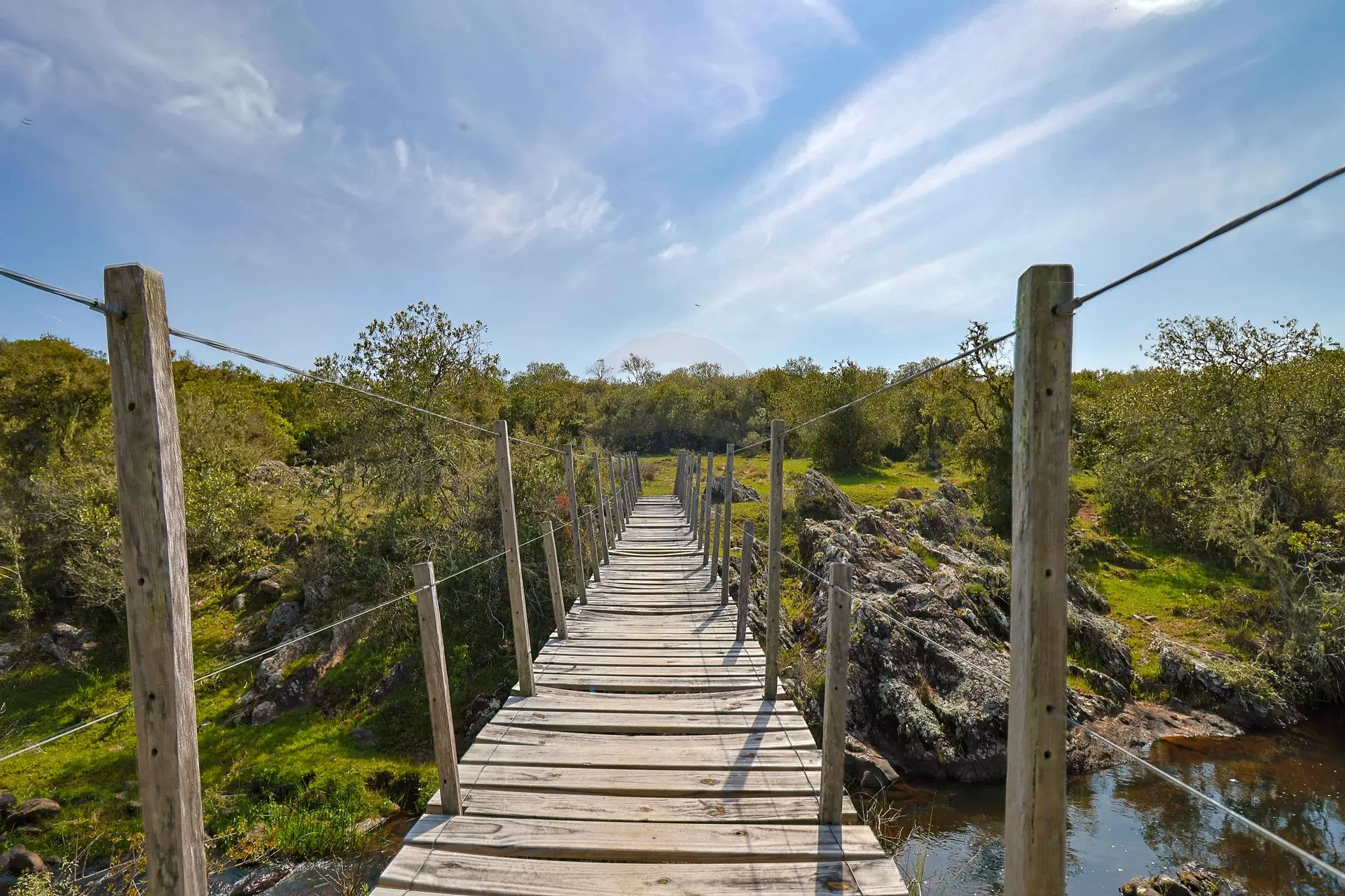 Estanque natural, una olla de un atractivo increíble, con un puente colgante. Cañadas y atractivos saltos de agua.