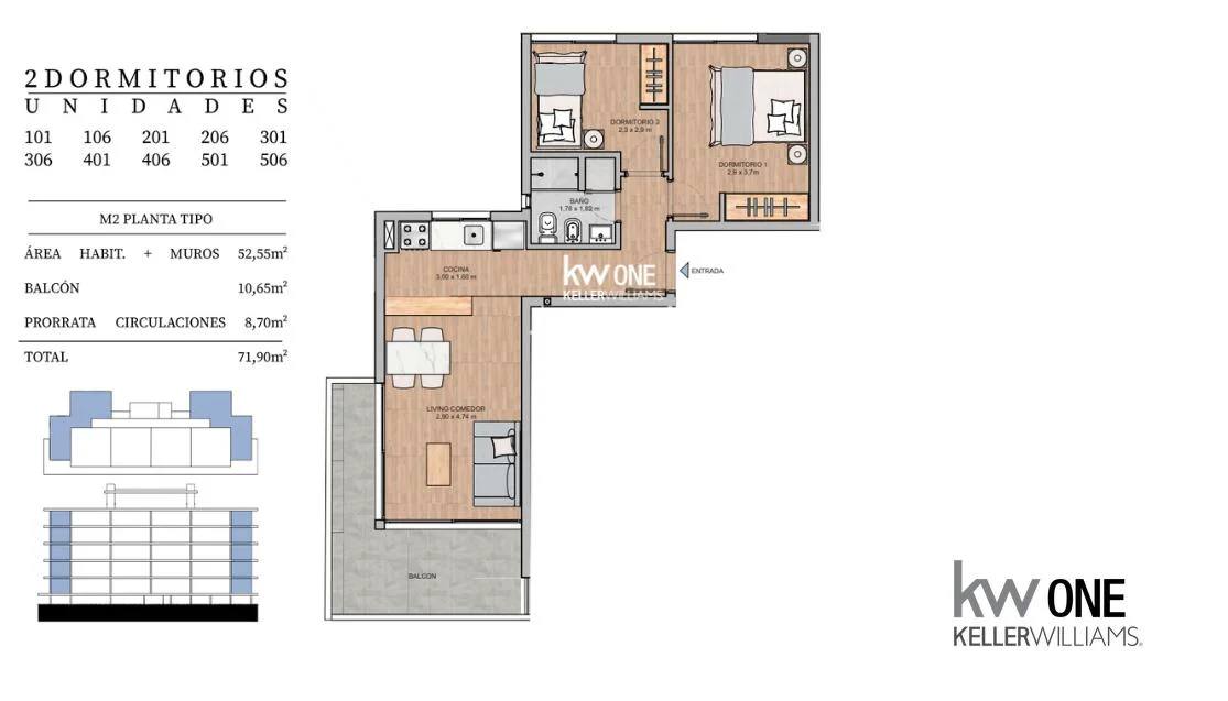 3 ambientes en un 3er piso desarrollado
