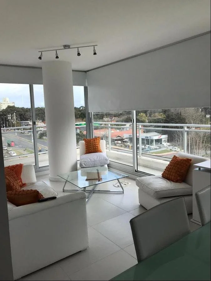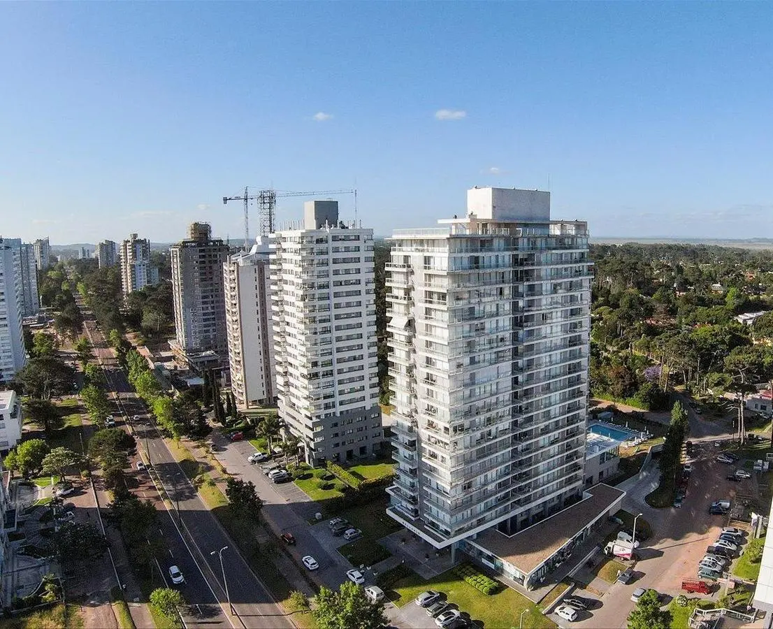 Moderno apartamento en edificio Bellagio Tower de Avenida Roosevelt.Espacios amplios y super luminoso.Amplia terraza.Piso alto con vista al mar.Cuenta con 70 m2 interiores los cuales se distribuyen en:2 dormitorios, 1 en suite.2 baños.Living comedor amplio con vista al mar.Cocina integrada.Terraza lavadero.Garage.Servicios:El edificio cuenta con piscina exterior, piscina climatizada interior, gym, sauna, sala de reuniones, barbacoa, seguridad 24 hs.Alquiler anual usd 1.300