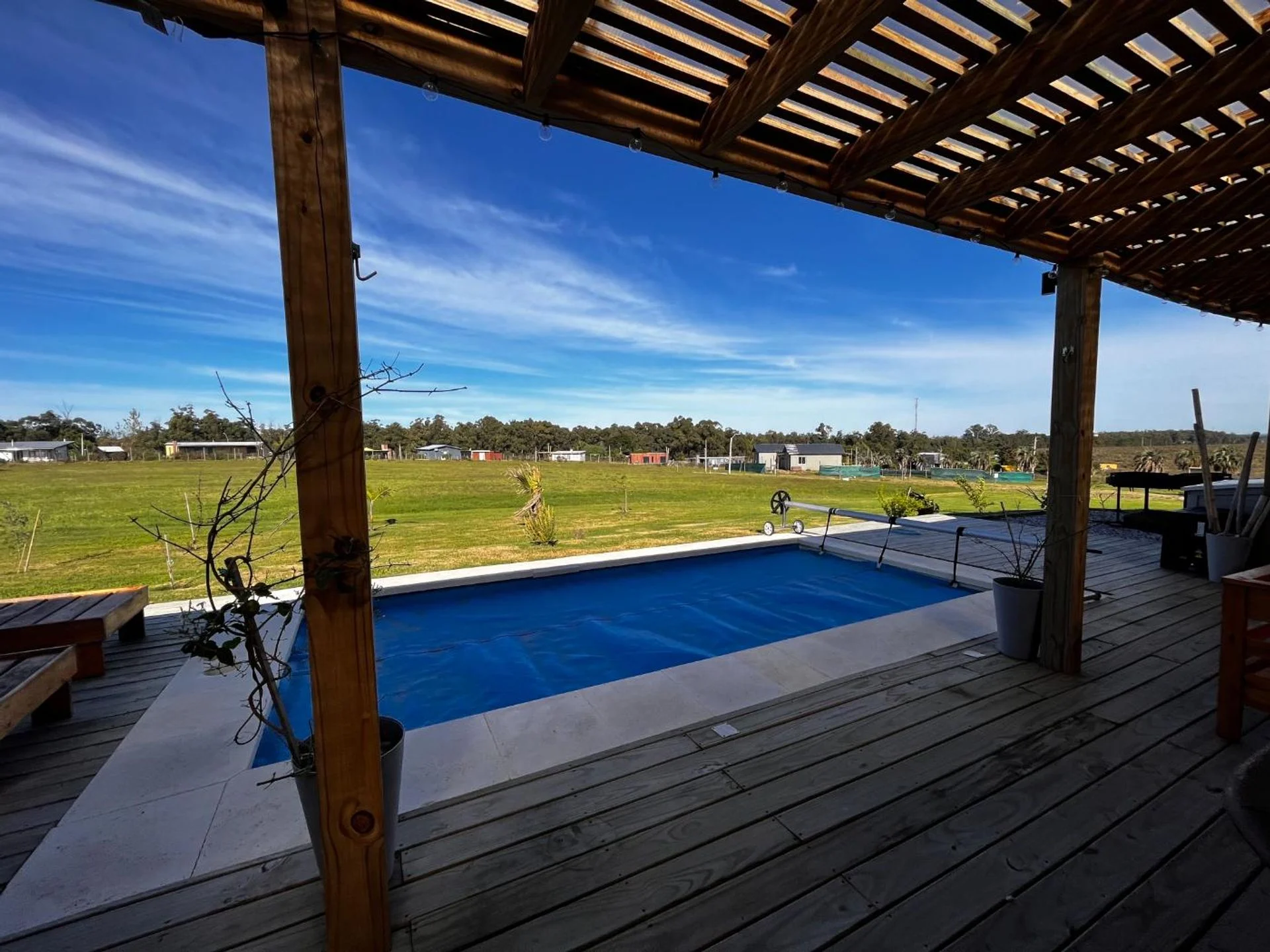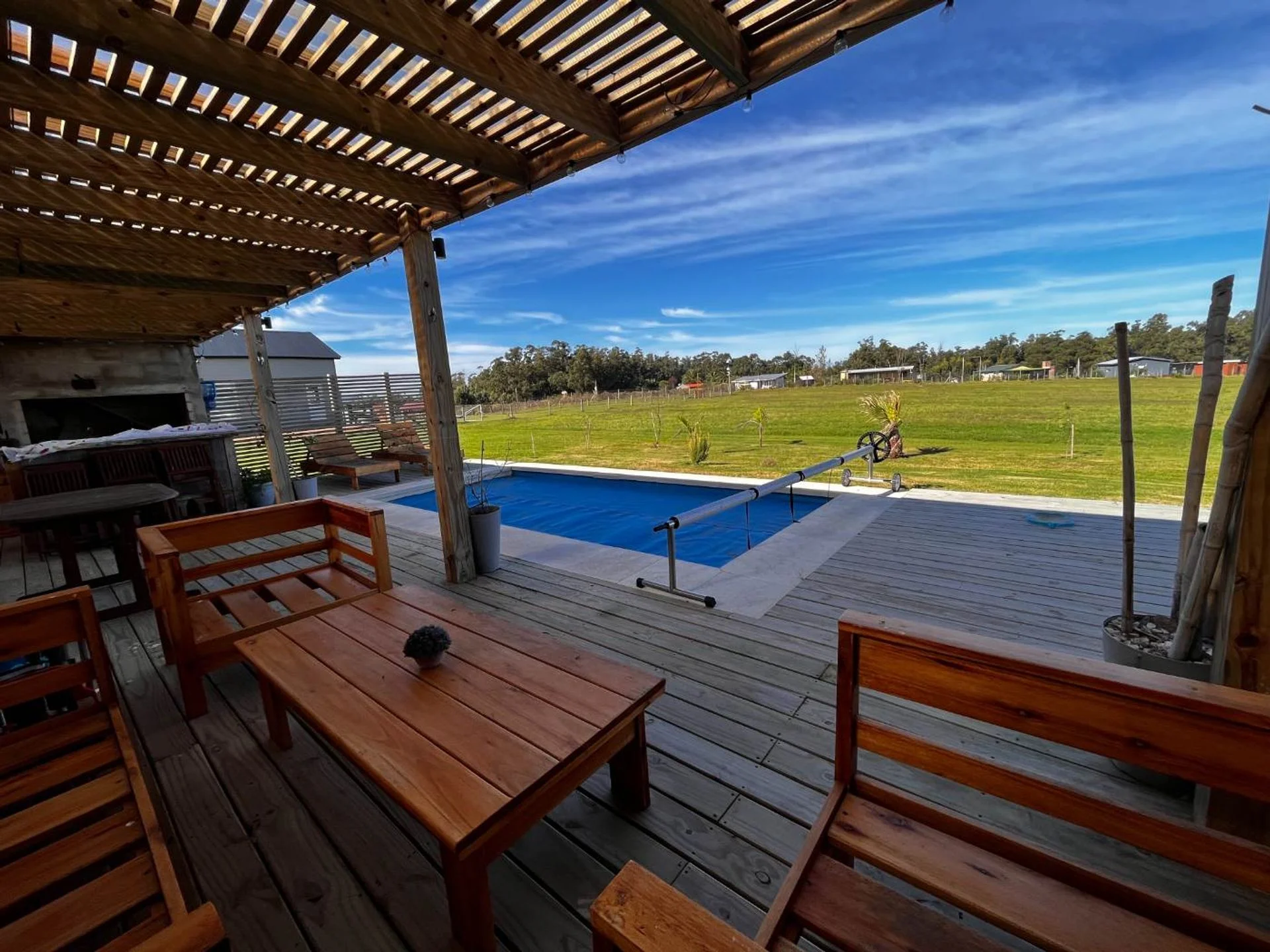 Piscina y deck con parrillero.