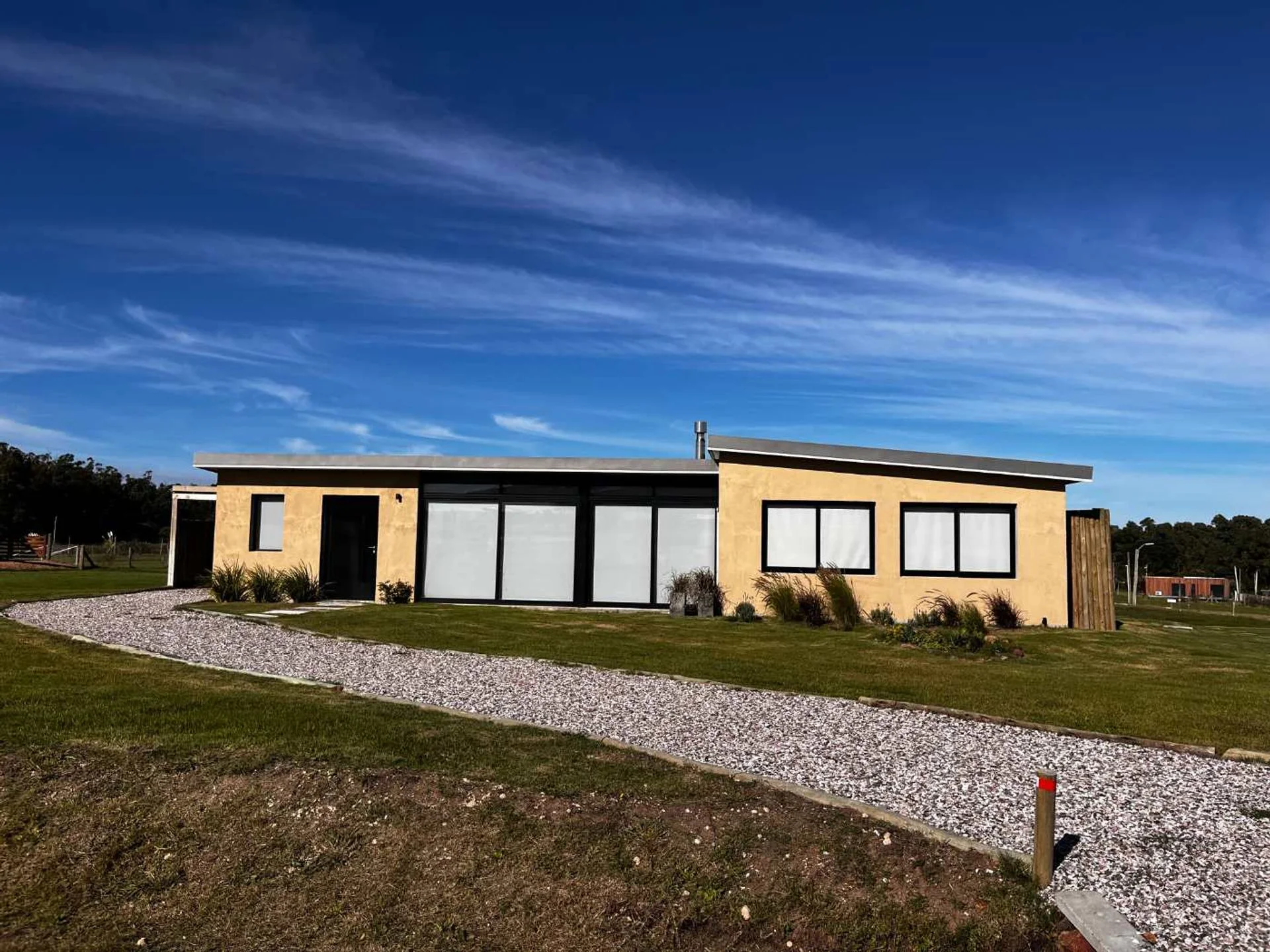 La construcción es combinada, paredes de modublock, internamente placas de yeso, pisos de porcelanato, aberturas de aluminio y techo de isopanel.