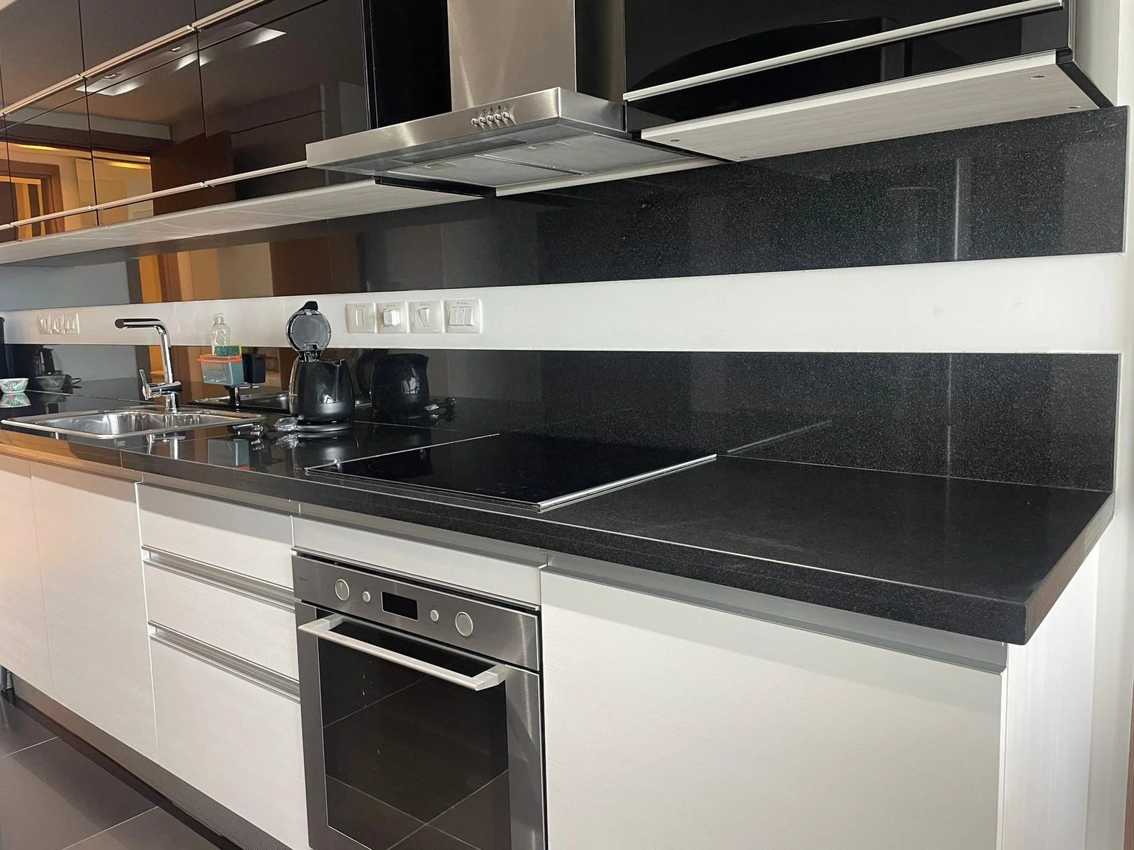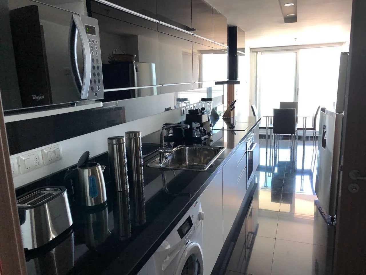 Amplia cocina definida con comedor diario, que conecta con la terraza y logra vista al mar. Dependencia de servicio con su respectivo baño. Toilette. Dormitorio (en suite) al frente con vista al mar y salida a la terraza, 2 dormitorios y baño completo con bañera. Posee aire acondicionado en todos los ambientes y losa radiante sectorizada. La unidad cuenta con garaje.