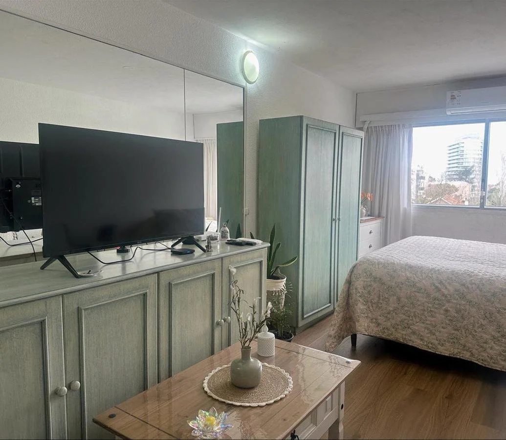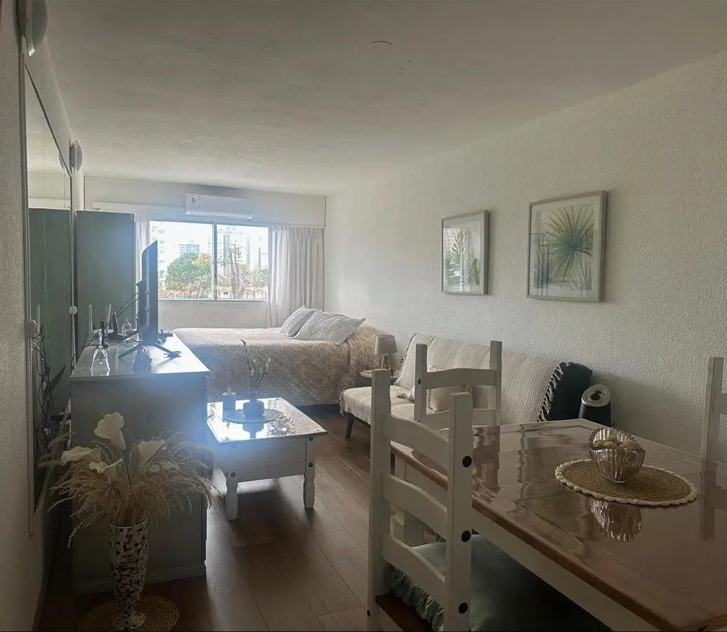 CASASWEB(238246) A un paso de Plaza México en la zona más bonita de Punta del Este, entre la Playa Brava y la Mansa.Consta de un ambiente, cocina semi-integrada y baño completo. El edificio cuenta con piscina exterior, barbacoas y un amplio jardín con juego para chicos.Enero disponible del 20/1 al 31/1 U$S 1800.Quincenas de Febrero U$S 1900 c/u.Febrero mes U$S 3600.¡Consulte con nuestros asesores! Ver mas detalles en casasweb.com?238246