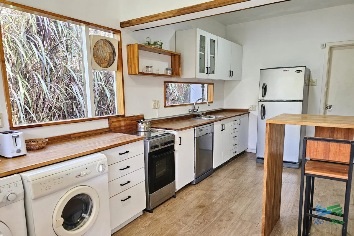La cocina fue reciclada contando la misma con dos heladeras con freezer, lavavajillas, cocina, lavarropa, secarropa, 2 T.V Led