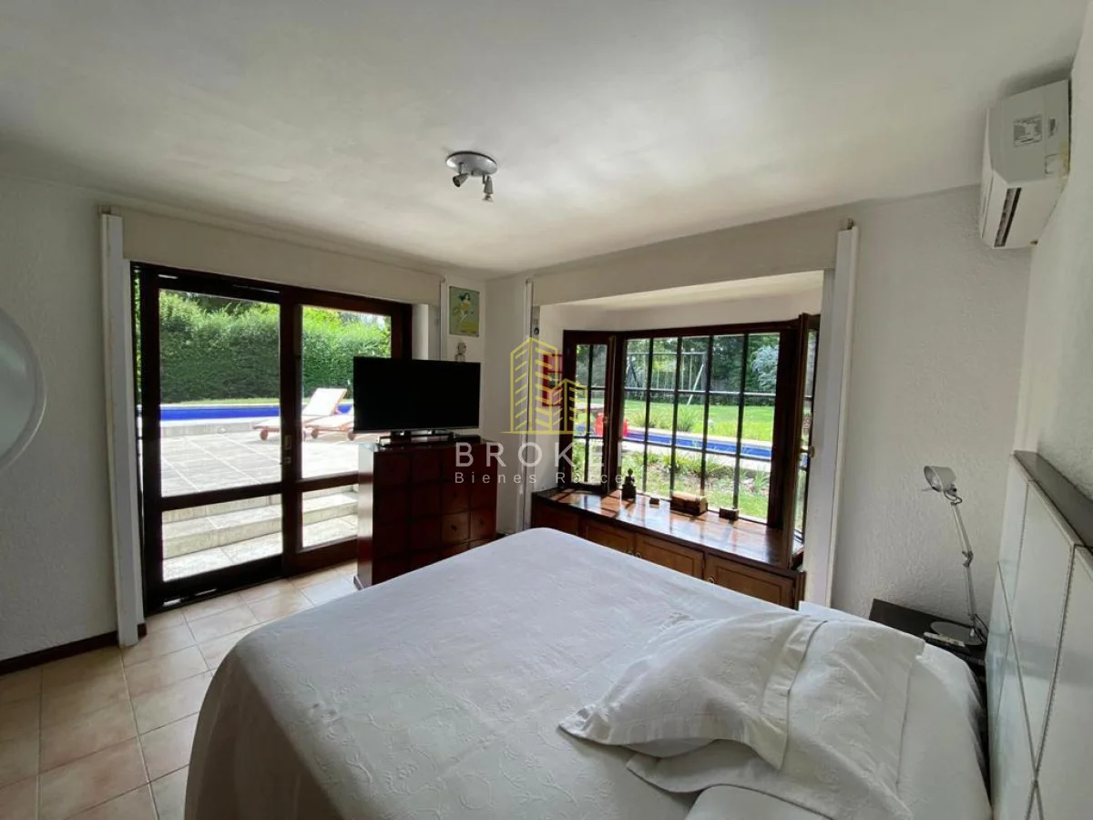En el exterior se destaca el jardín, muy bien cuidado, con piscina y área de solárium, ideal para disfrutar del aire libre con privacidad y en un entorno verde y tranquilo. Los espacios exteriores están bien aprovechados y acompañan muy bien el estilo de la casa.
