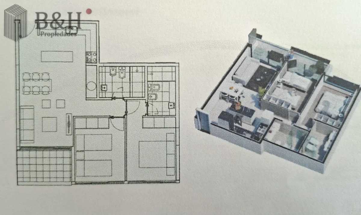 Apartamento en venta, a entrenar, muy luminoso, 2 dormitorios, 2 baños, livingo comedor con balcón y cocina integrada. Edificio con servicios y bajos gastos comunes. Consulta con nuestros asesores Referencia Interna : Tera-6577