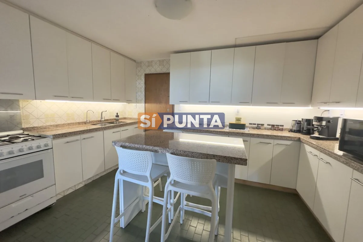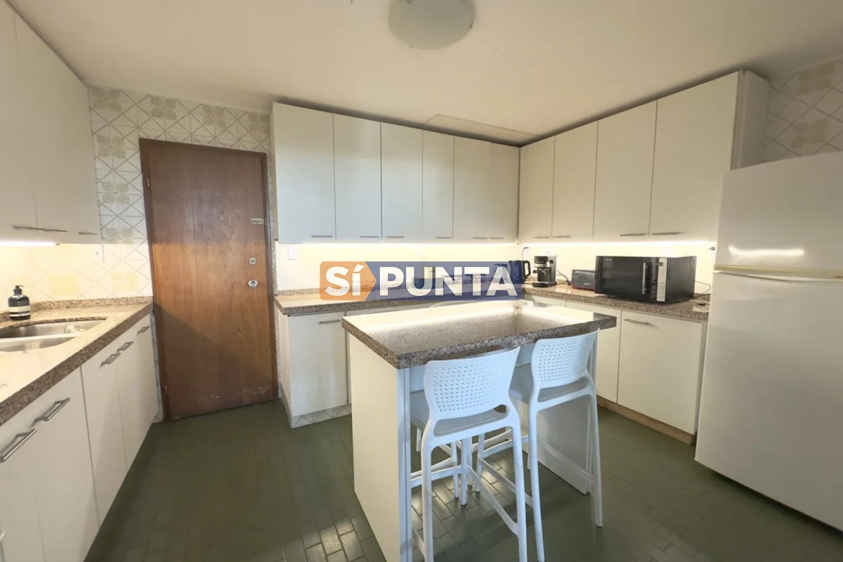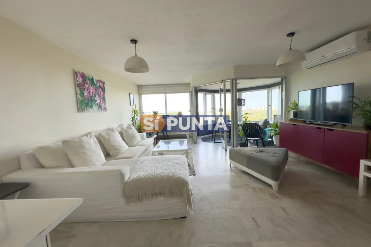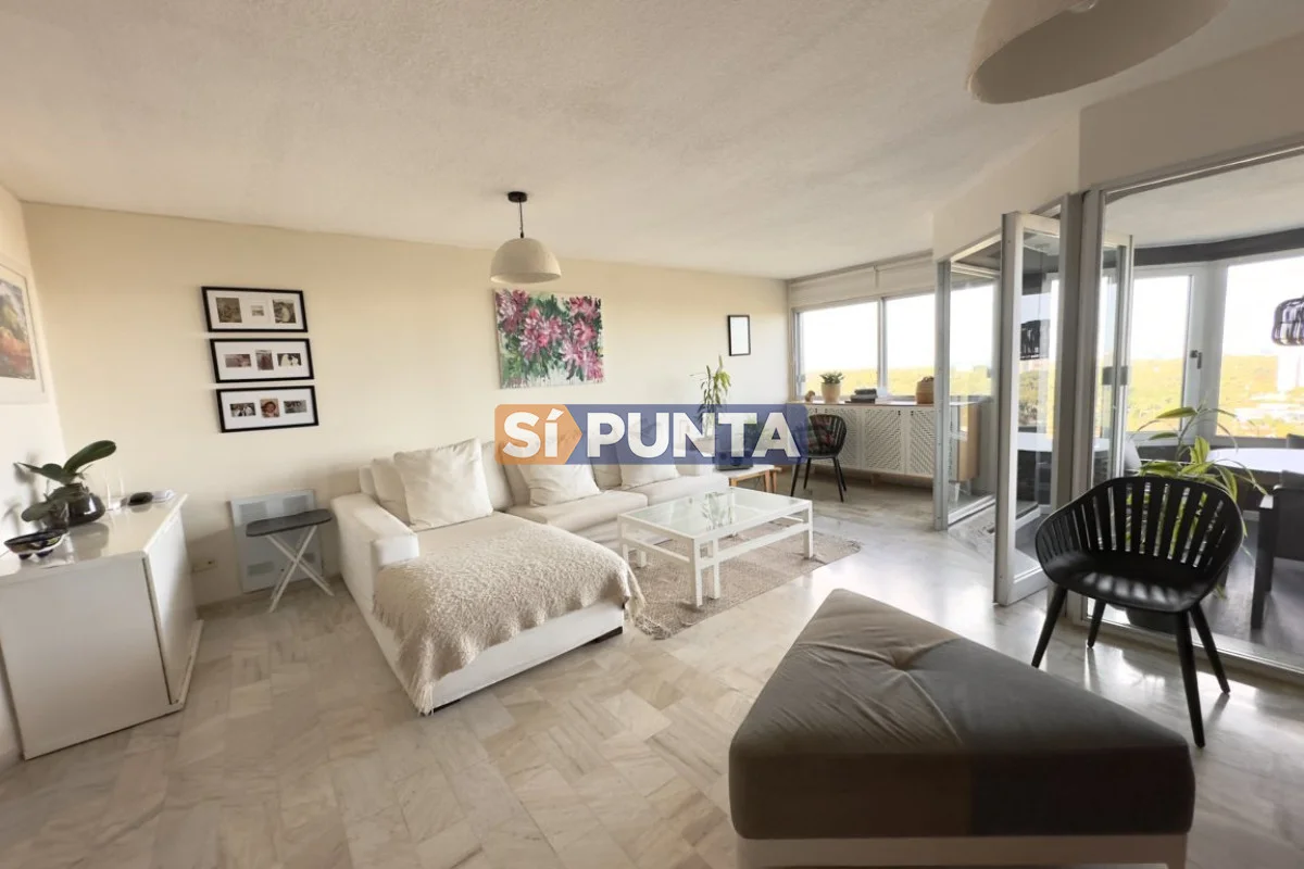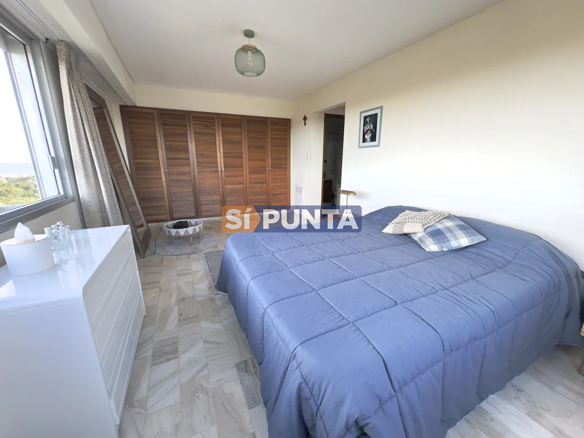 Piso alto, magnifica vista al mar (Playa Mansa, Puerto y Playa Brava). Ideal para los amantes de los amaneceres y atardeceres de Punta! Comodidades: - Amplio living comedor con excelente luz - Terraza cerrada con vista 180 grados de mar - Toilette - Cocina amplia con barra desayunador - Lavadero - 3 amplios dormitorios (una suite) - 2 baños - Garaje - Baulera -Cortinas eléctricas -Excelente equipamiento Por mas información conversa con nosotros Referencia Interna : Tera-876