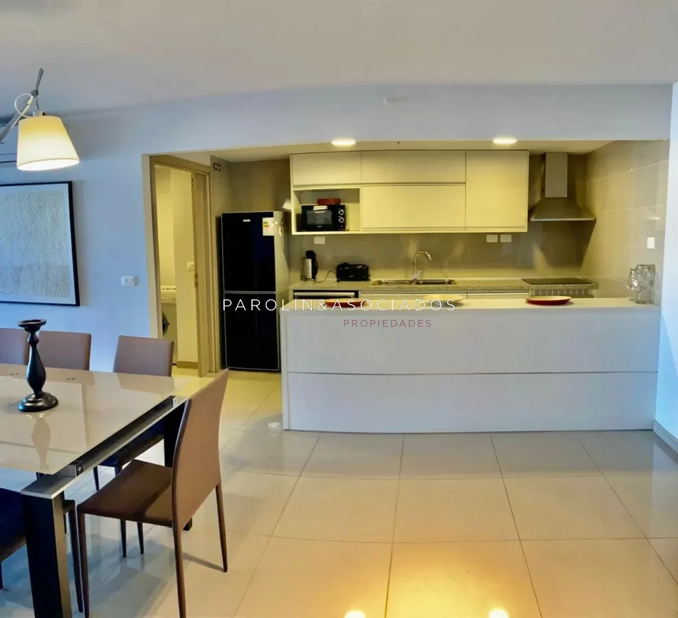 La distribución de este apartamento es perfecta: una cocina integrada que se conecta con el amplio living y comedor, creando un ambiente acogedor y funcional. Equipado con anafe, horno y campana, cada rincón está diseñado para tu comodidad.