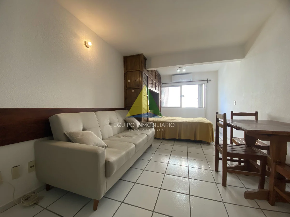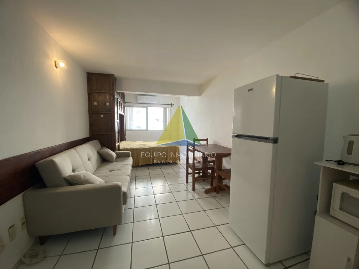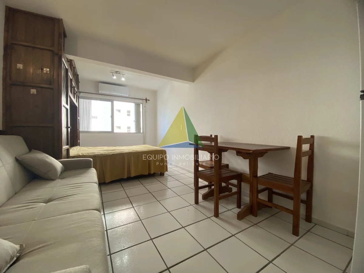 Apartamento Monoambiente en venta. Cuanta con recepción, piscina, hermoso parque con mucho verde, parrilleros y gimnasio. Gastos anuales bajos. Se puede arrendar anual en $25.000 por mes, también buena renta en verano o para vivir todo el año dado su ubicación cerca del shopping, de la península y de la playa.