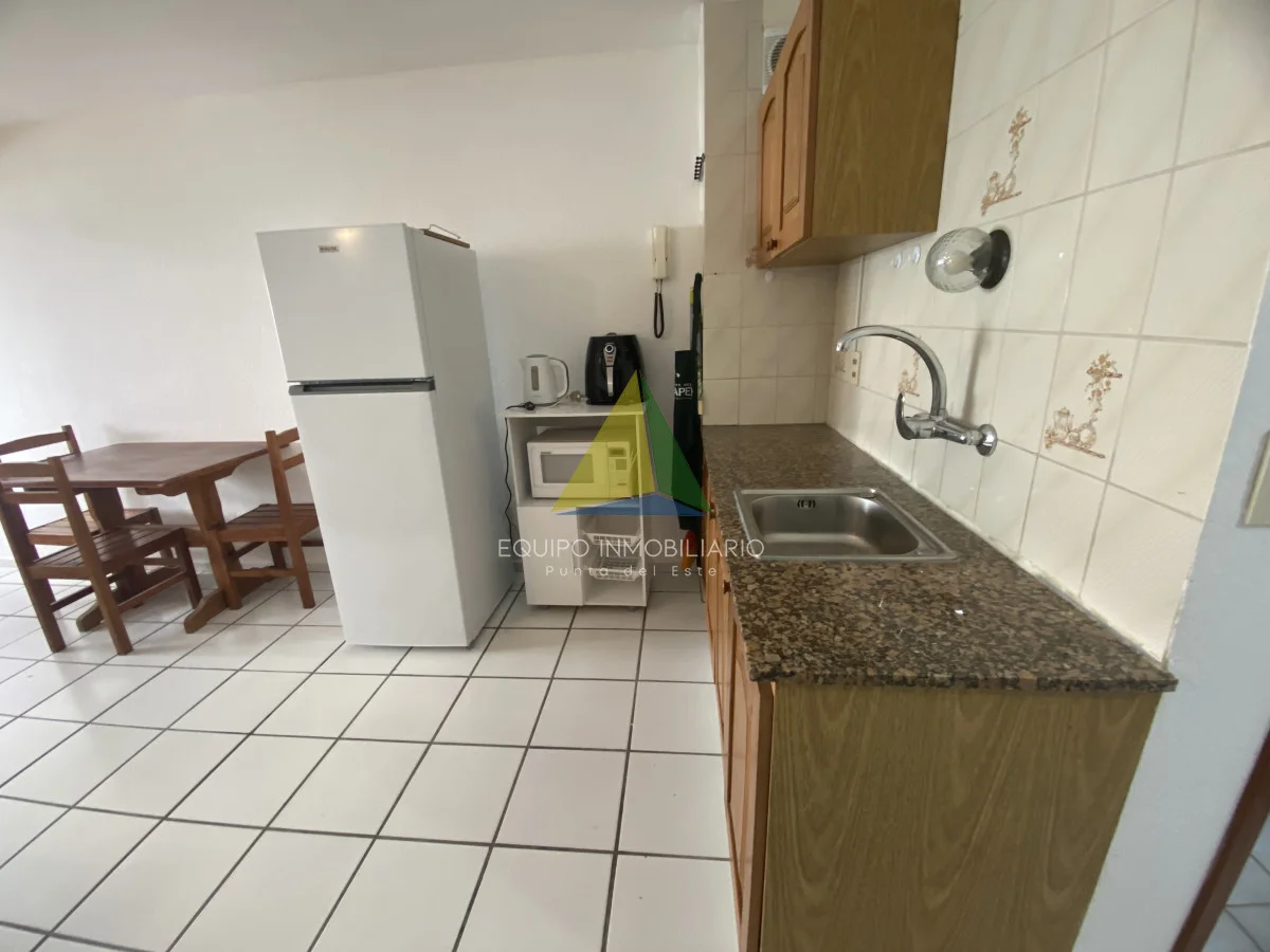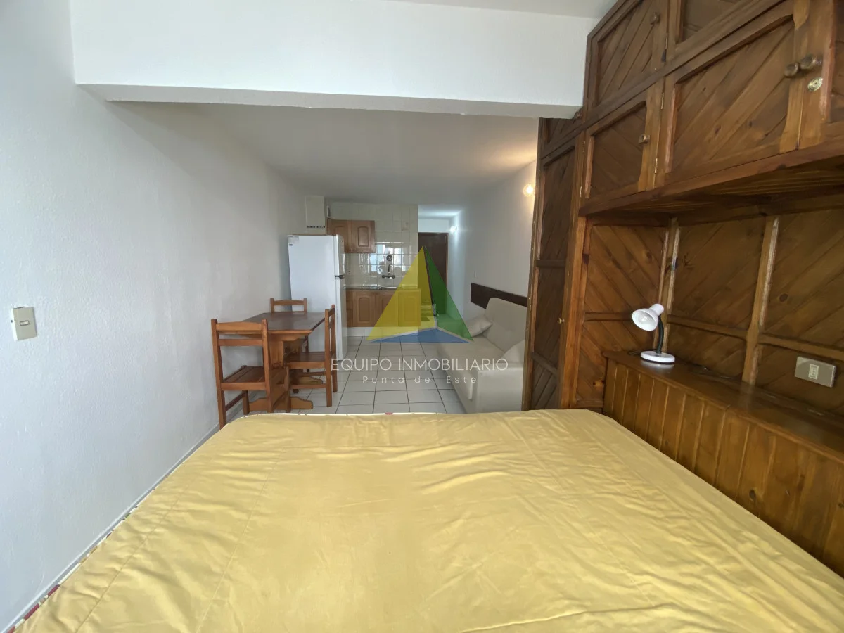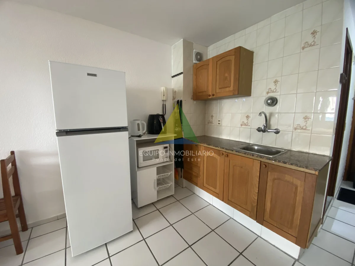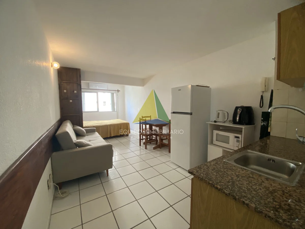 Apartamento Monoambiente en venta. Cuanta con recepción, piscina, hermoso parque con mucho verde, parrilleros y gimnasio. Gastos anuales bajos. Se puede arrendar anual en $25.000 por mes, también buena renta en verano o para vivir todo el año dado su ubicación cerca del shopping, de la península y de la playa.