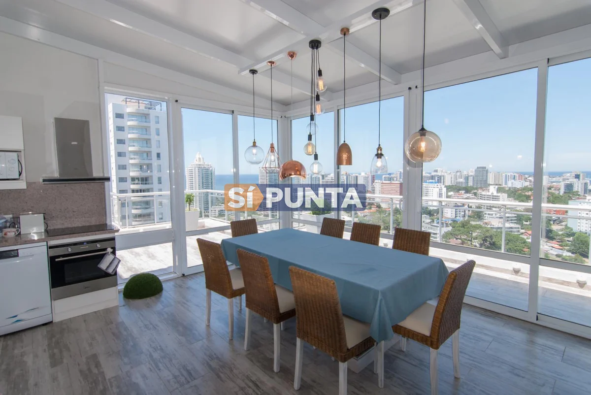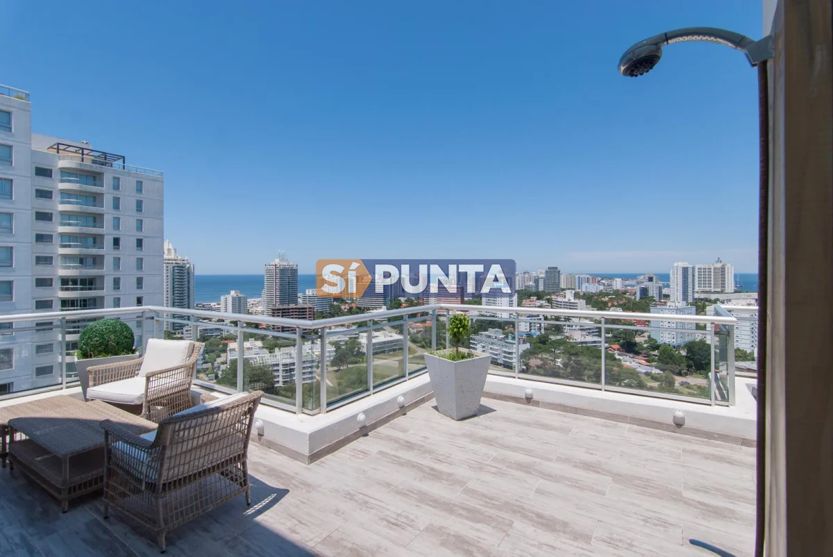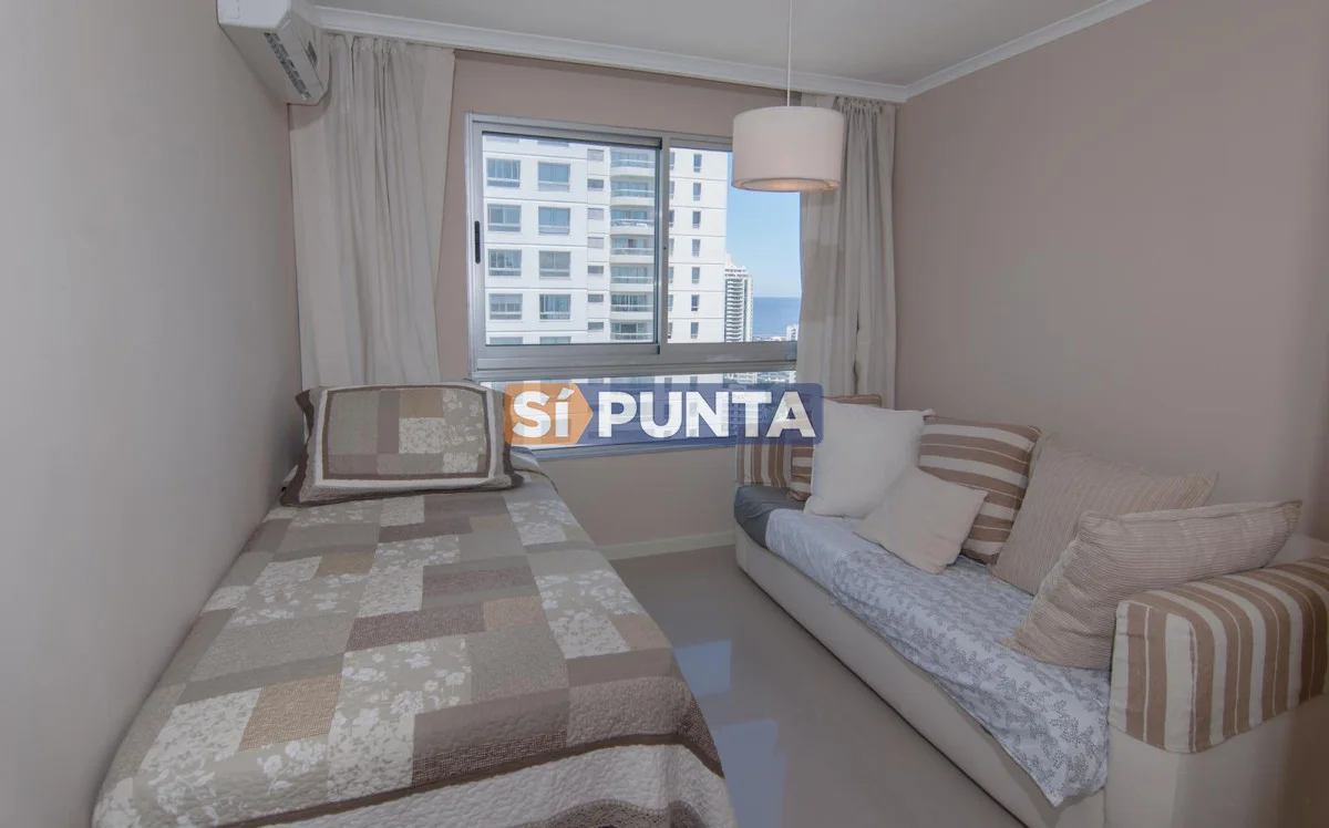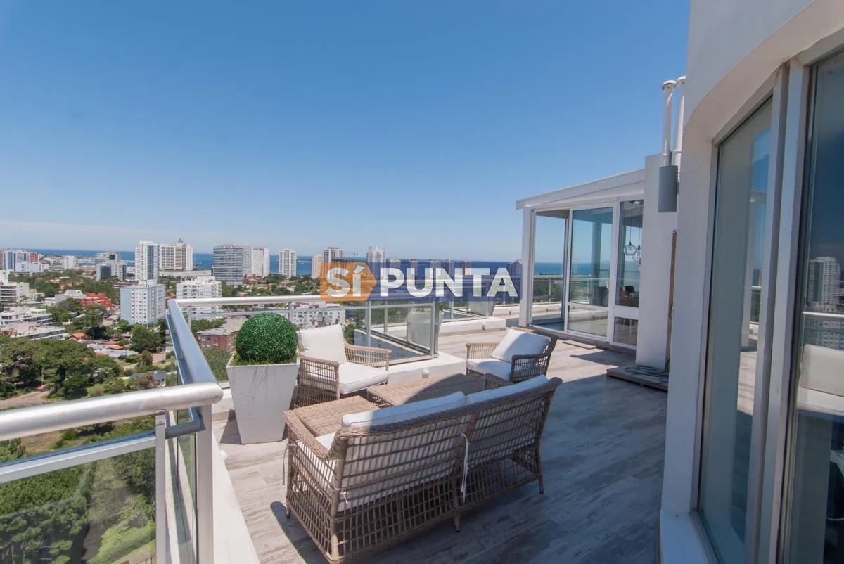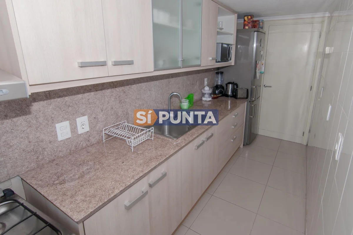 Edificio con servicio de mucamas 3 veces por semana, servicio de playa, piscina climatizada cerrada, piscina abierta, jardines, gimnasio, etc. Incluye ropa blanca. Comodidades: - Living comedor con acceso a balcón. - Cocina definida con lavadero. - Terraza balcón con estar y vista a Playa Brava. - Barbacoa cerrada con cocina, baño, y solarium con vistas a Playa Brava y Mansa. - 3 baños. - 3 dormitorios en suite. - Garage. - Aire acondicionado en todos sus ambientes. Referencia Interna : Tera-3187