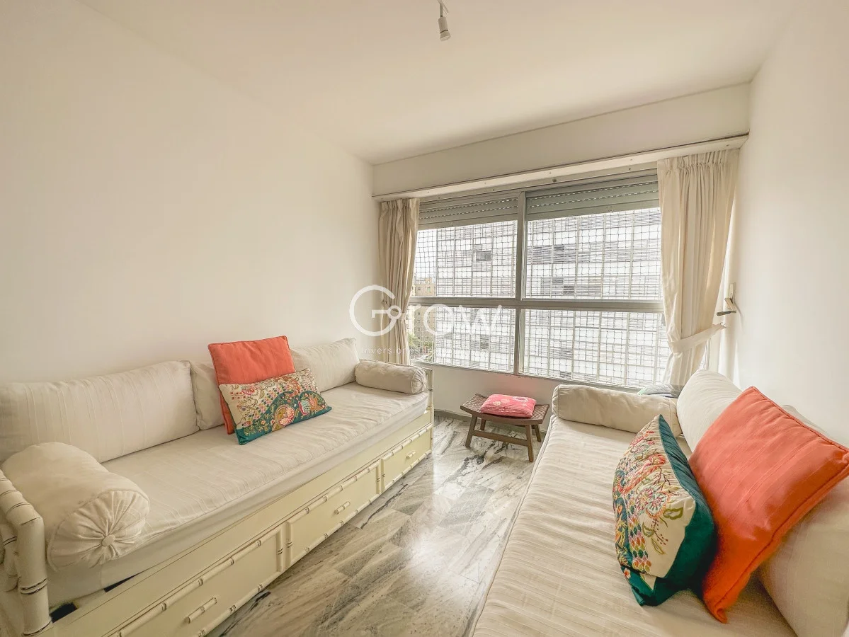Amplio departamento en el corazón de la Península y a pasitos del Puerto. Cuenta con living-comedor sectorizado, cocina definida, 1 dormitorio, baño reciclado. Excelente orientación solar. Garage. Edificio con recepción 24hs, servicio de mucamas, playroom, sauna, solarium, entre otros.