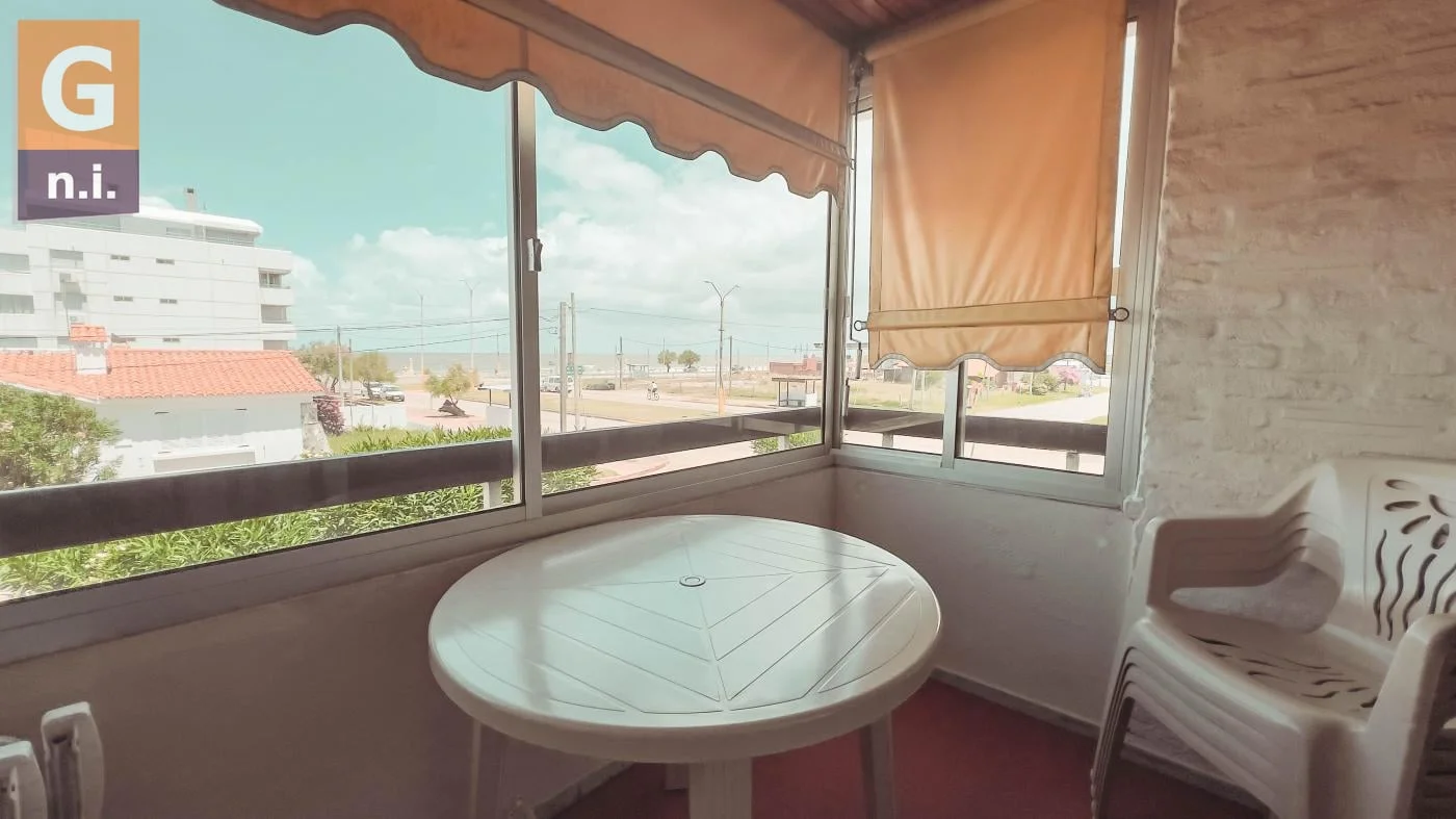 Distribuido en living-comedor con cocina integrada, dormitorio medio y dormitorio principal, baño completo, y balcón cerrado con vistas al mar.