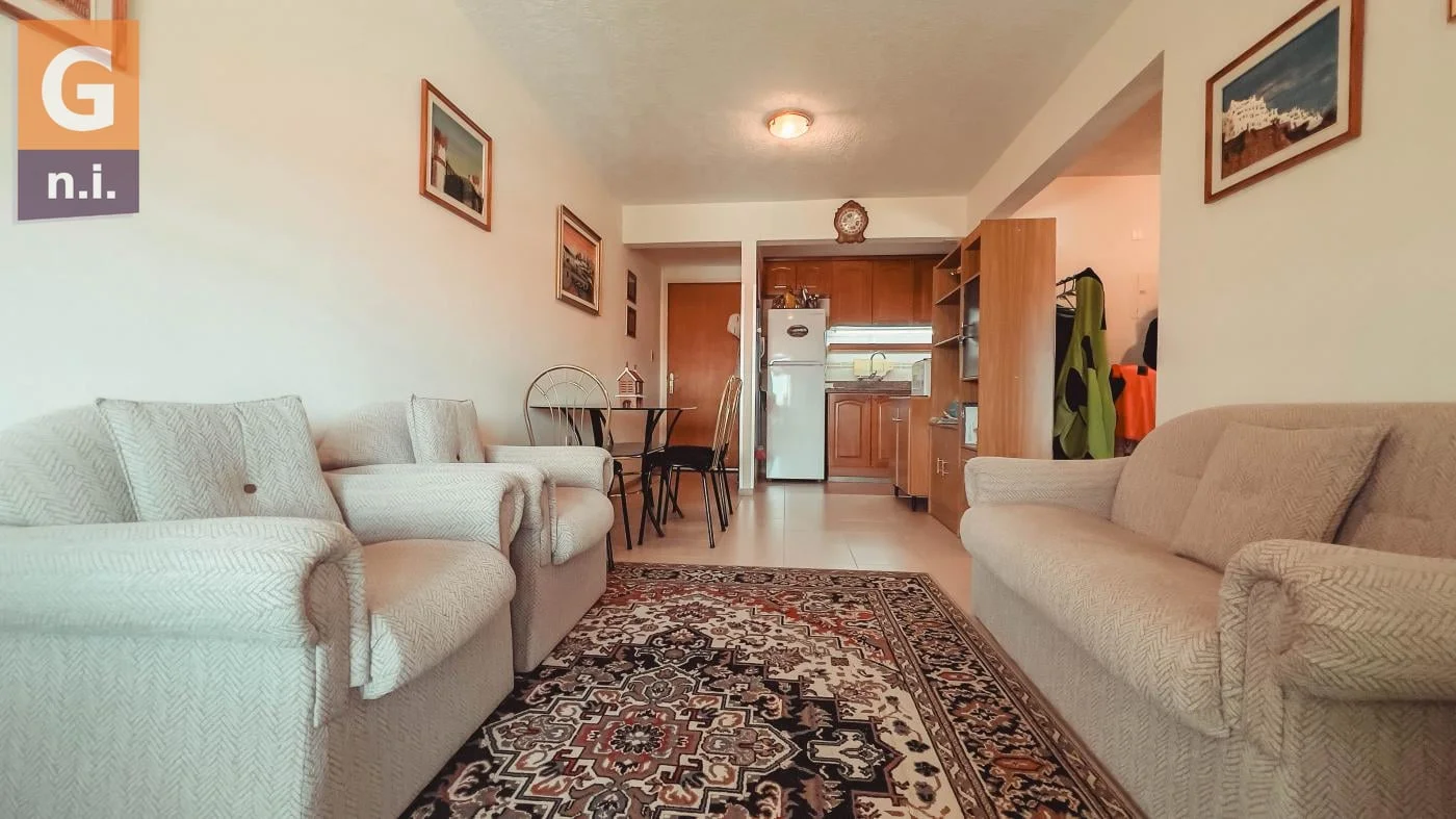Coqueto apartamento en edificio Rodamar II a una cuadra del mar y con vistas hacia este. De construcción tradicional con techos de planchada, pisos de porcelanato, aberturas de aluminio y demás.