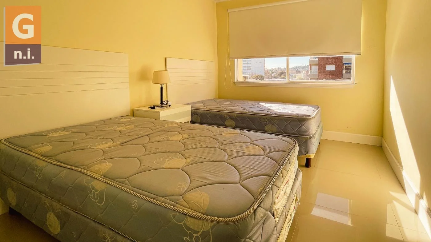 Alquilamos un cómodo apartamento en el edificio Puertos del Sol, ubicado en primera fila, a metros de la playa y rodeado de todos los servicios. La unidad se distribuye en un funcional living comedor, cocina definida, baño completo, dos dormitorios y un agradable balcón.