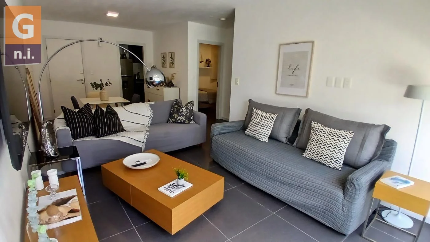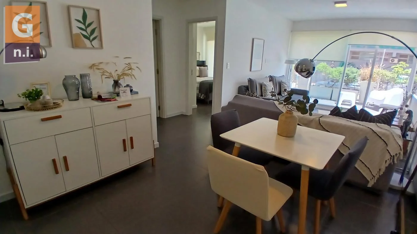 La unidad cuenta con living, comedor, cocina definida con área de lavadero, dos dormitorios, un baño, amplia terraza balcón y garaje exclusivo de la unidad.