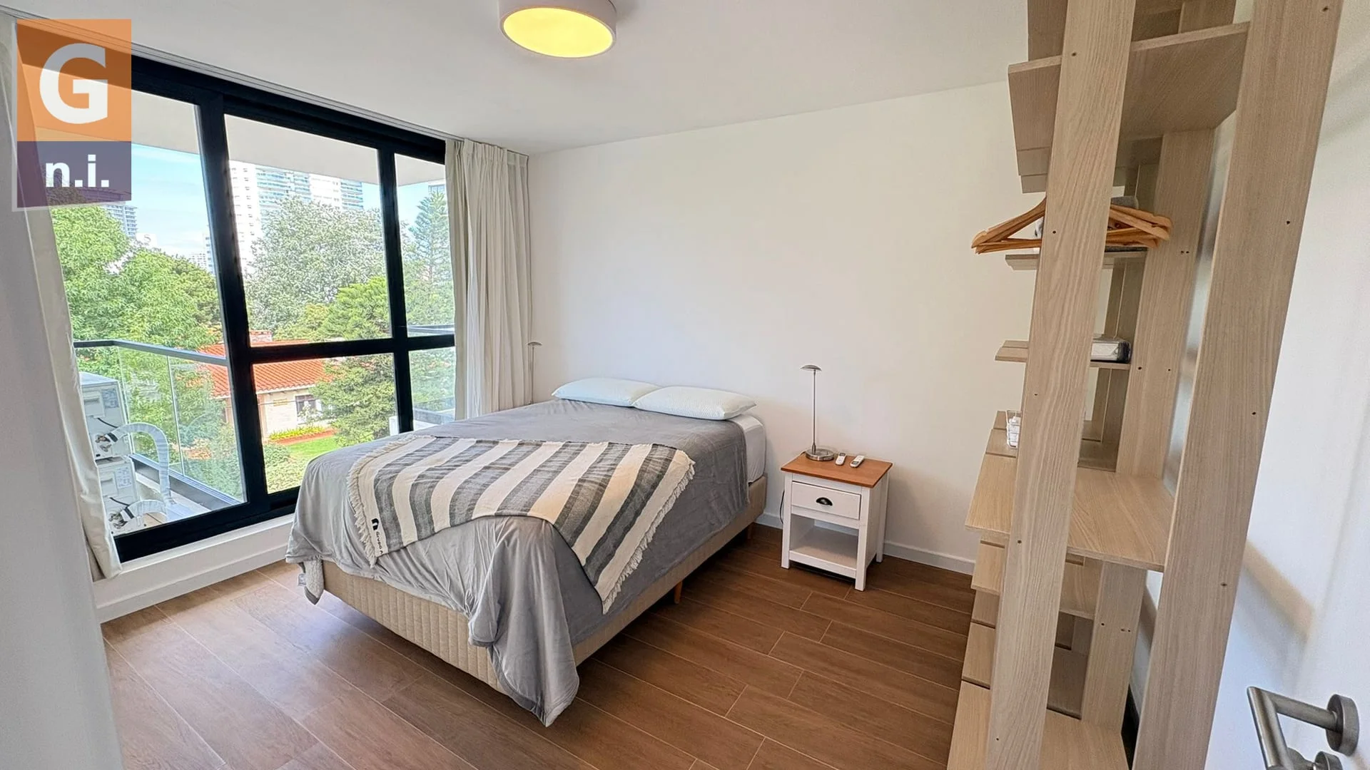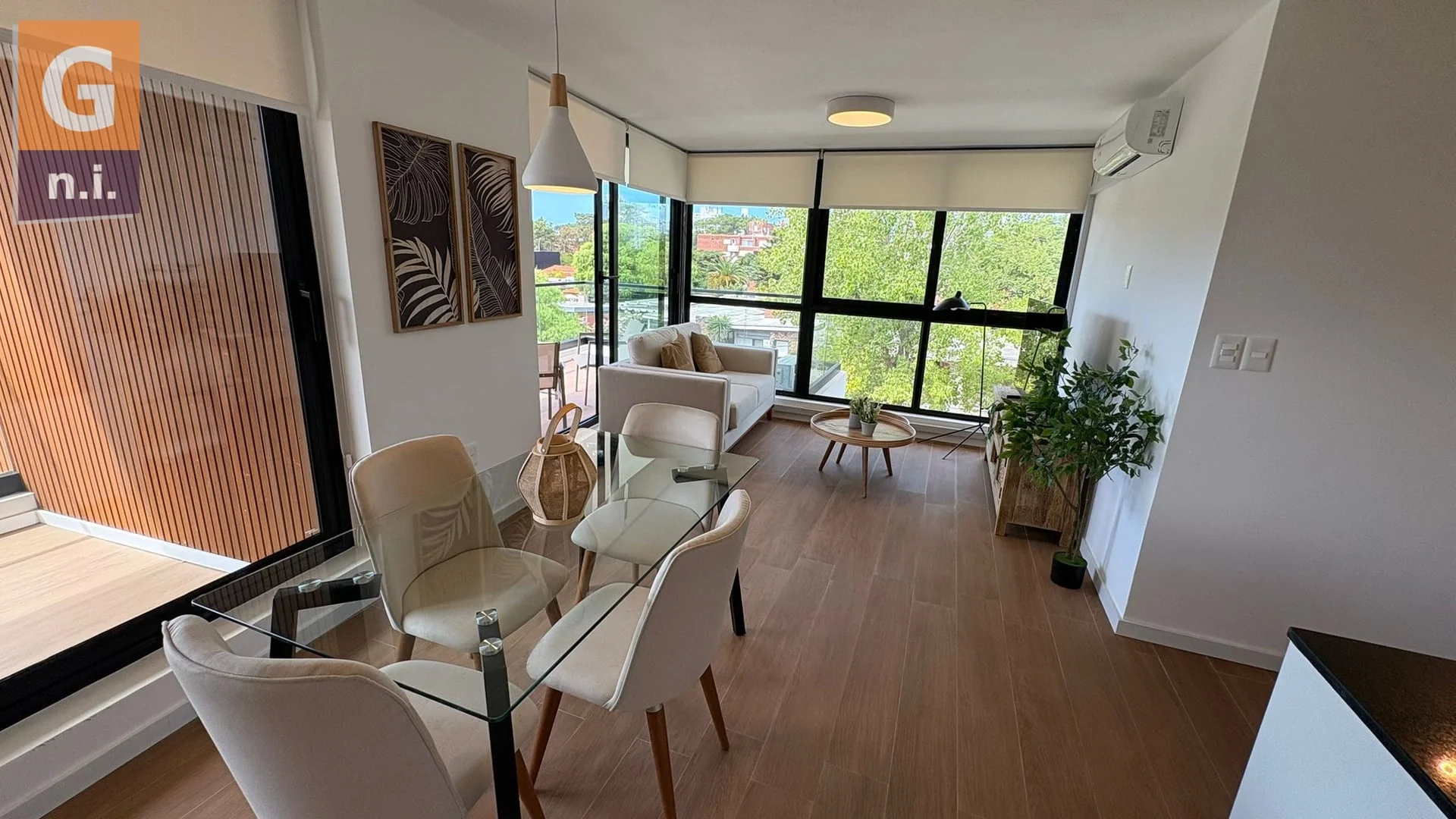 La misma cuenta con amplio living comedor, cocina integrada, dos dormitorios, dos baños (uno en suite), 3 terrazas una de ellas esquinera con parrillero propio y garaje exclusivo de la unidad.