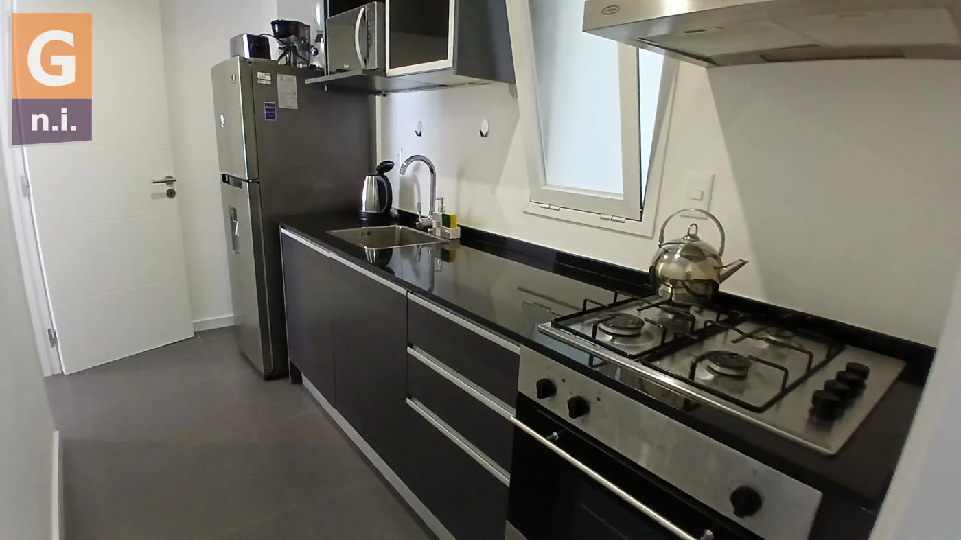 La unidad cuenta con living, comedor, cocina definida con área de lavadero, dos dormitorios, un baño, amplia terraza balcón y garaje exclusivo de la unidad.