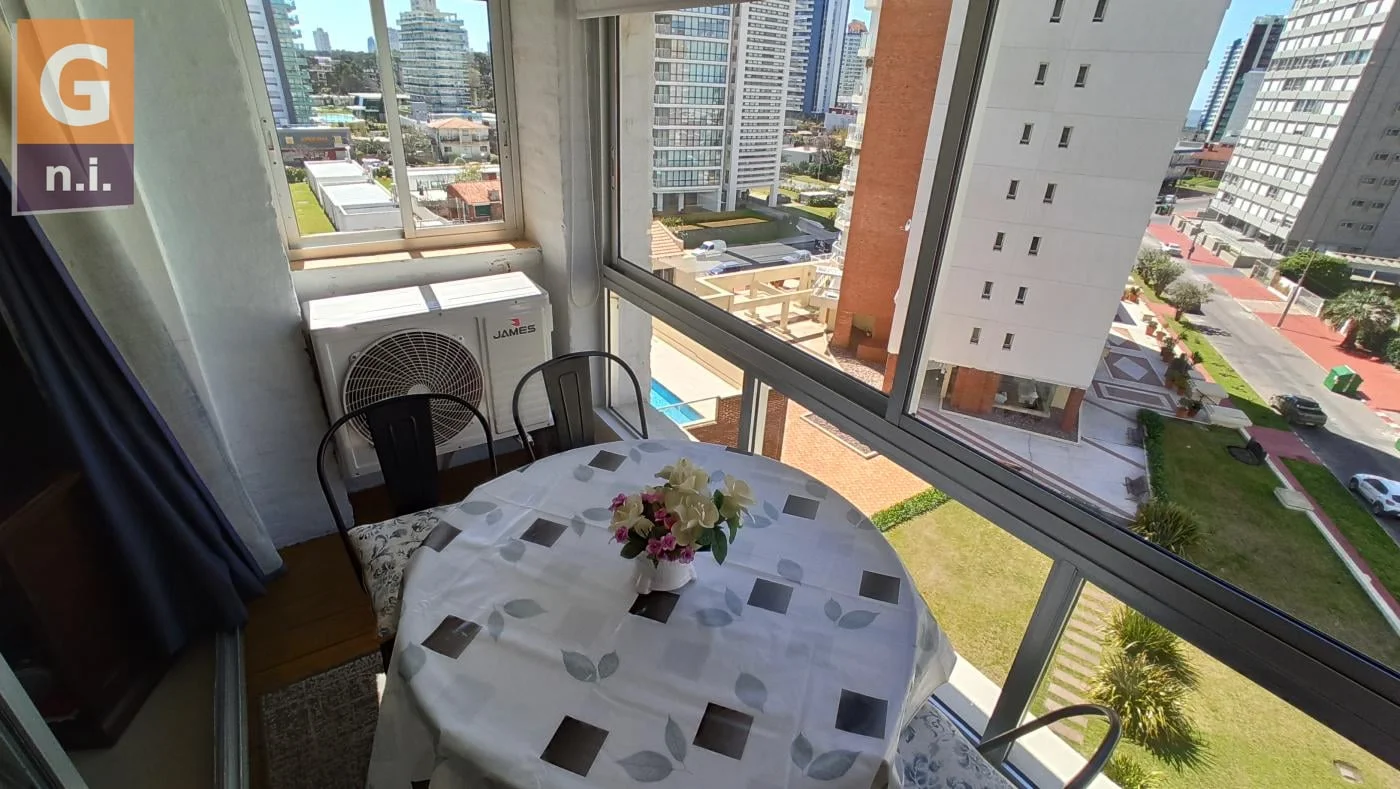 Apartamento de un dormitorio en alquiler temporal en Punta del Este zona Península. El mismo cuenta con un baño, cocina, living comedor y balcón cerrado. Hermoso apartamento , con excelente vista , a un paso de la mansa , de la brava y de todos los servicios en la Península . Muy bien equipado ,con aire acondicionado , etc. El edificio cuenta con dos piscinas, una cerrada la cual es climatizada y otra abierta , sauna , jacuzzi , parrilla , cancha de futbol 5 y paddle , gimnasio , servicio de mucama , TV cable , gym y wifi.