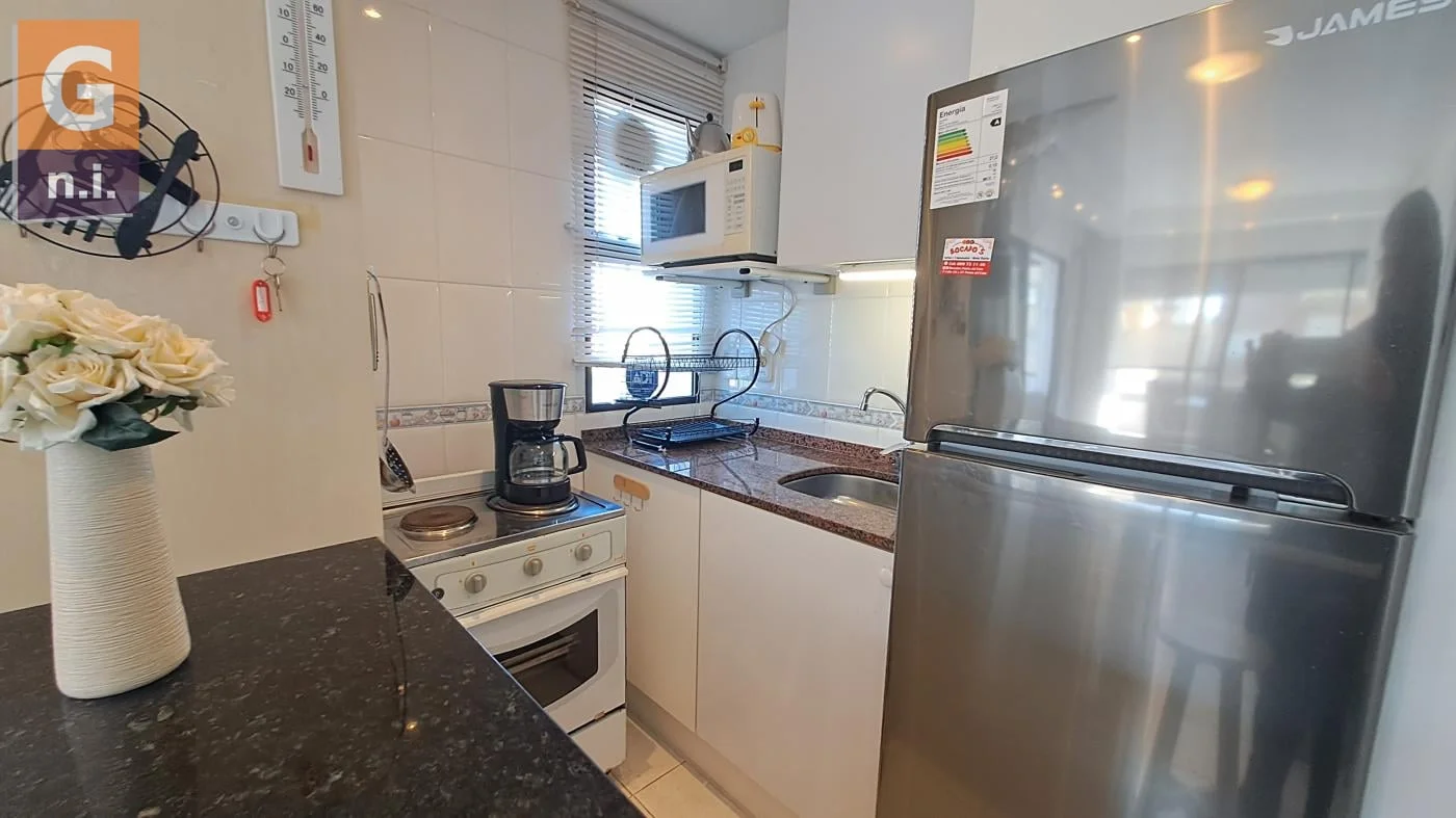 El apartamento cuenta con un espacioso y luminoso living comedor, la cocina se encuentra integrada en el espacio y está completamente equipada.
