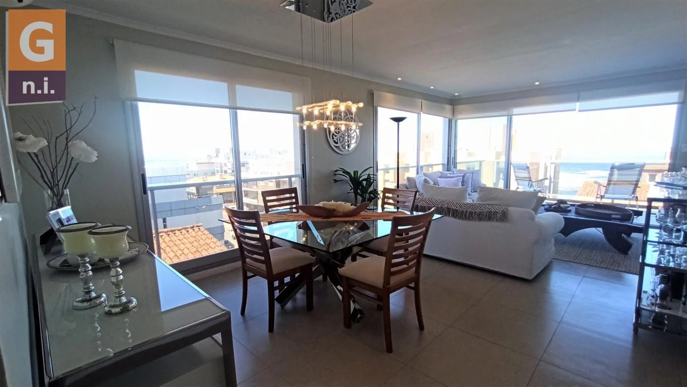 La unidad cuenta con un gran living comedor con vista al mar, Isla de Lobos y La Barra. Además dispone de 3 dormitorios, 3 baños (1 de ellos en suite), espaciosa terraza al frente, terraza balcón al fondo, parrillero propio en azotea, garage en subsuelo.