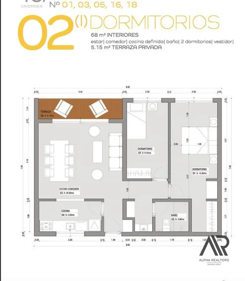 Este apartamento de 2 dormitorios, con una superficie total de 68 m², se presenta como una opción ideal tanto para vivir todo el año como para invertir en un mercado en constante crecimiento.