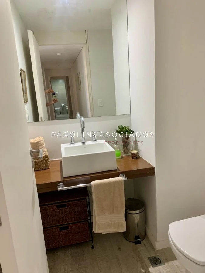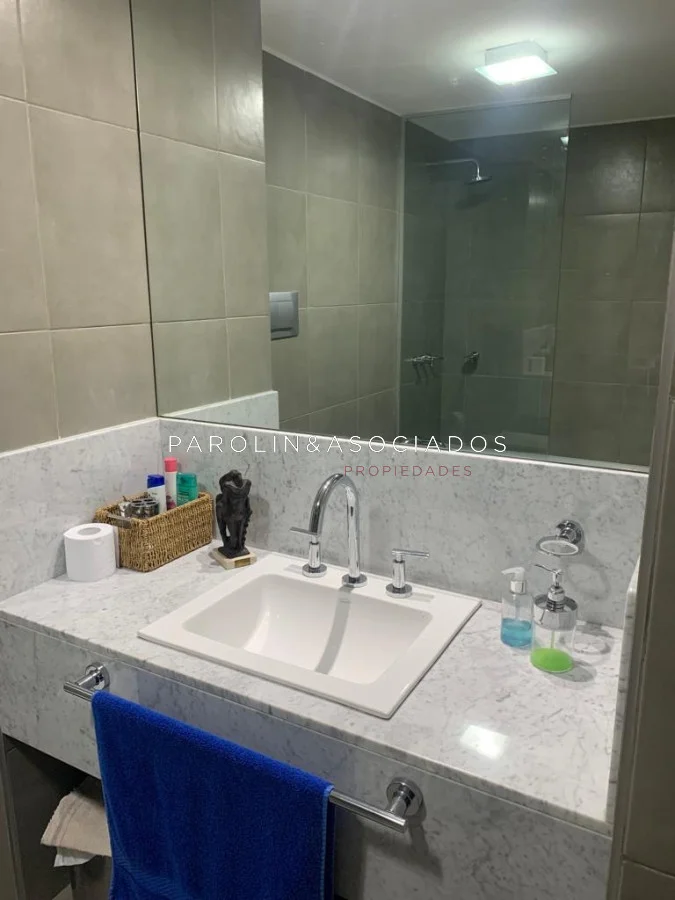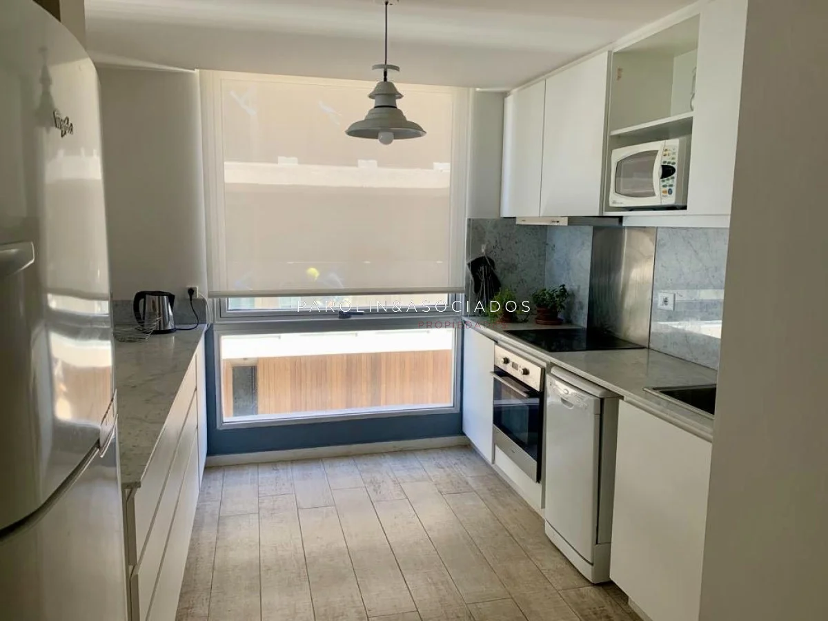 La cocina semi integrada combina funcionalidad y estilo, con excelentes mesadas, espacio de guardado y un diseño moderno que acompaña la estética general del apartamento.
