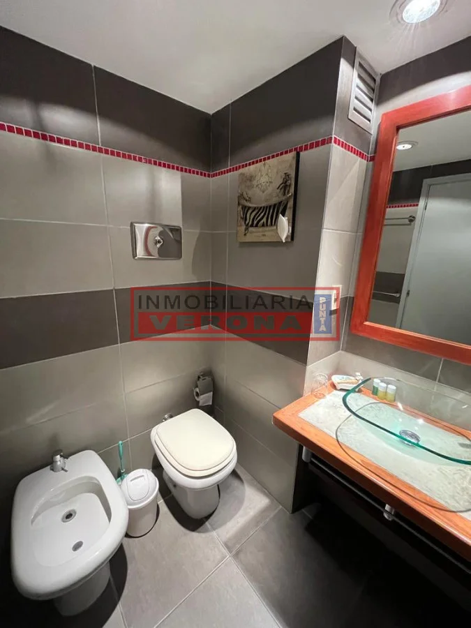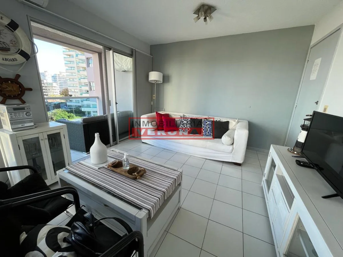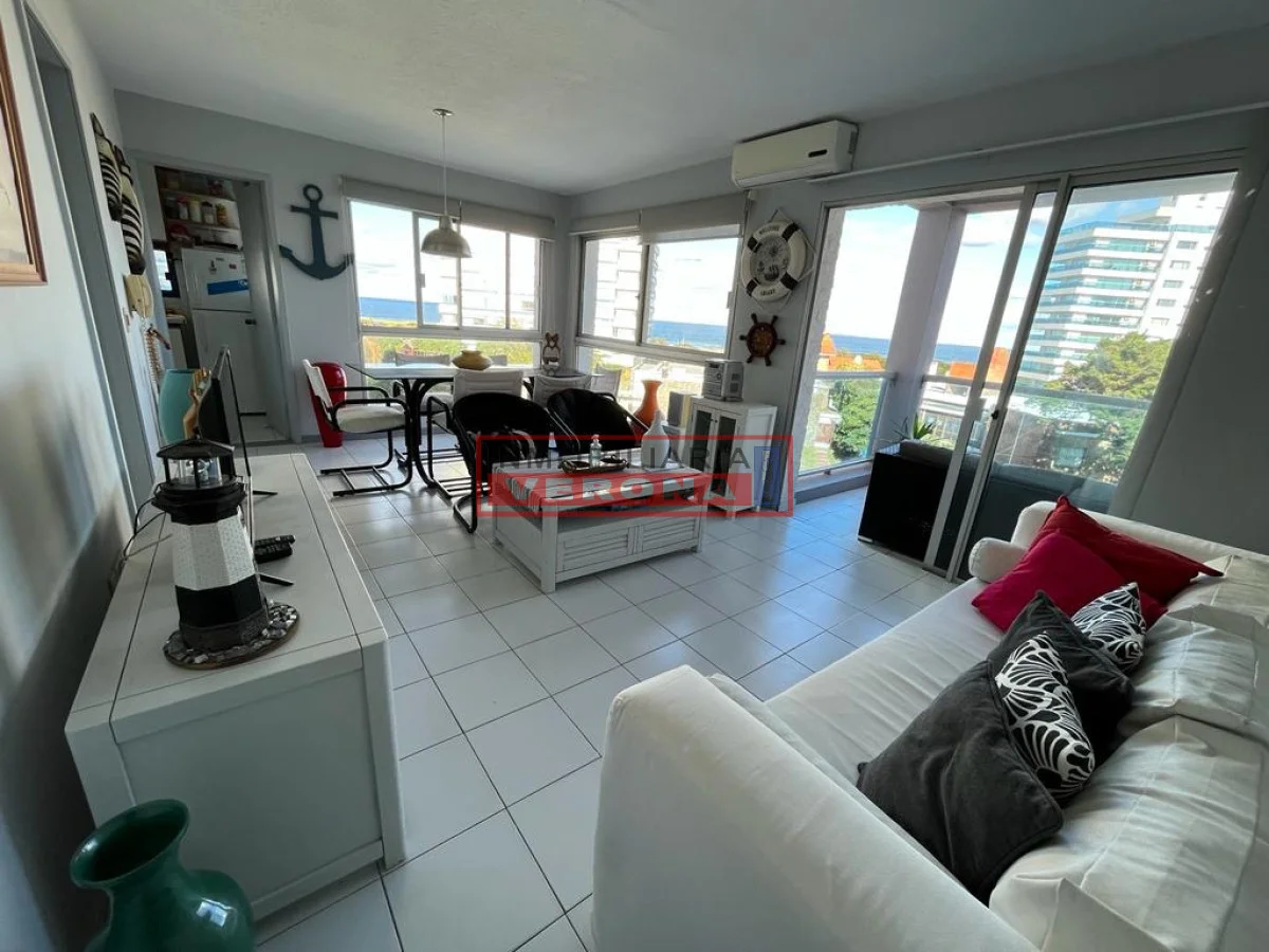 Ubicado a aproximadamente 100 metros del Mar. Terraza con vista a la playa. Apartamento con living-comedor, cocina definida, 2 dormitorios y 2 baños. Lavadero. Totalmente equipado. Con cochera. El edificio cuenta con piscina exterior, ascensor, servicio de portería, parrillero.