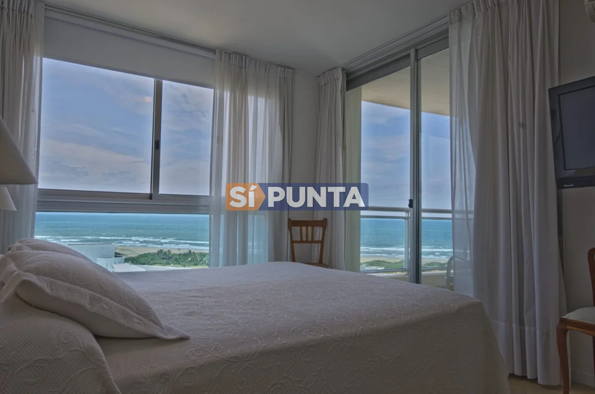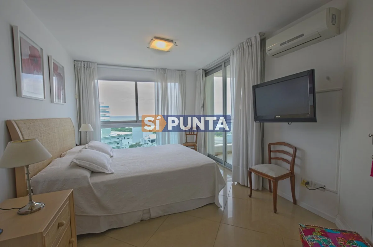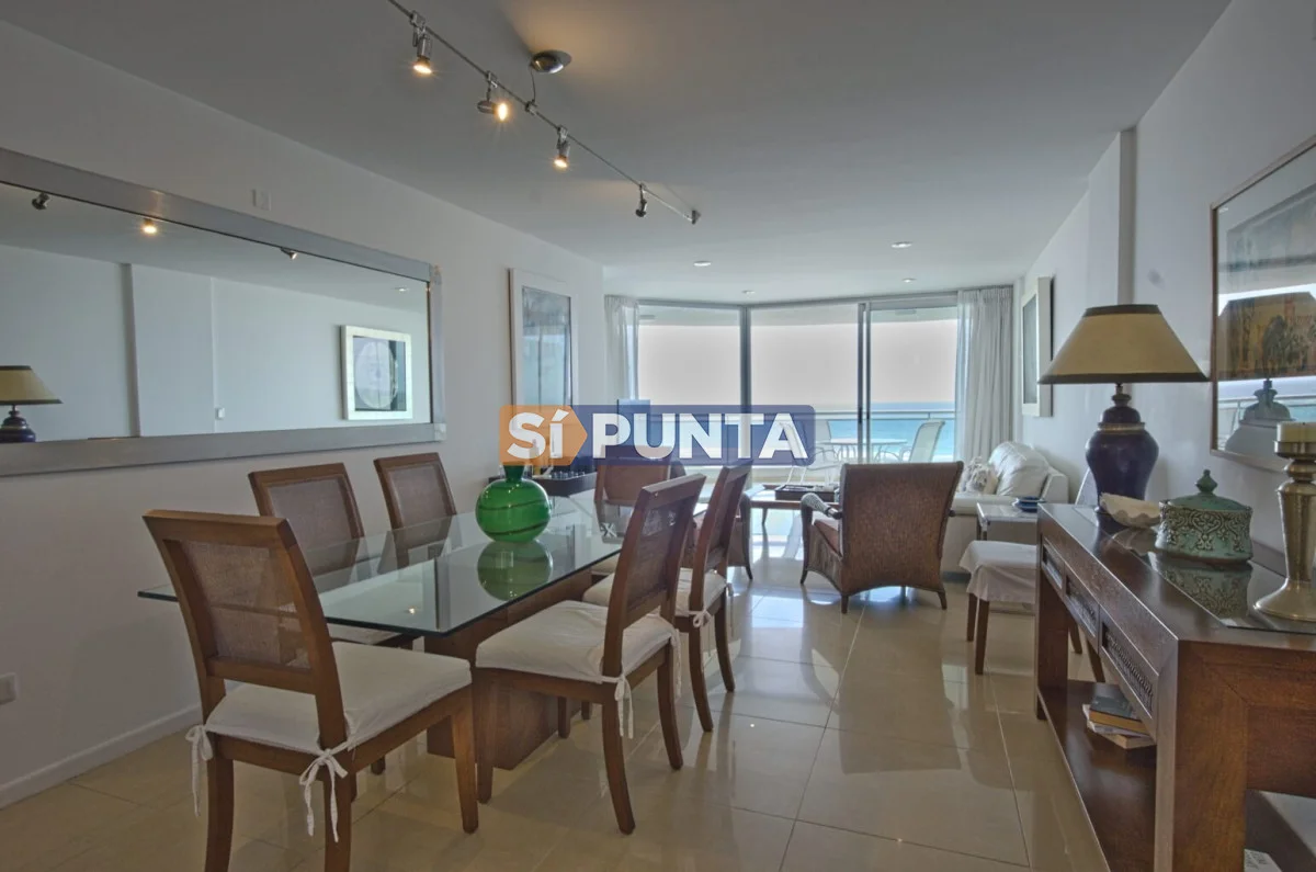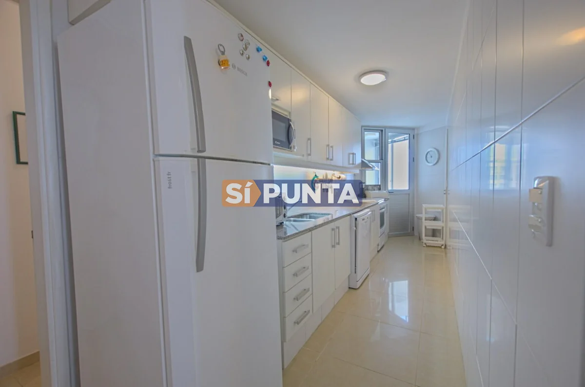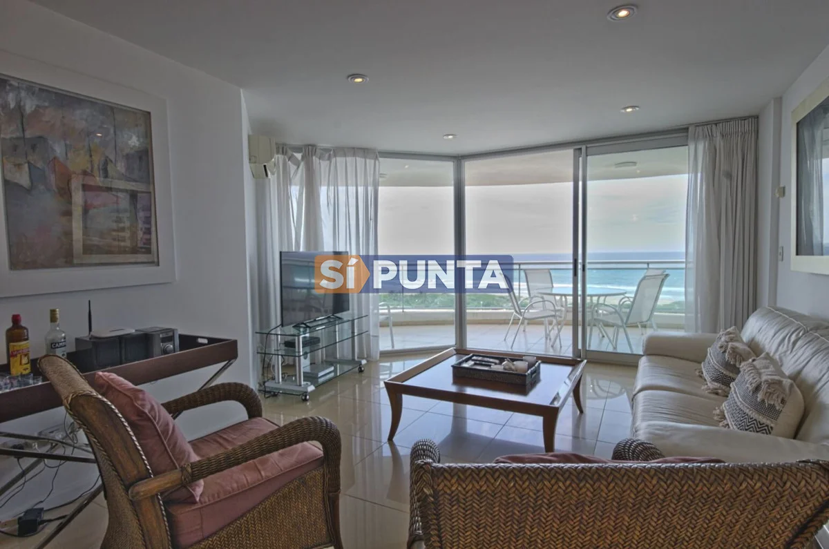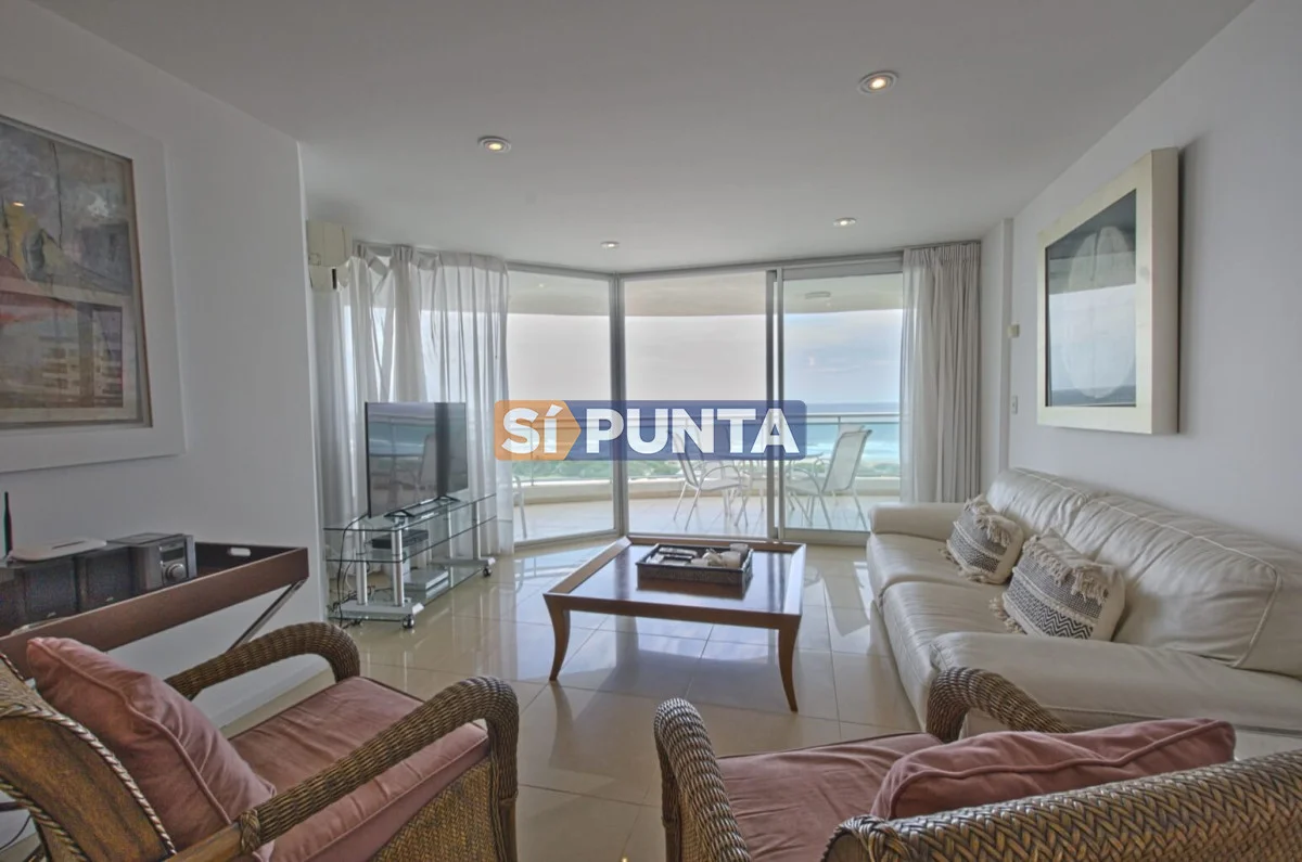 Apartamento en Playa Brava con vista al mar. Unidad de muy buenas dimensiones y equipado con muy buen gusto y calidad. A tan solo 50 metros de la rambla en edificio con servicios. Comodidades: - Living - comedor - Amplia terraza - Cocina totalmente equipada - Area de lavadero - 3 Dormitorios (dos en suite) - 3 Baños - Dependencia de servicio con baño - Aire acondicionado en living y dormitorio principal, el resto de los dormitorios cuentan con ventilador de techo. - Garaje. Referencia Interna : Tera-3324