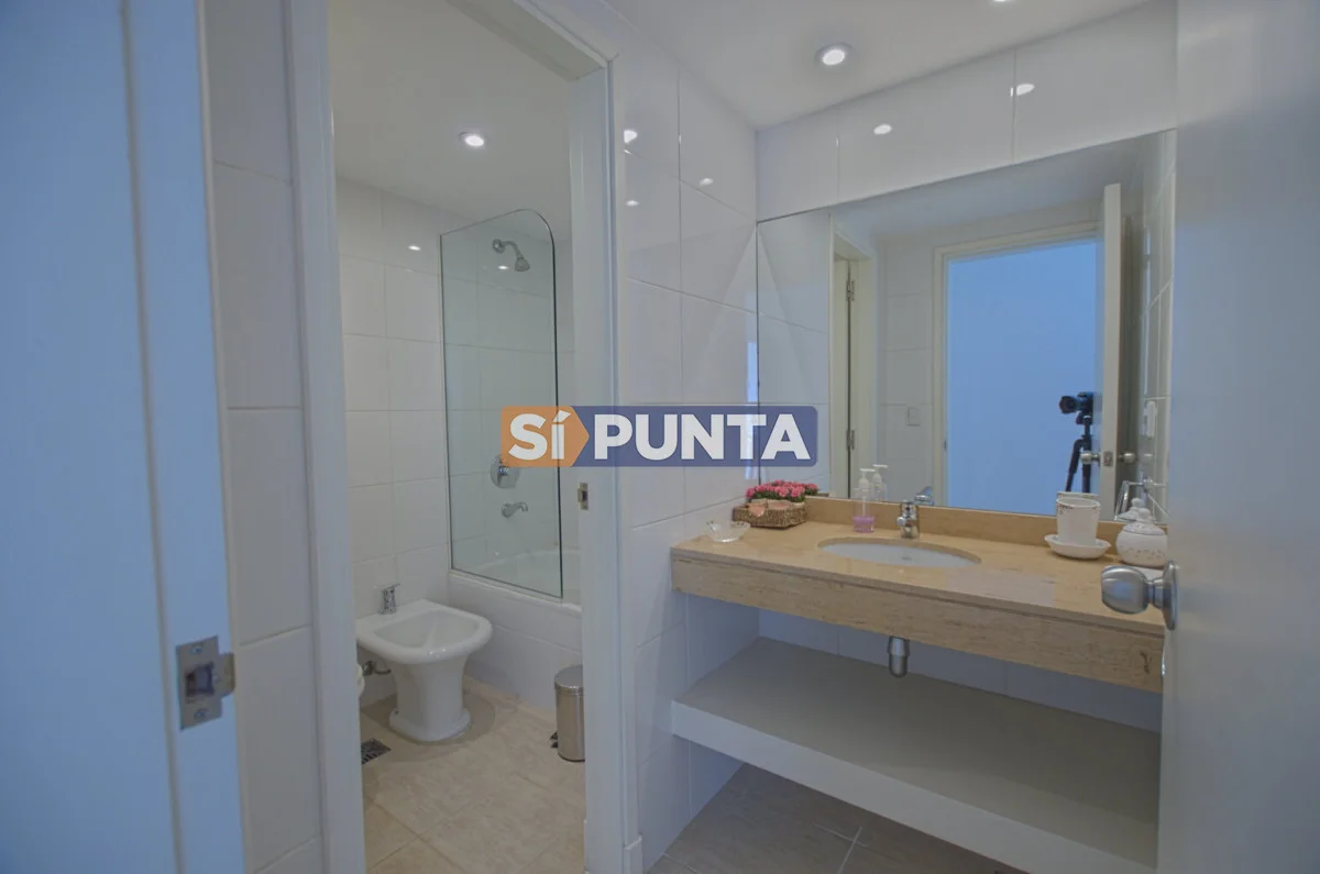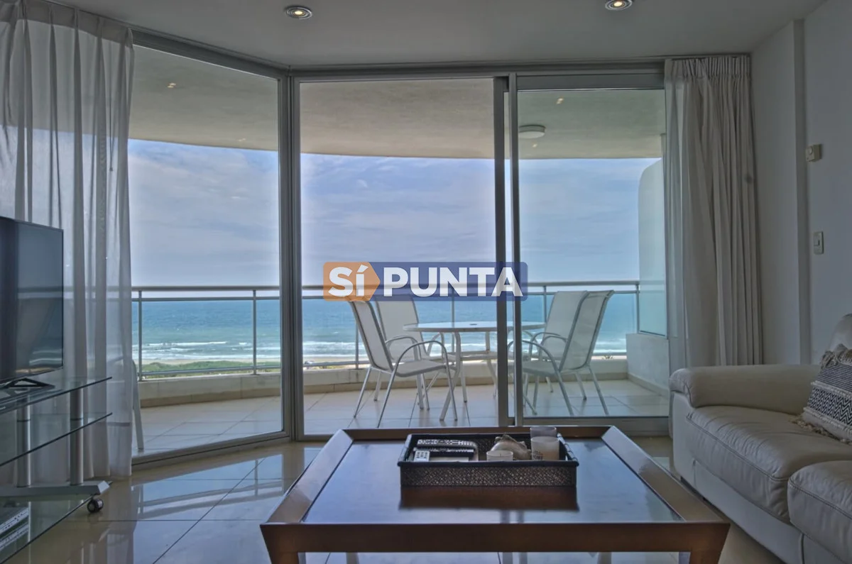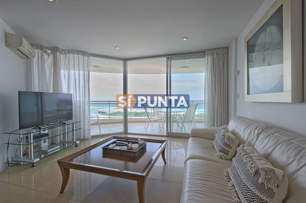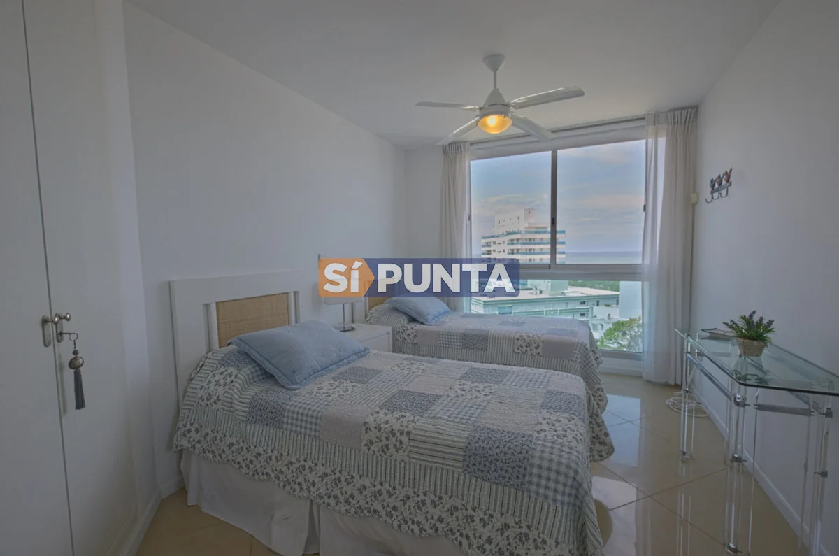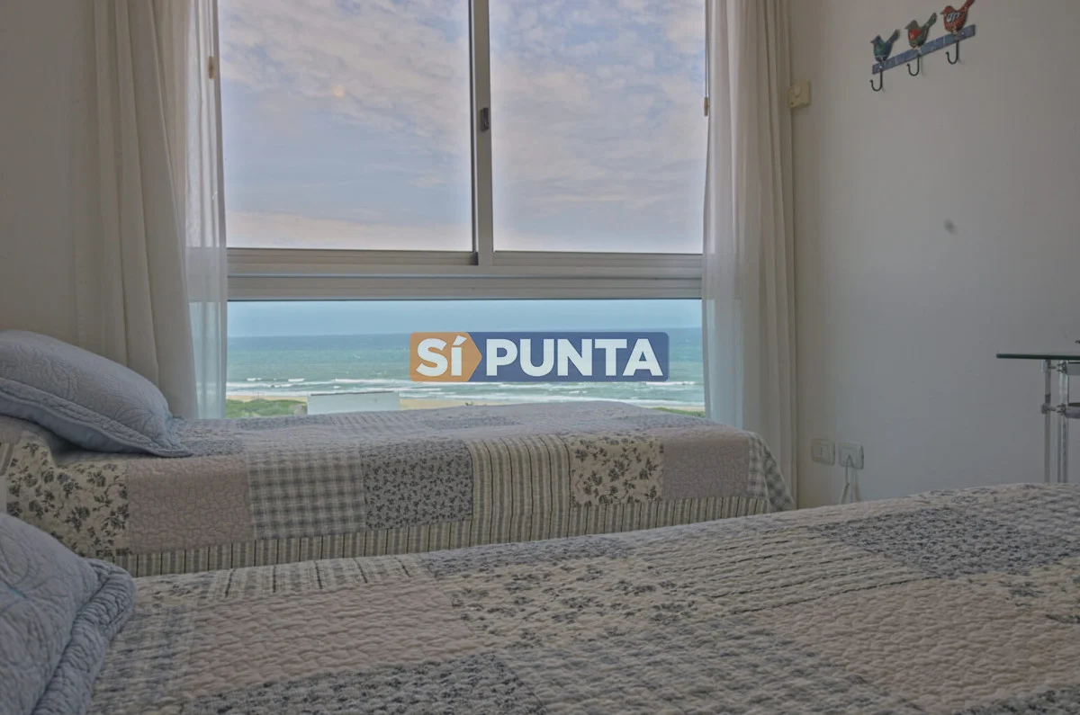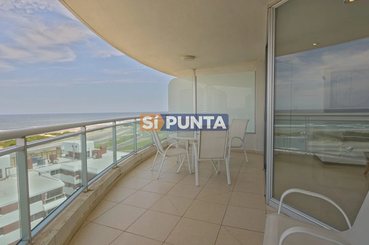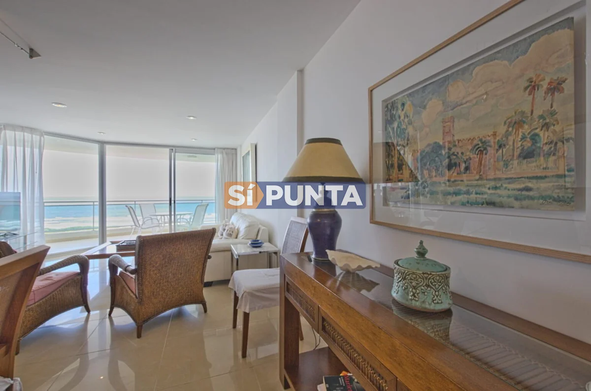 Apartamento en Playa Brava con vista al mar. Unidad de muy buenas dimensiones y equipado con muy buen gusto y calidad. A tan solo 50 metros de la rambla en edificio con servicios. Comodidades: - Living - comedor - Amplia terraza - Cocina totalmente equipada - Area de lavadero - 3 Dormitorios (dos en suite) - 3 Baños - Dependencia de servicio con baño - Aire acondicionado en living y dormitorio principal, el resto de los dormitorios cuentan con ventilador de techo. - Garaje. Referencia Interna : Tera-3324