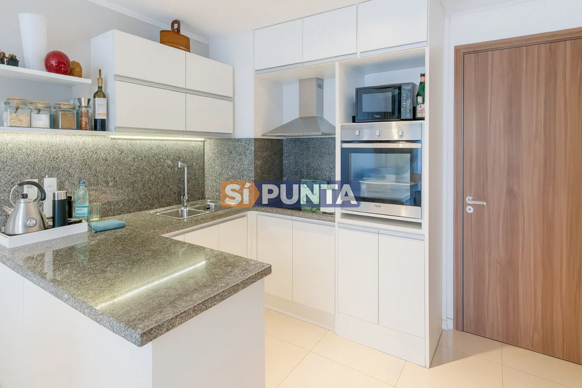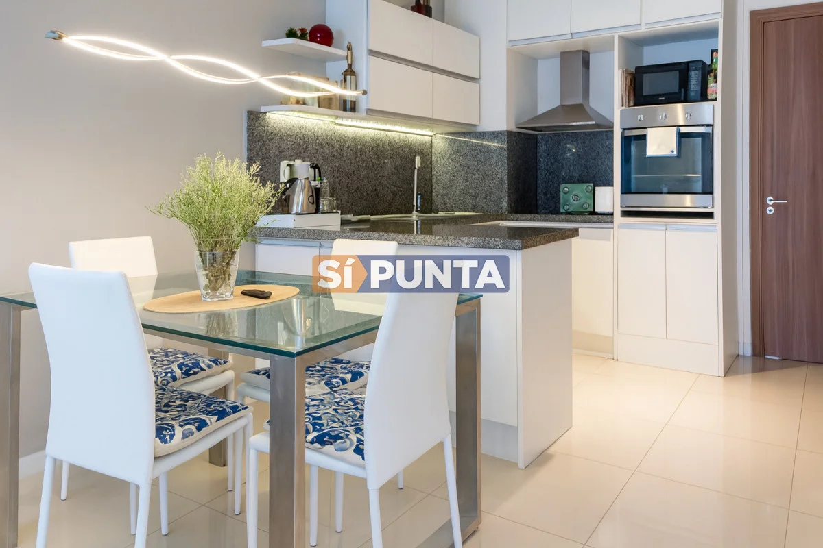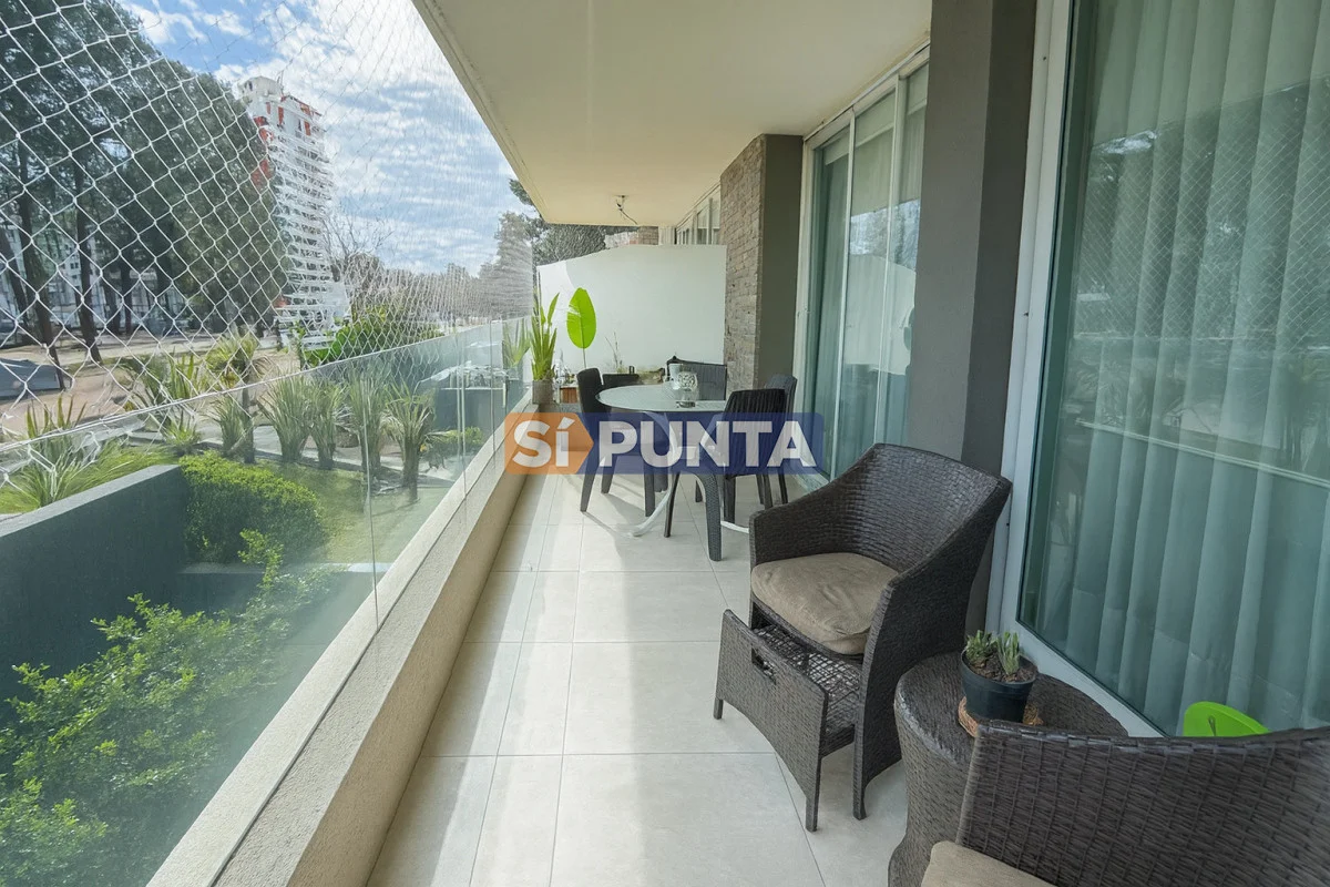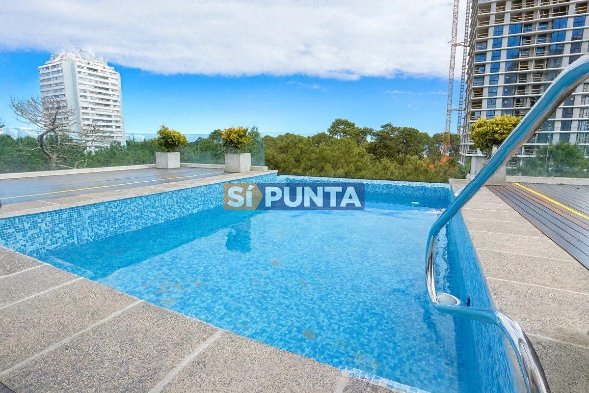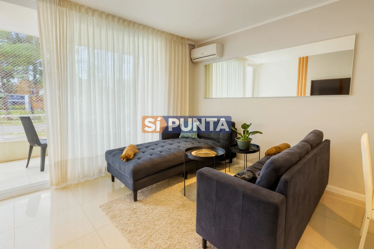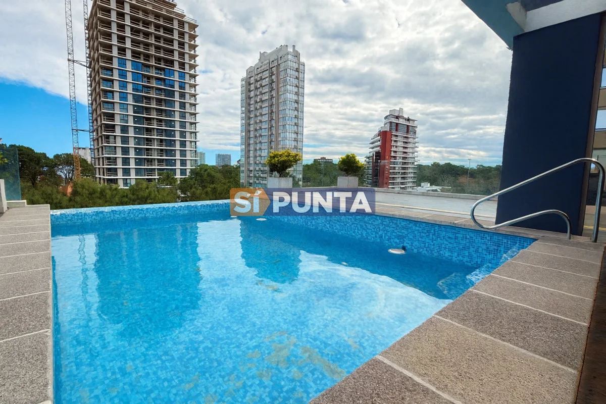 Cómodo apartamento en venta sobre Av. Roosevelt, la principal arteria de Punta del Este con excelente conectividad. La unidad posee amplio living comedor con cocina integrada con barra, un dormitorio, medio dormitorio definido y baño compartimentado y cochera techada bajo el edificio. Cerca al Cantegril Country Club a pasos de universidades. Edificio con servicios, piscina climatizada interior, gimnasio, piscina exterior en altura y sala de juegos, con expensas bajas.