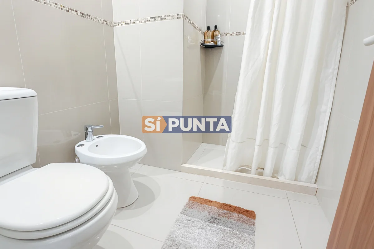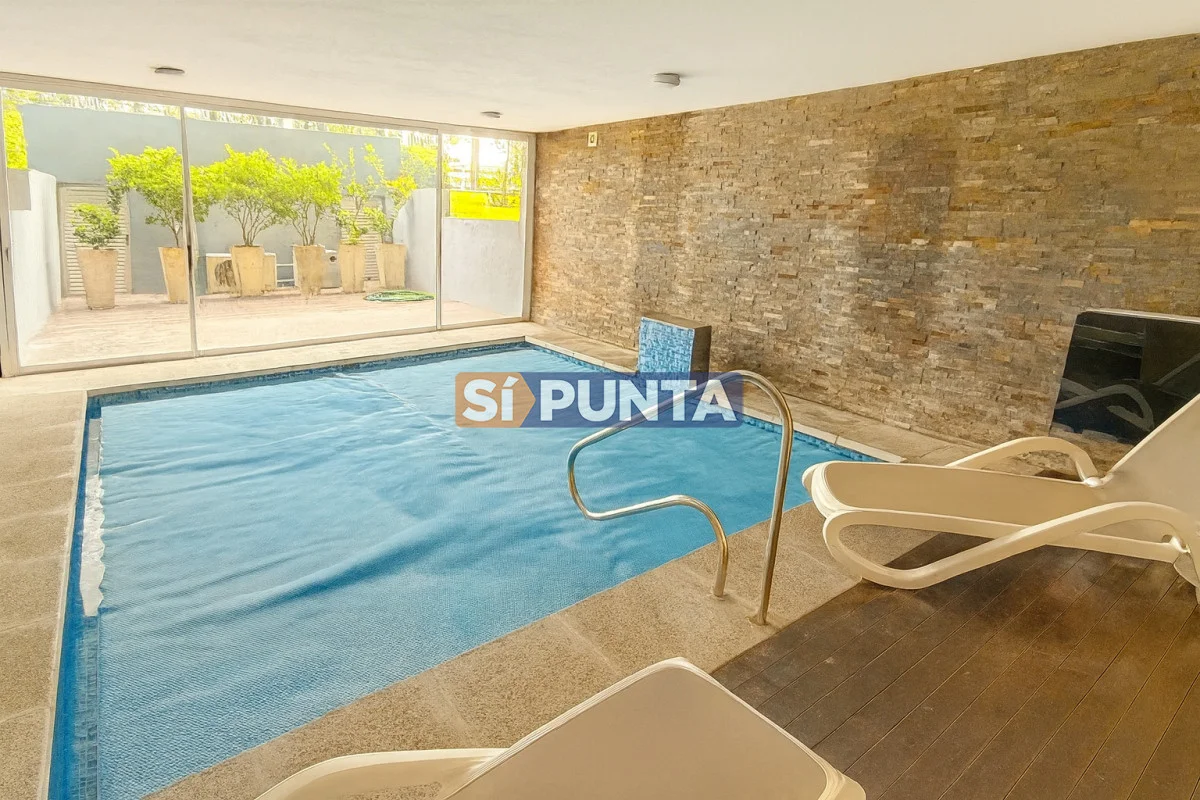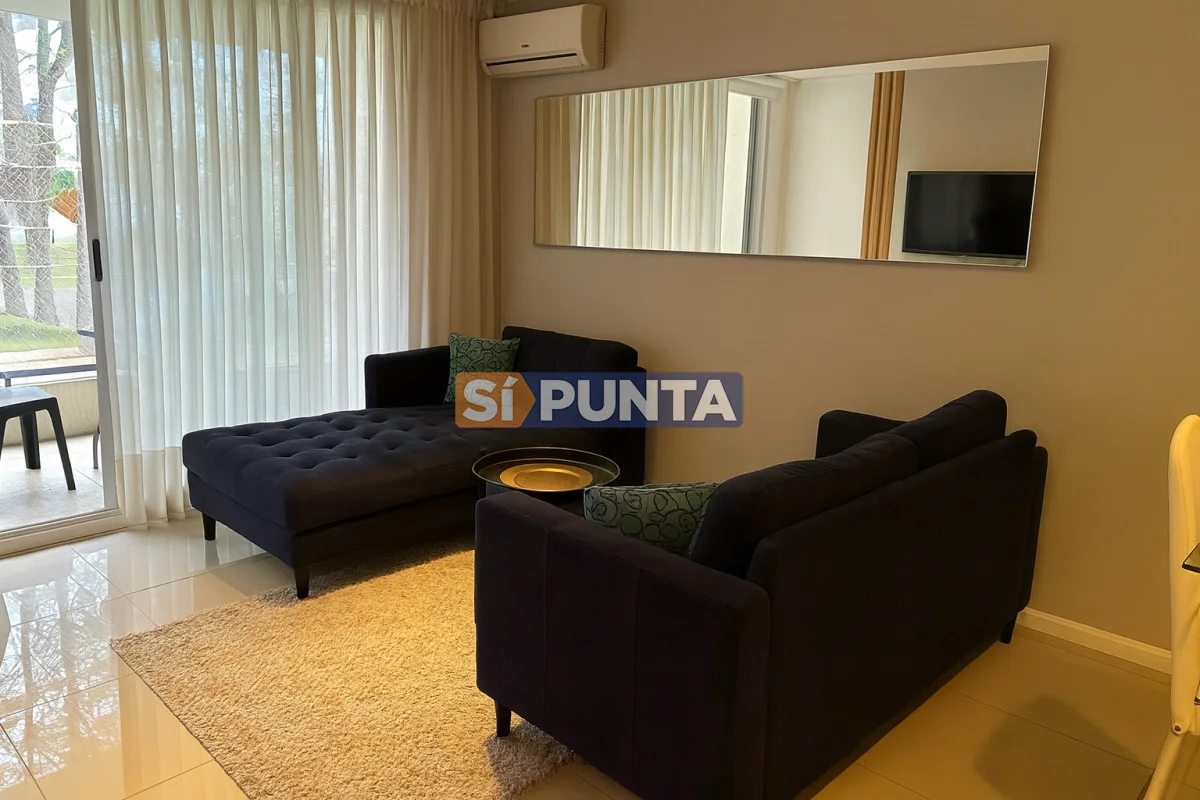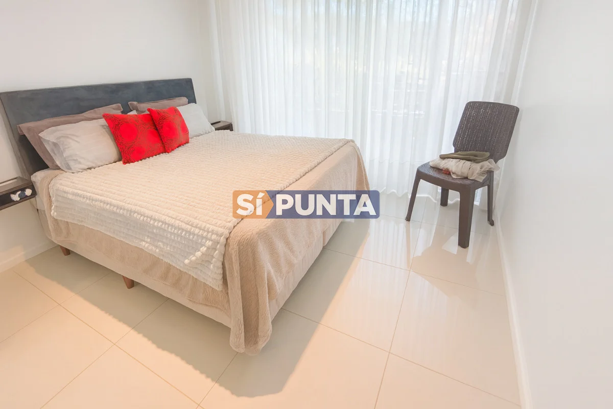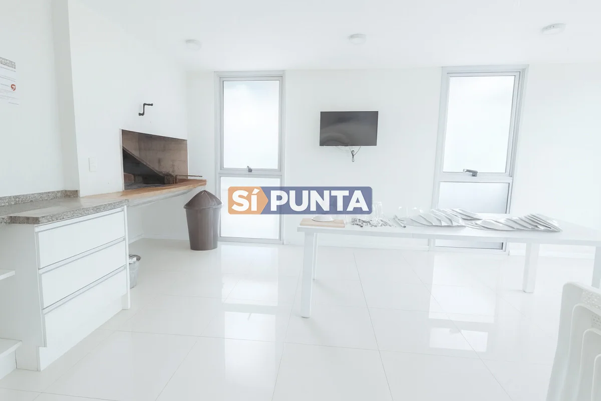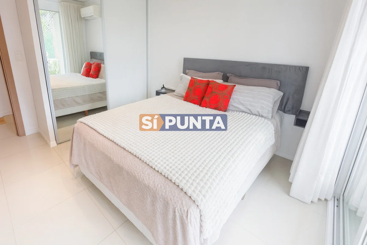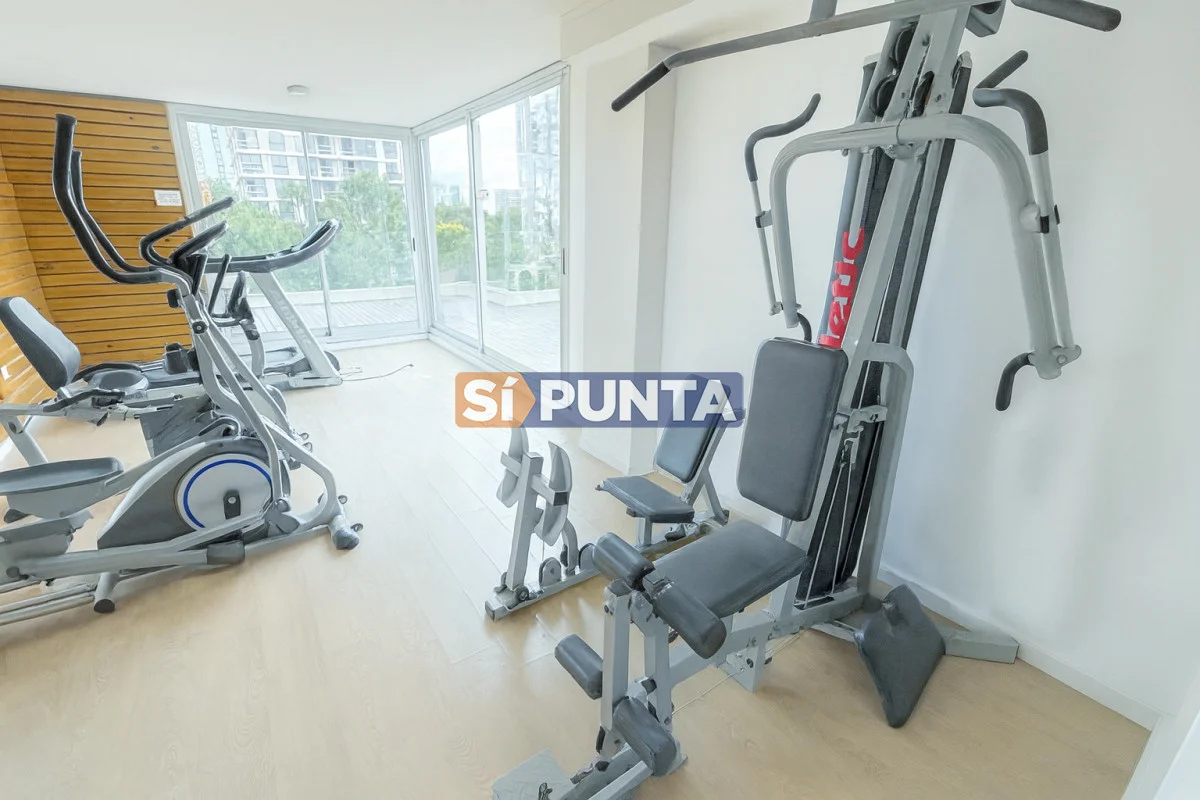 Cómodo apartamento en venta sobre Av. Roosevelt, la principal arteria de Punta del Este con excelente conectividad. La unidad posee amplio living comedor con cocina integrada con barra, un dormitorio, medio dormitorio definido y baño compartimentado y cochera techada bajo el edificio. Cerca al Cantegril Country Club a pasos de universidades. Edificio con servicios, piscina climatizada interior, gimnasio, piscina exterior en altura y sala de juegos, con expensas bajas.
