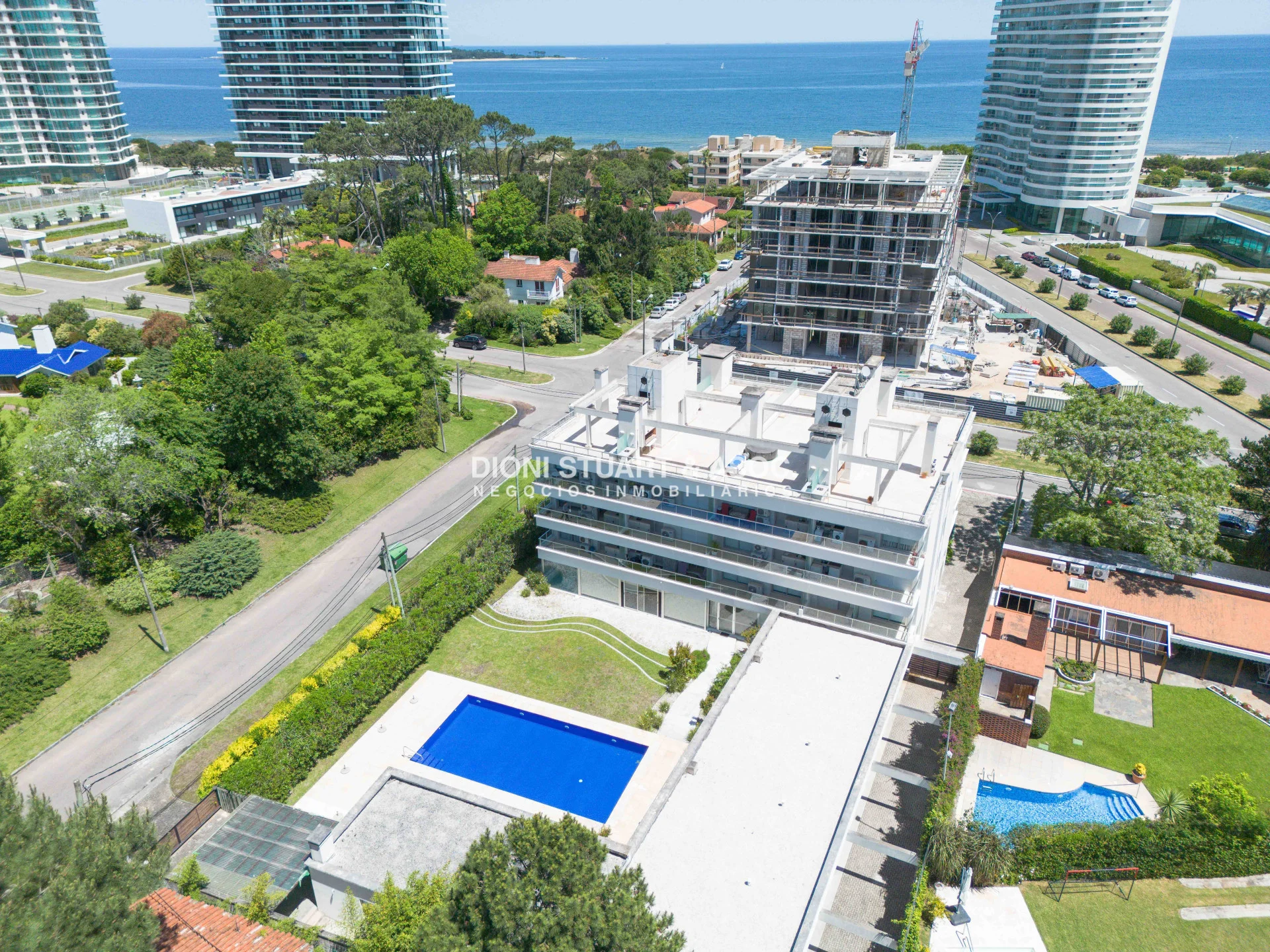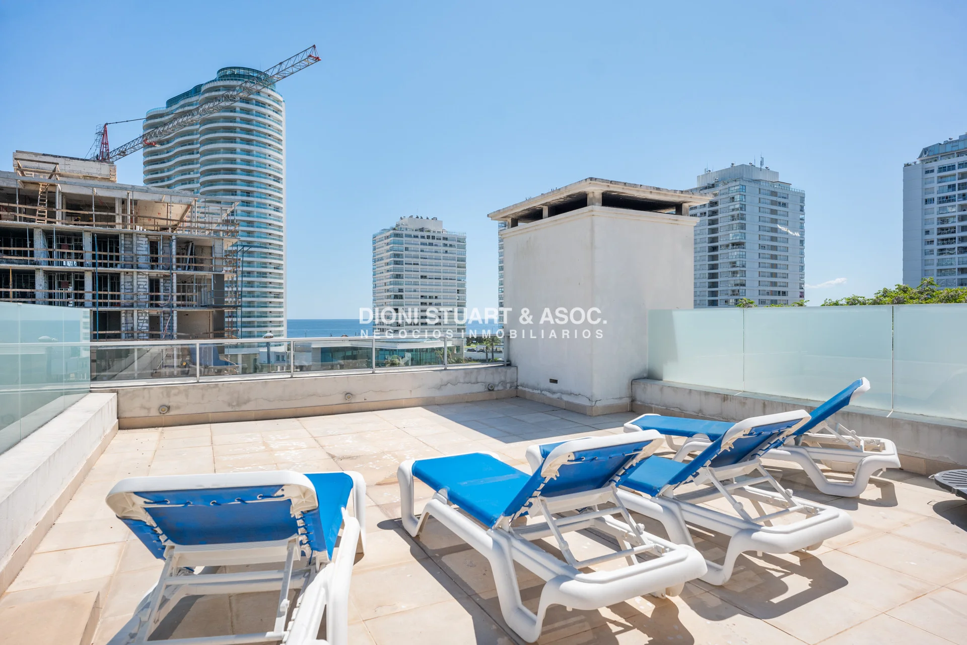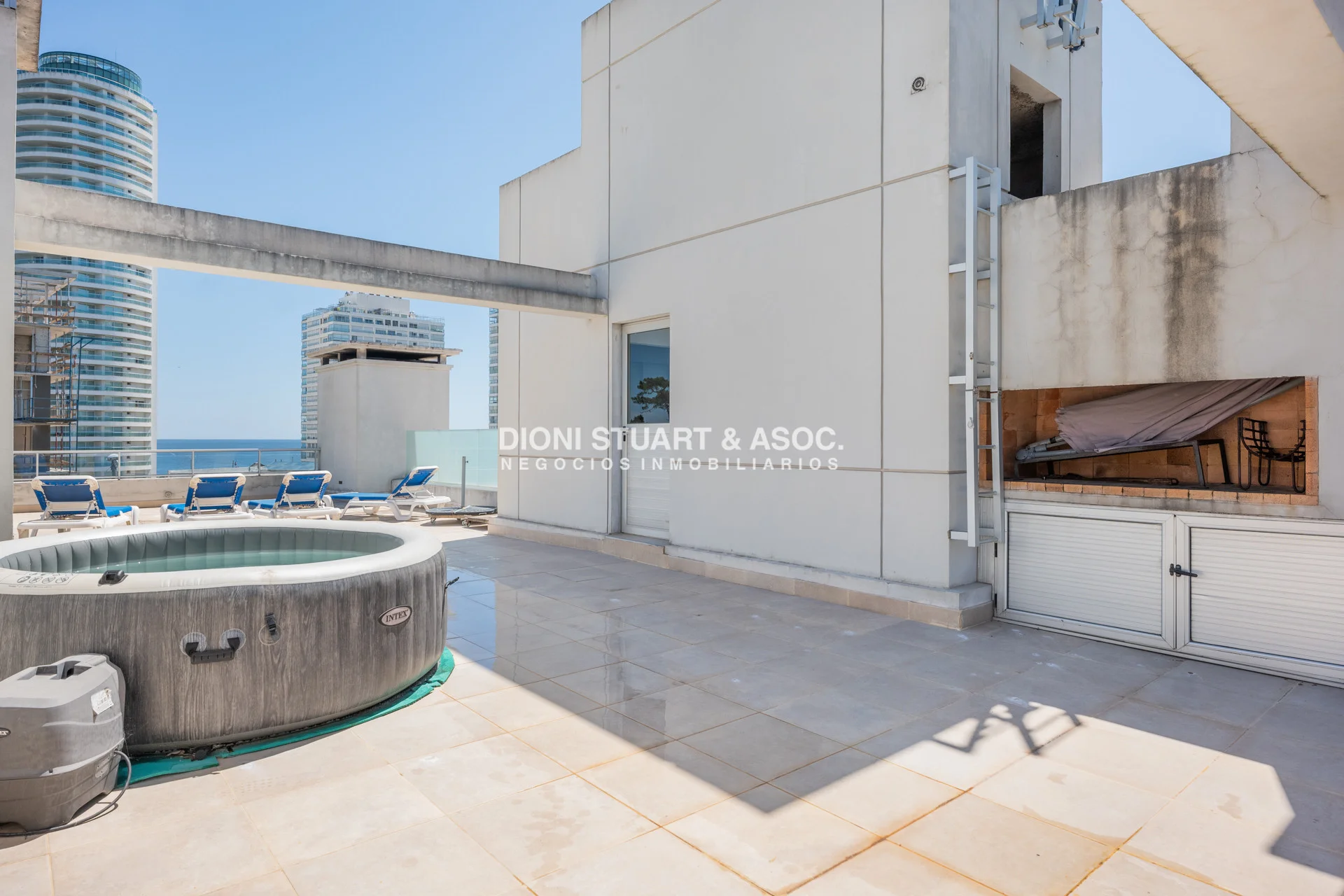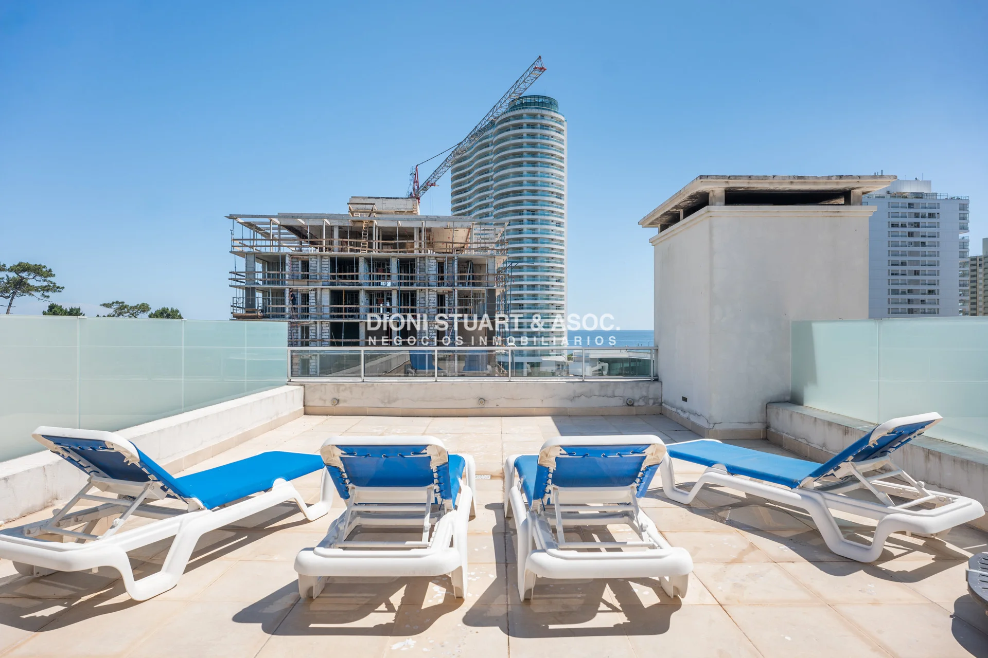 Espectacular Pent House con azotea de uso privado en el exclusivo edificio Monet en la zona de Playa Mansa. Unidad esquinera a Punta del Este con 79m2 internos y 207m2 totales dada sus amplias terrazas y su barbacoa en la azotea de uso exclusivo. Este moderno apartamento edificado en el año 2014 es de construcción tradicional y cuenta de dos dormitorios (uno en suite), toilette, cocina definida con lavadero y terraza al frente con parrillero. Tiene garage en subsuelo.