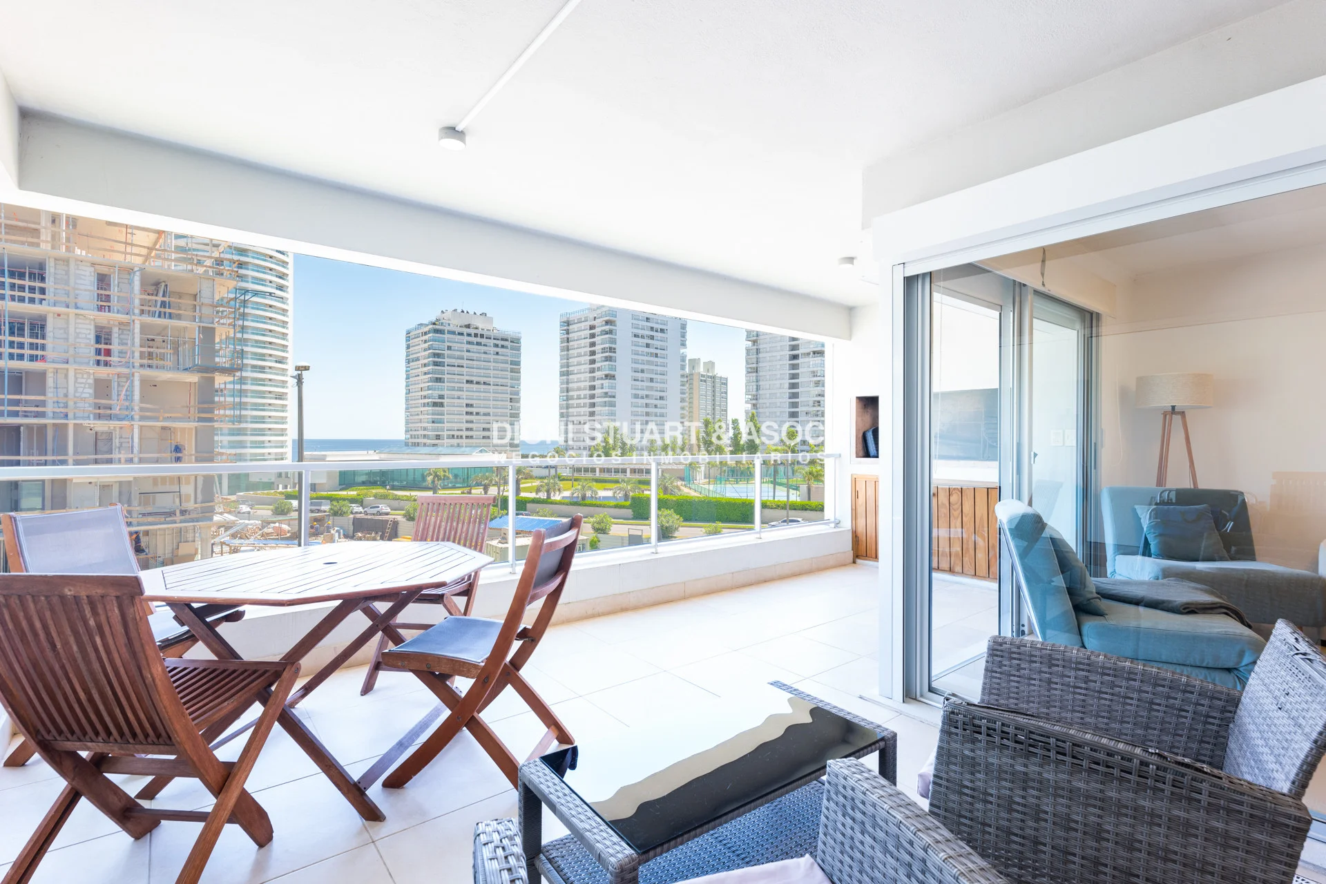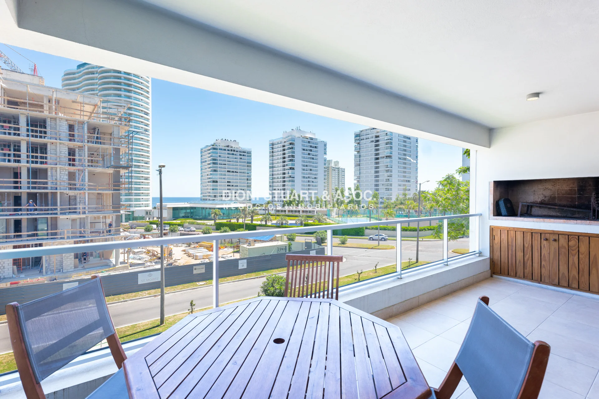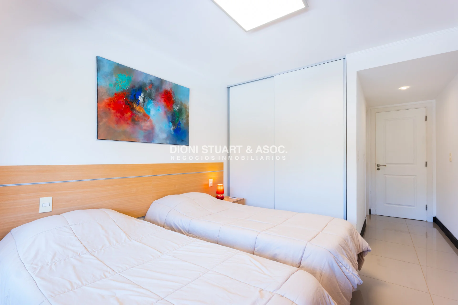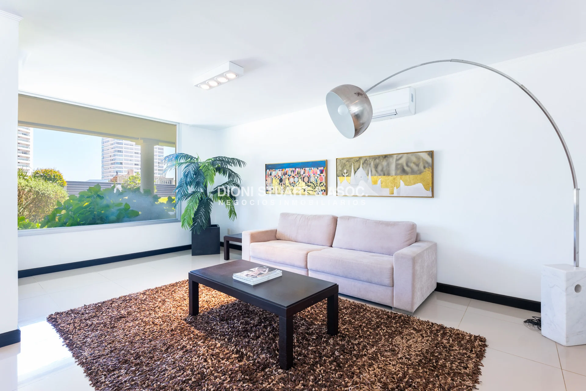 Espectacular Pent House con azotea de uso privado en el exclusivo edificio Monet en la zona de Playa Mansa. Unidad esquinera a Punta del Este con 79m2 internos y 207m2 totales dada sus amplias terrazas y su barbacoa en la azotea de uso exclusivo. Este moderno apartamento edificado en el año 2014 es de construcción tradicional y cuenta de dos dormitorios (uno en suite), toilette, cocina definida con lavadero y terraza al frente con parrillero. Tiene garage en subsuelo.