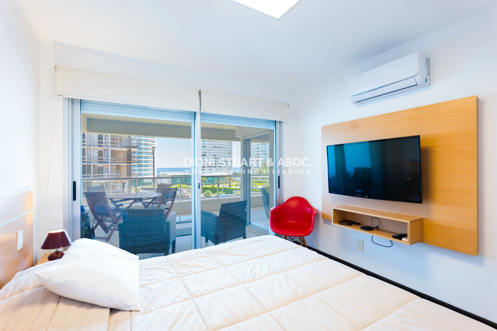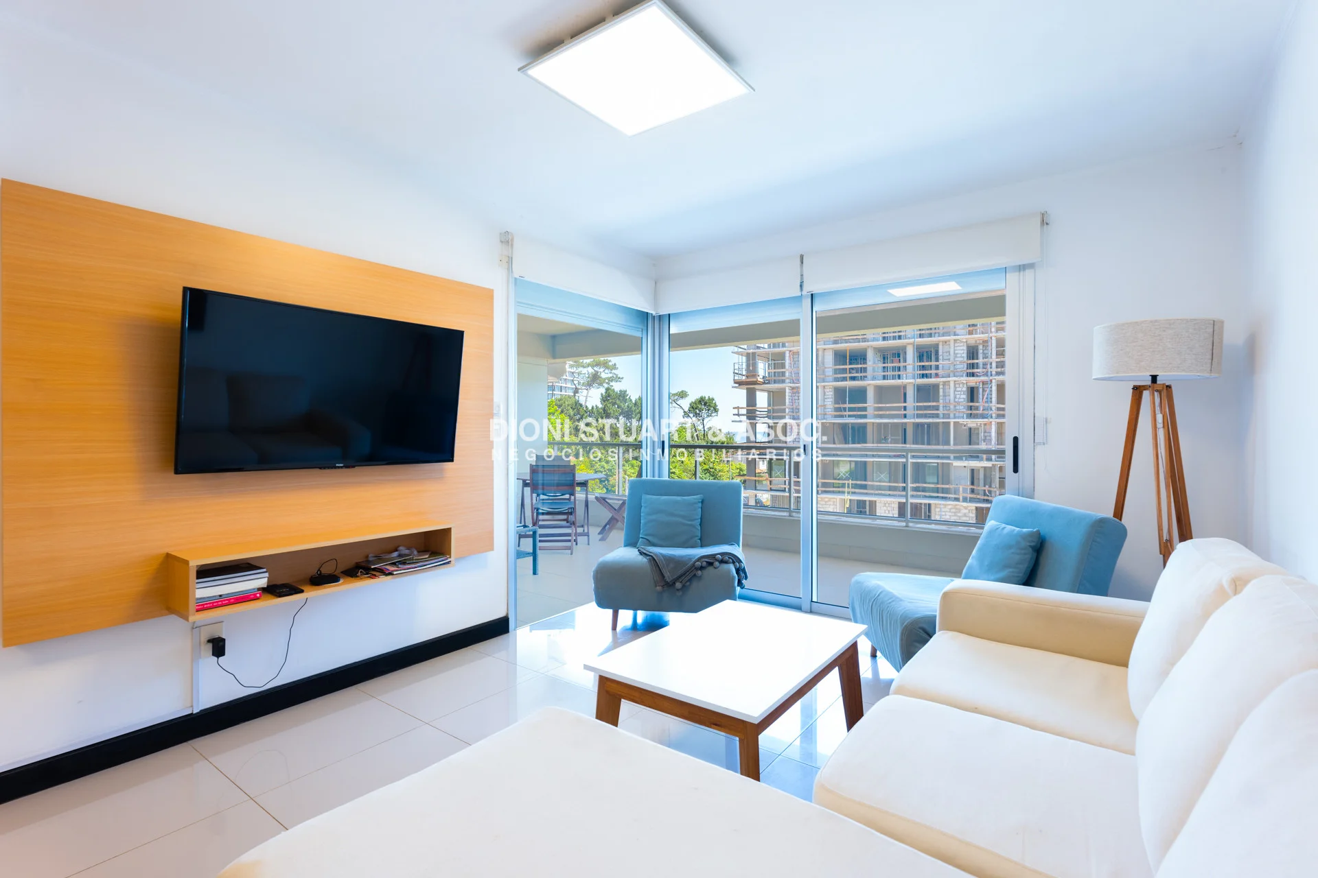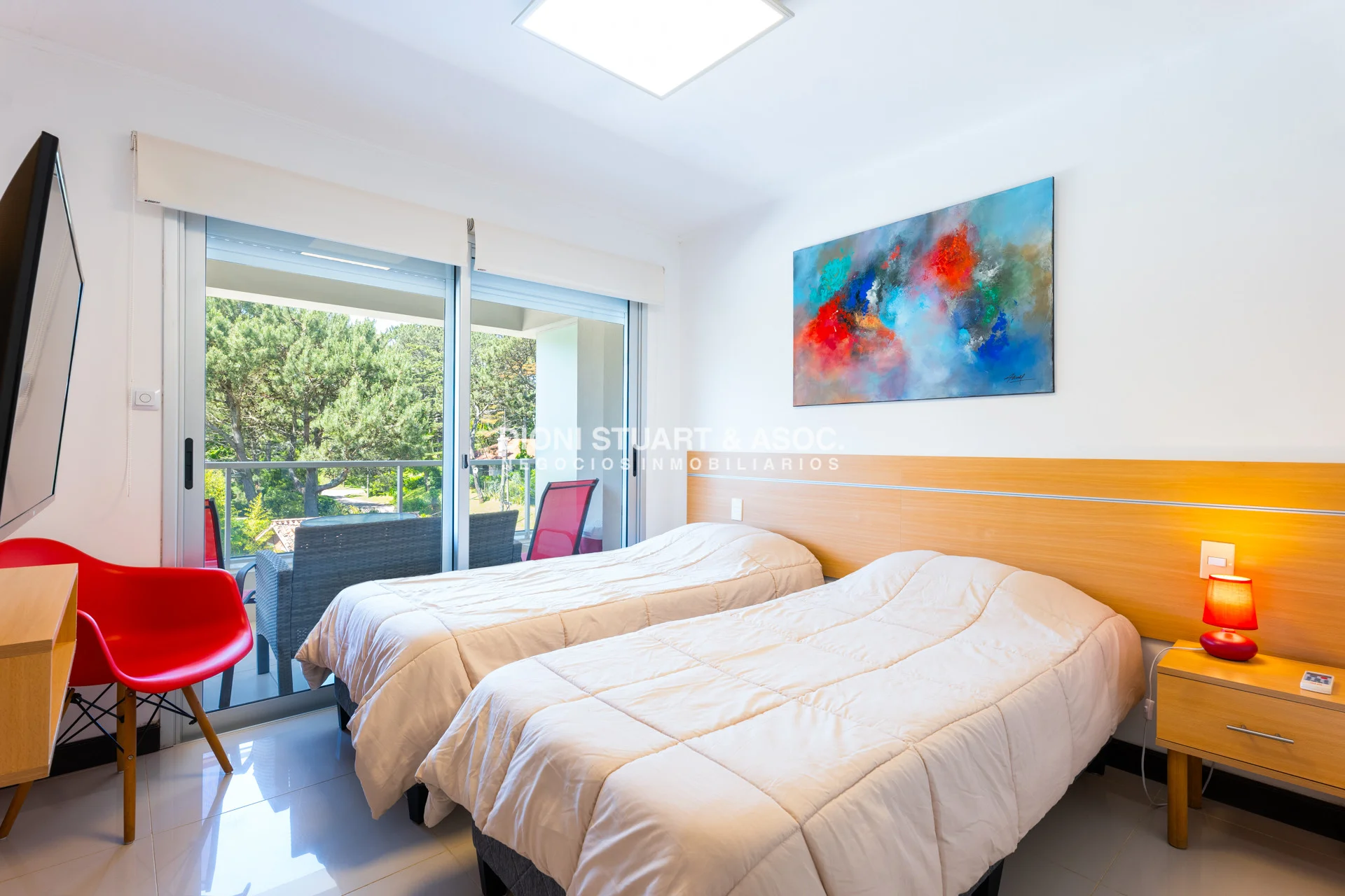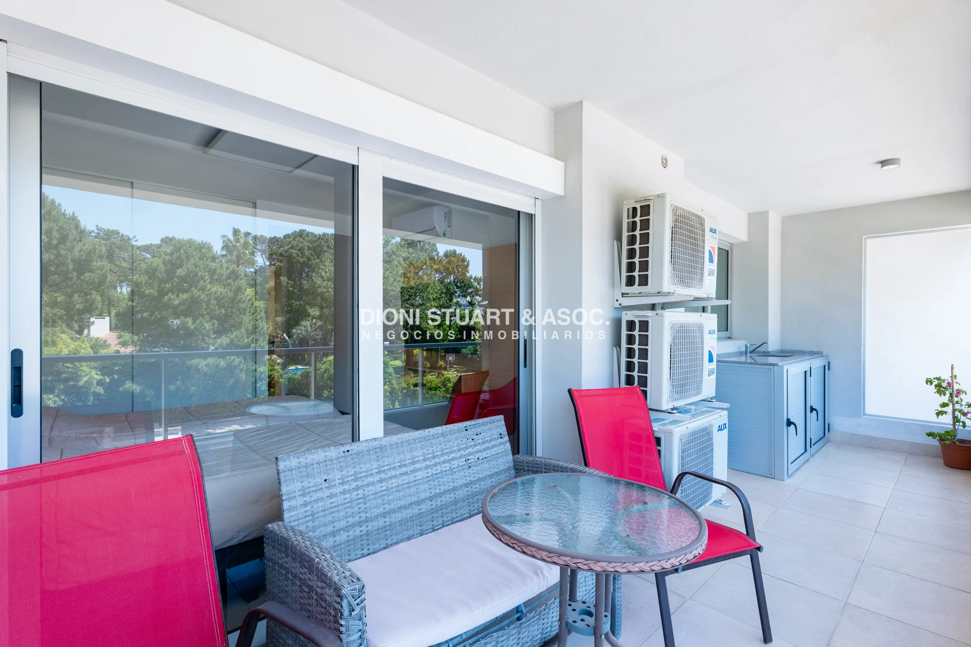 Espectacular Pent House con azotea de uso privado en el exclusivo edificio Monet en la zona de Playa Mansa. Unidad esquinera a Punta del Este con 79m2 internos y 207m2 totales dada sus amplias terrazas y su barbacoa en la azotea de uso exclusivo. Este moderno apartamento edificado en el año 2014 es de construcción tradicional y cuenta de dos dormitorios (uno en suite), toilette, cocina definida con lavadero y terraza al frente con parrillero. Tiene garage en subsuelo.
