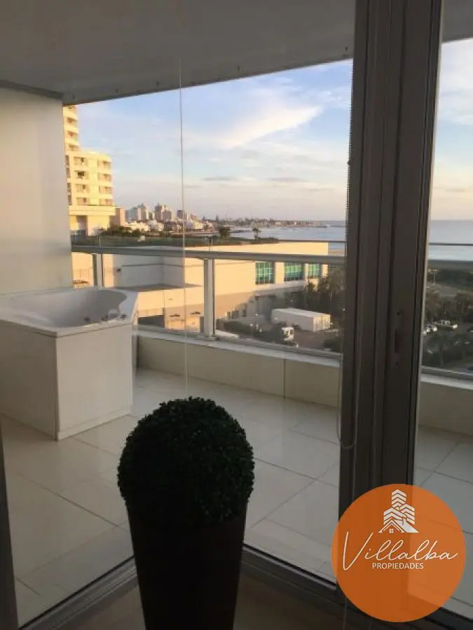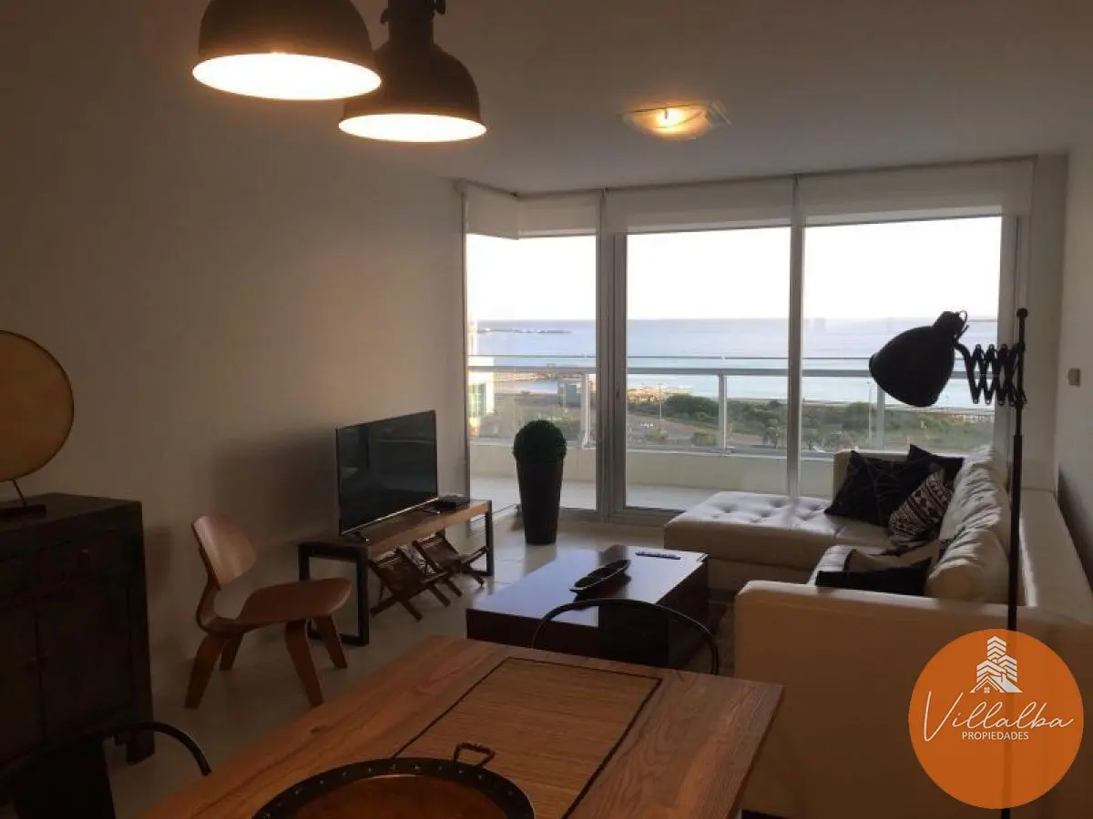 Seasons Tower, un sello! En reconocida Torre de la Mansa, zona Conrad. Unidad de 2 dormitorios en suite, toilette, amplios ambientes, living comedor con vista directa al mar, cocina con buen tamaño muy bien equipada y definida, balcón al frente, cochera en subsuelo.